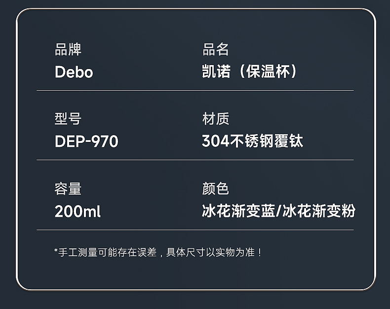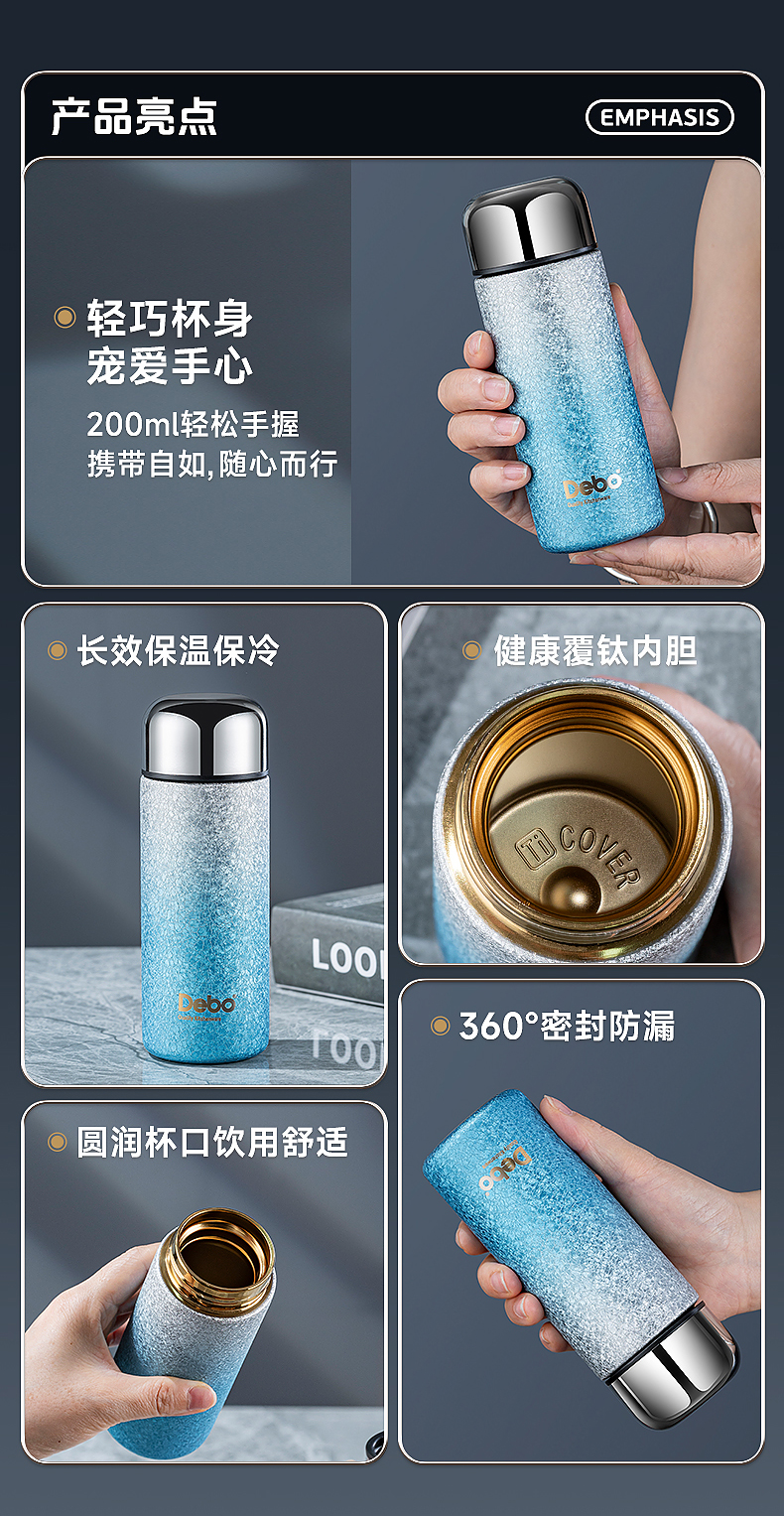 Debo德铂-凯诺覆钛保温杯200ml 口袋里的保温杯 钛覆层内胆 双层真空长效保温 健康随行