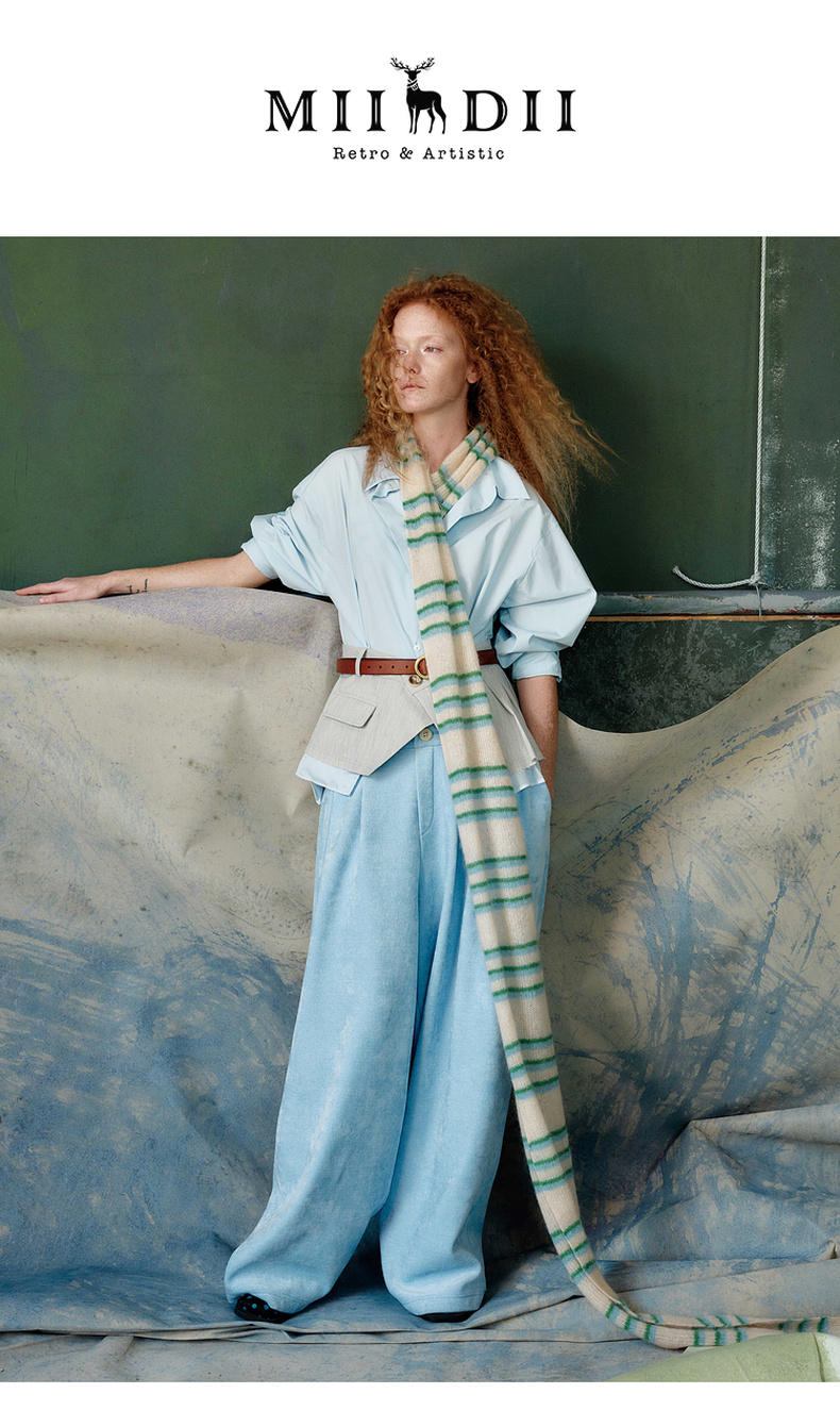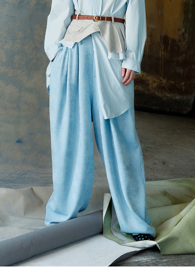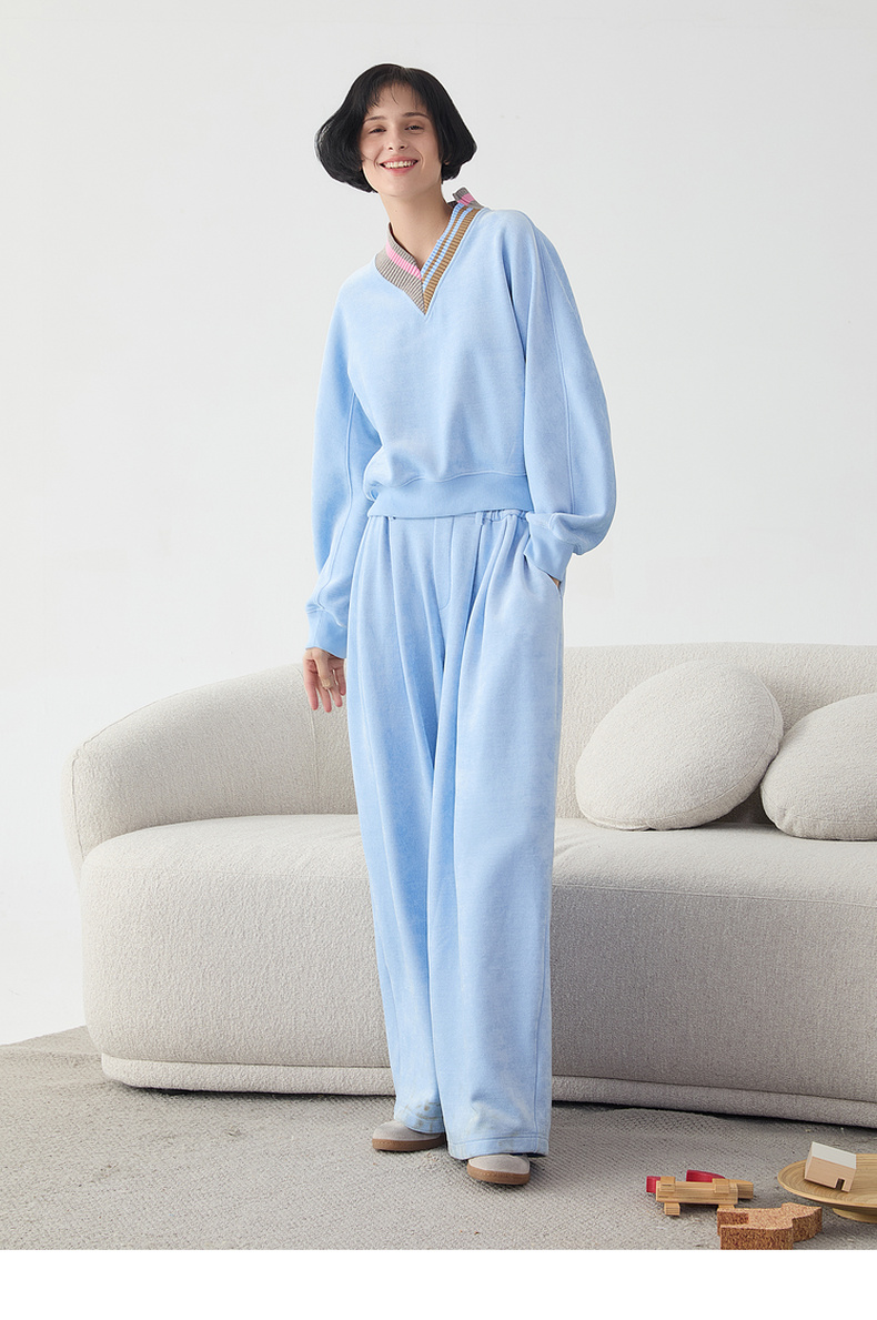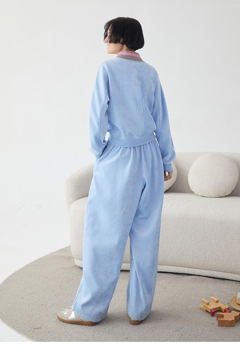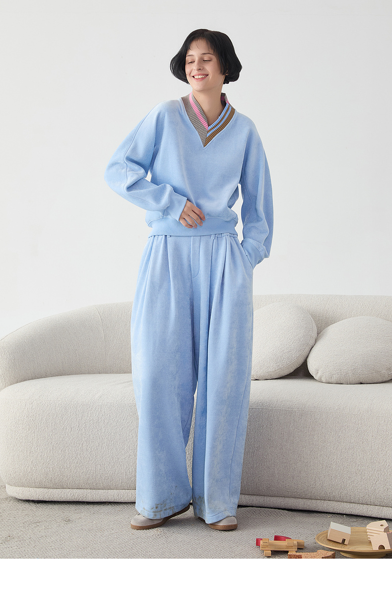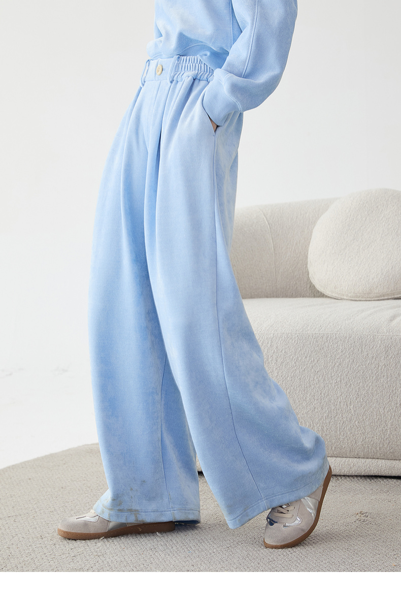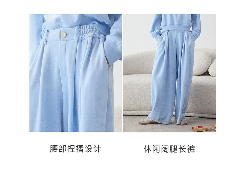 谜底卫裤阔腿裤女2025春新品时尚休闲风宽松丝绒感长裤251MK0053