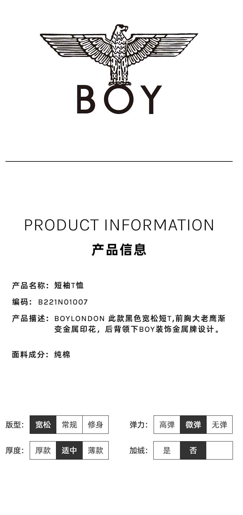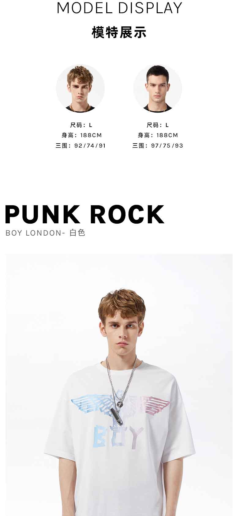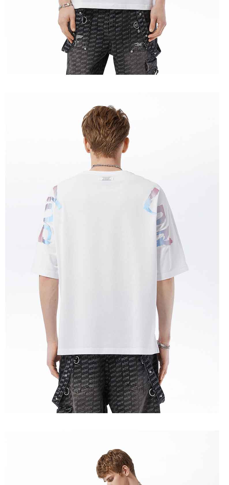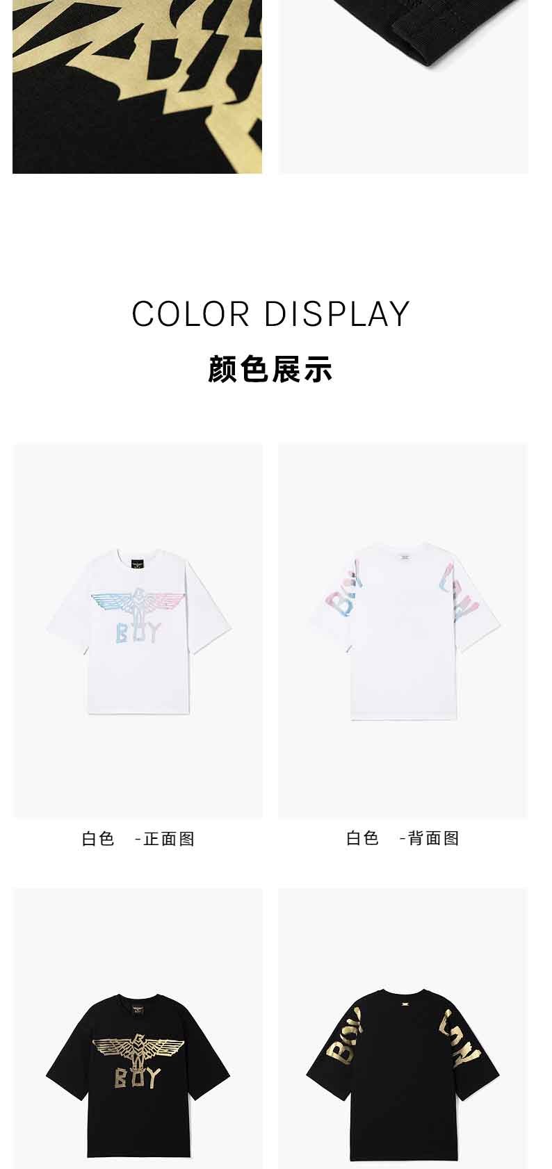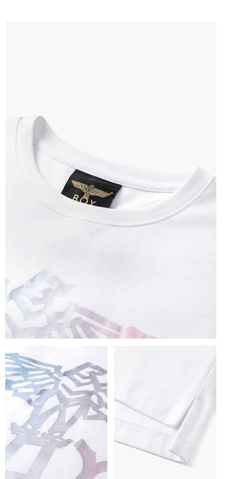 BOYLONDON短袖男女同款22春夏新品渐变LOGO印花休闲白色T恤B221N01007