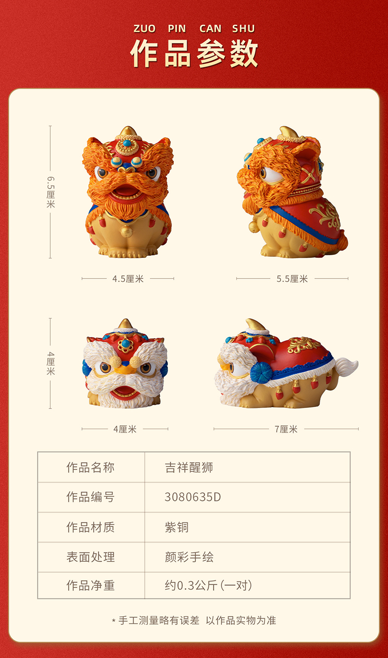 铜师傅《吉祥醒狮》客厅桌面紫铜狮子摆件 家居装饰品 新年礼物