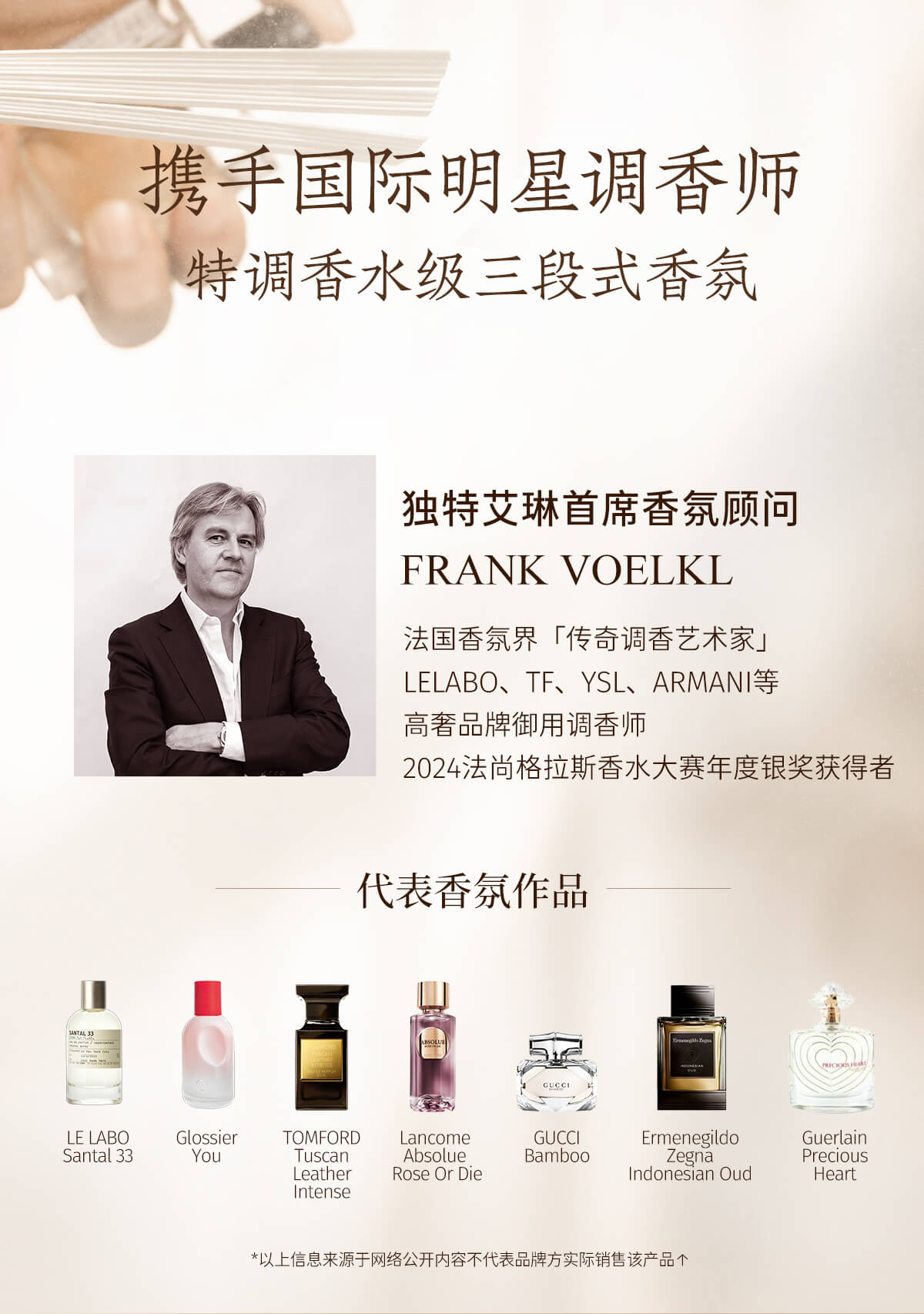- DearIrean 独特艾琳,高定香氛生活品牌,拥有体•研究所,品牌致力于将高定香氛带入生活,同时倡导“以香之名,带给生活美好方式”的品牌理念,传递精致女性的爱、独立、自信。