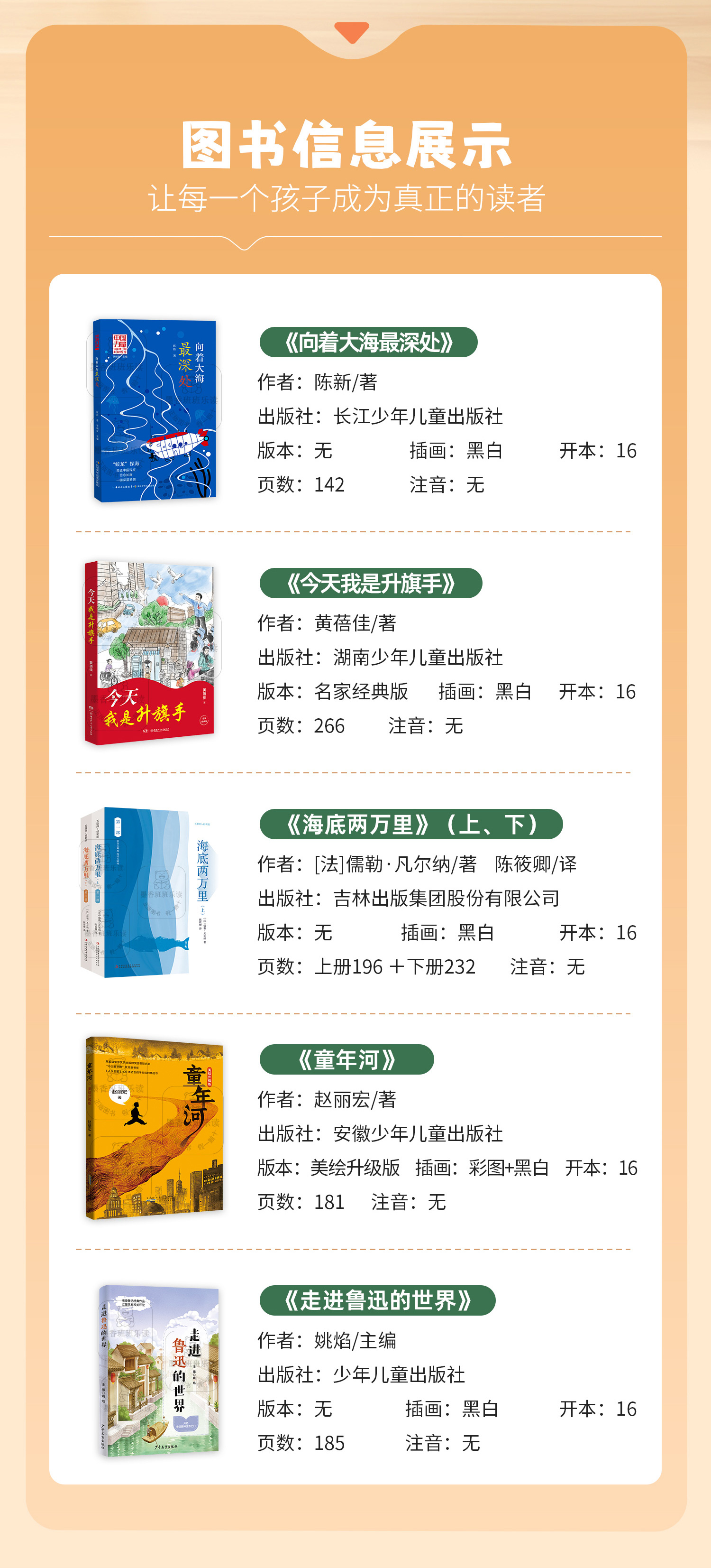 班班25秋六年级【单本】《向着大海最深处》《今天我是升旗手》《海底两万里》(上、下)《童年河》《走进鲁迅的世界》+导读单