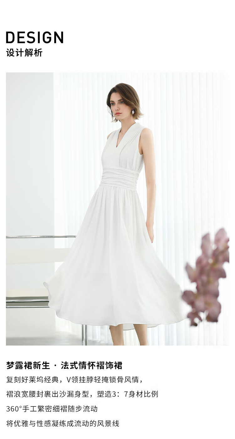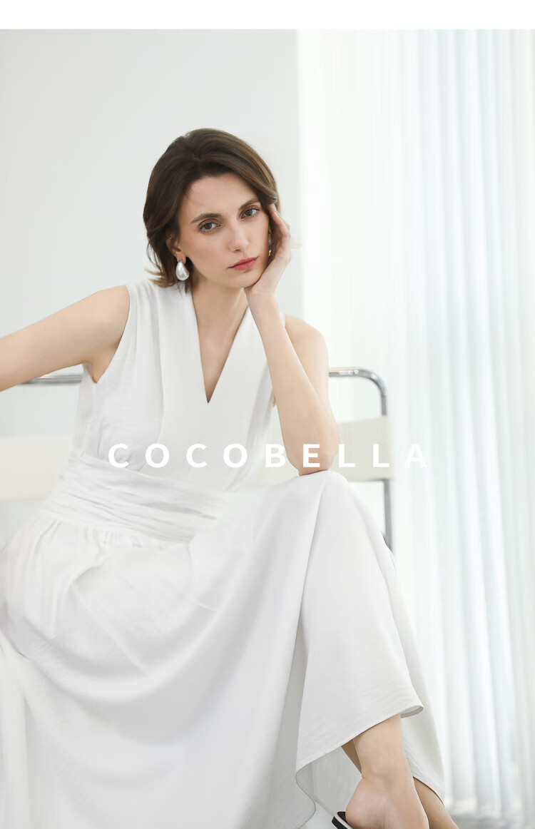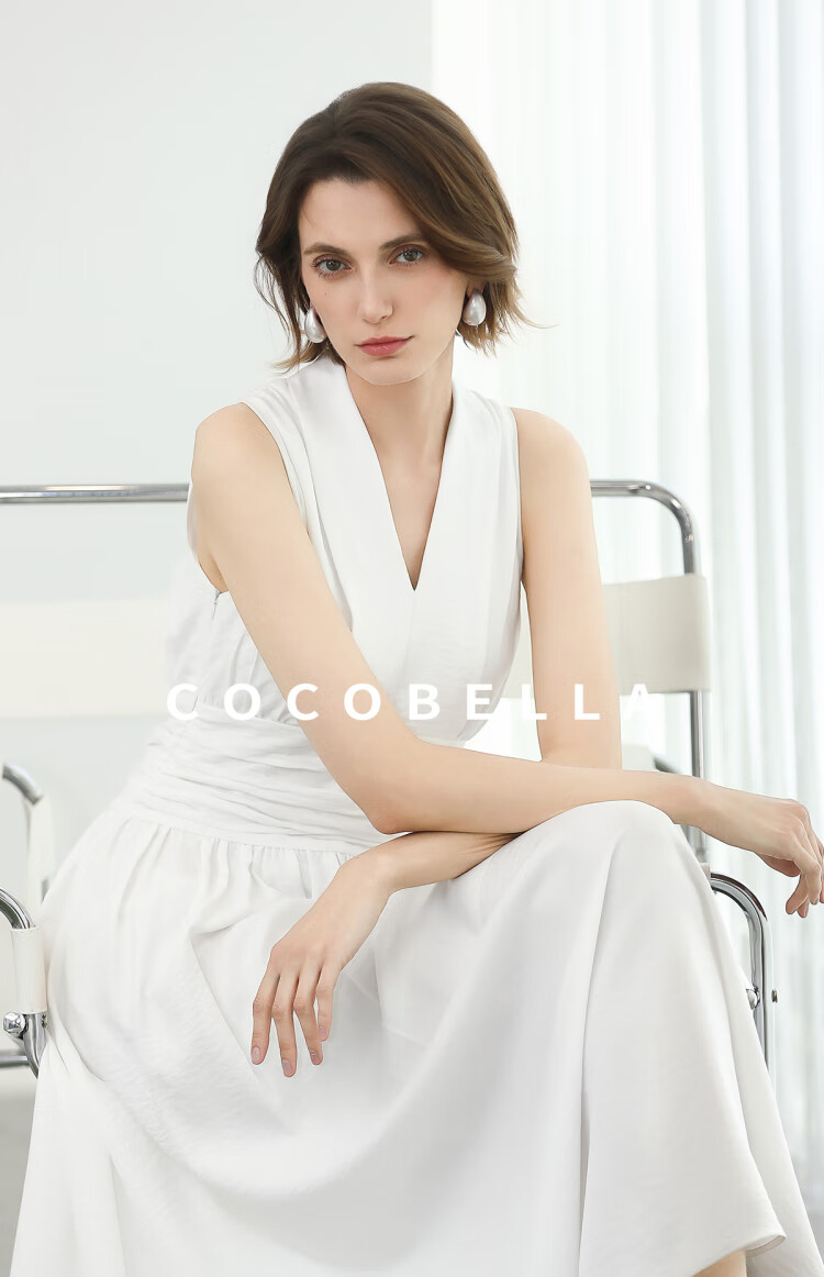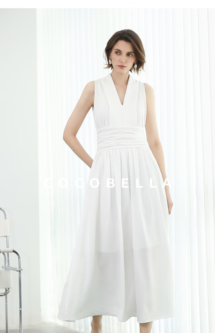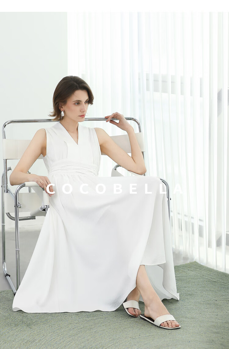 COCOBELLA法式优雅连衣裙高智感通勤白色大摆无袖长裙FR0076