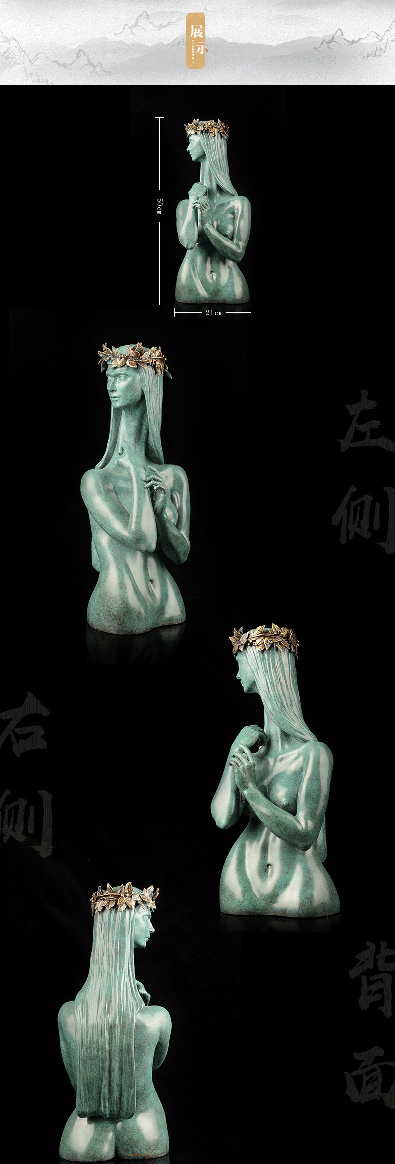 宇达青铜文化 限量12版 名家雕塑艺术品 《高等动物之叶冠女子》 作者:毛锎 高50cm