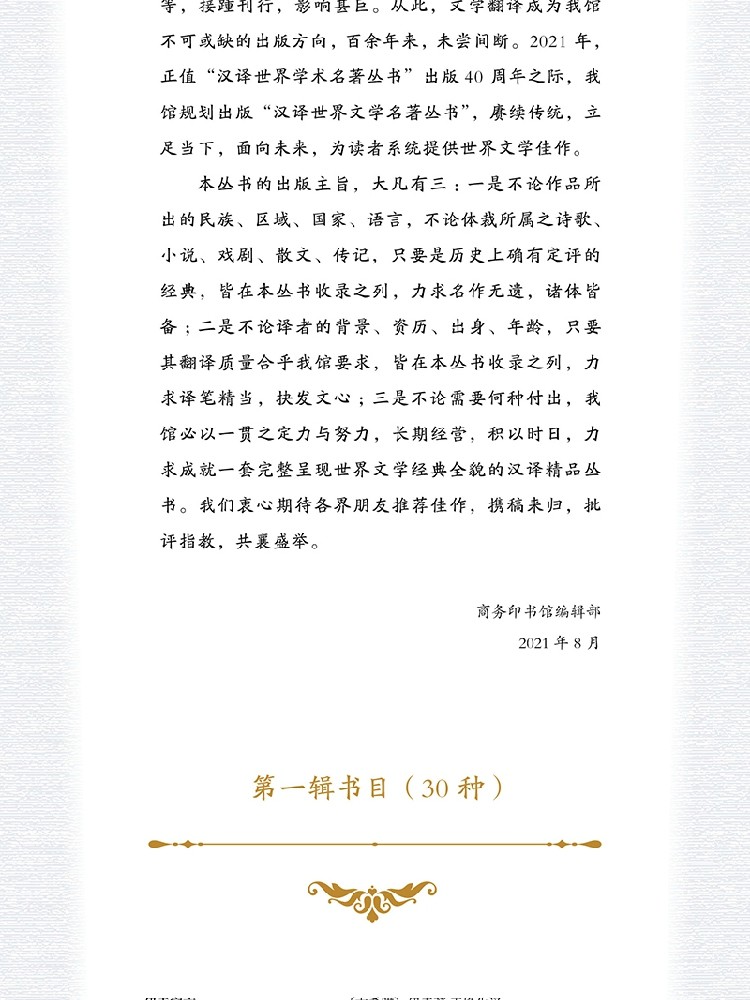 ·世界文学,完整呈现:不计代价,长期积累,力求成就反映世界文学经典全貌的汉译精品丛书。