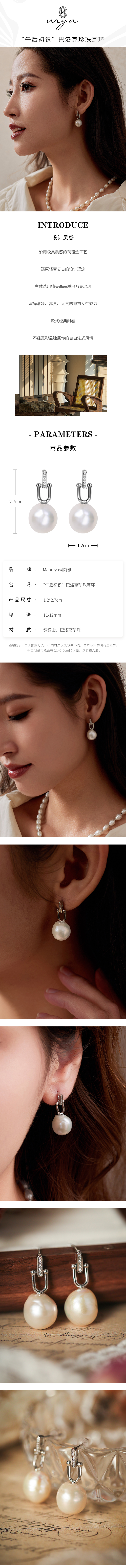 Manreya玛芮雅“午后初识”巴洛克珍珠耳环法式小众复古
