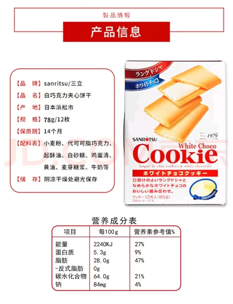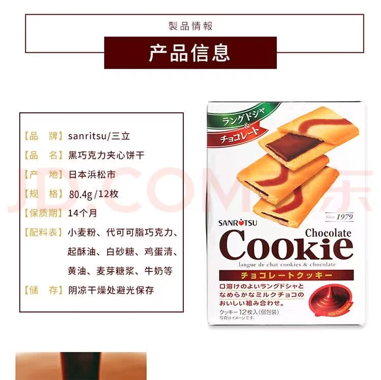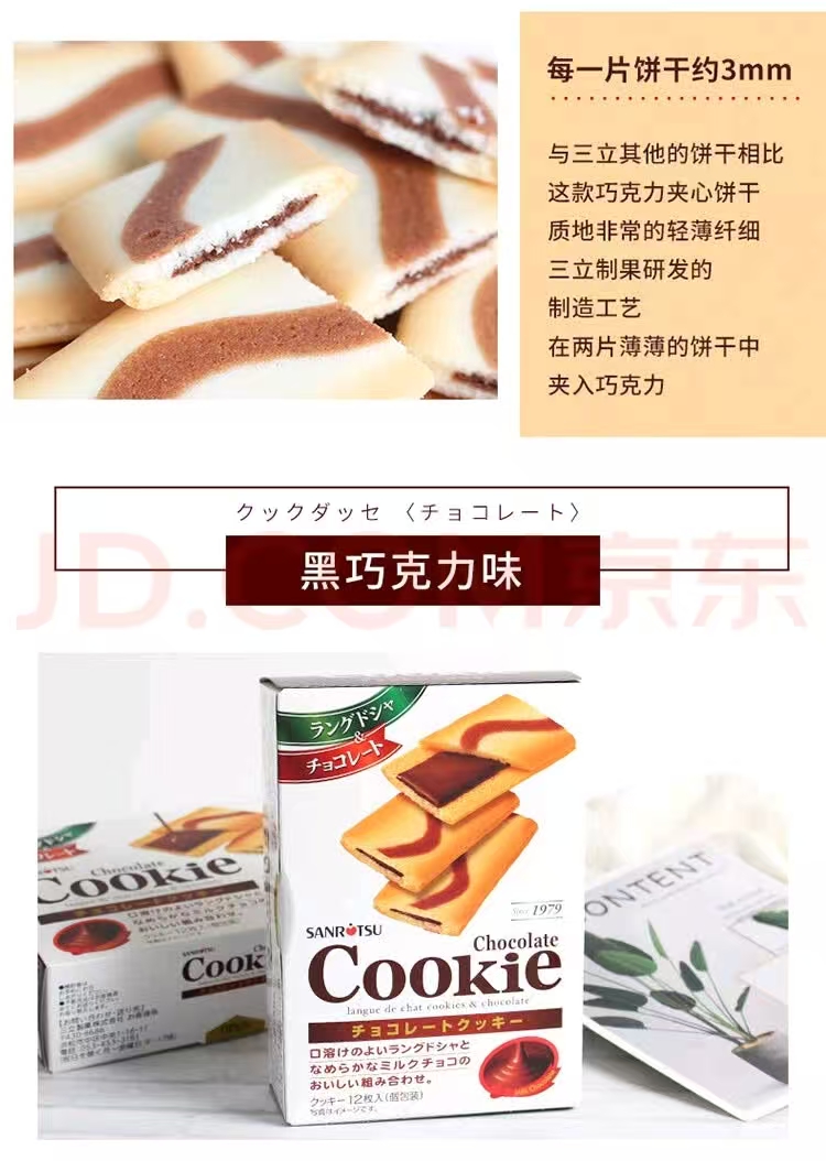 三立 日本原装进口巧克力味夹心薄酥饼干80.4g+白巧克力夹心酥脆夹心饼干78g组合