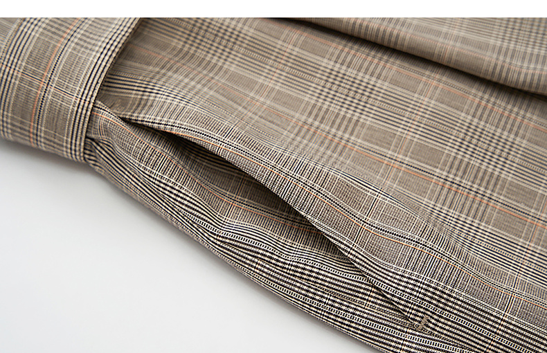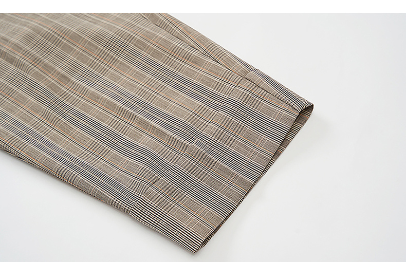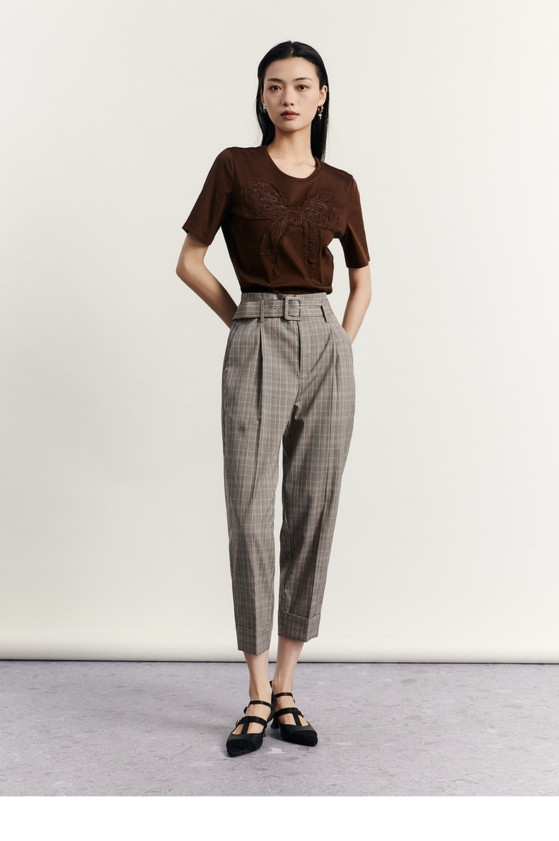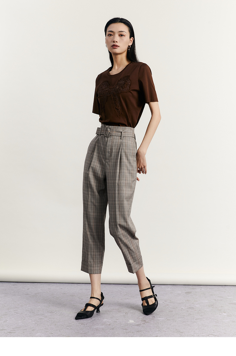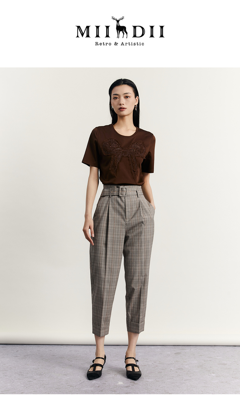 谜底格纹休闲裤女2023秋新款复古高腰宽松九分裤配腰带233MK0993