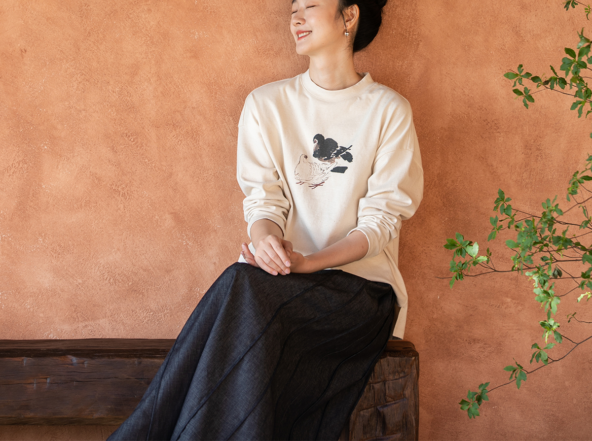 牧衣游原创趣味印花长袖T恤百搭限量福利款 云暮【不支持会员折】