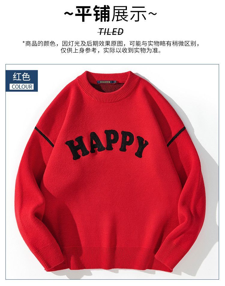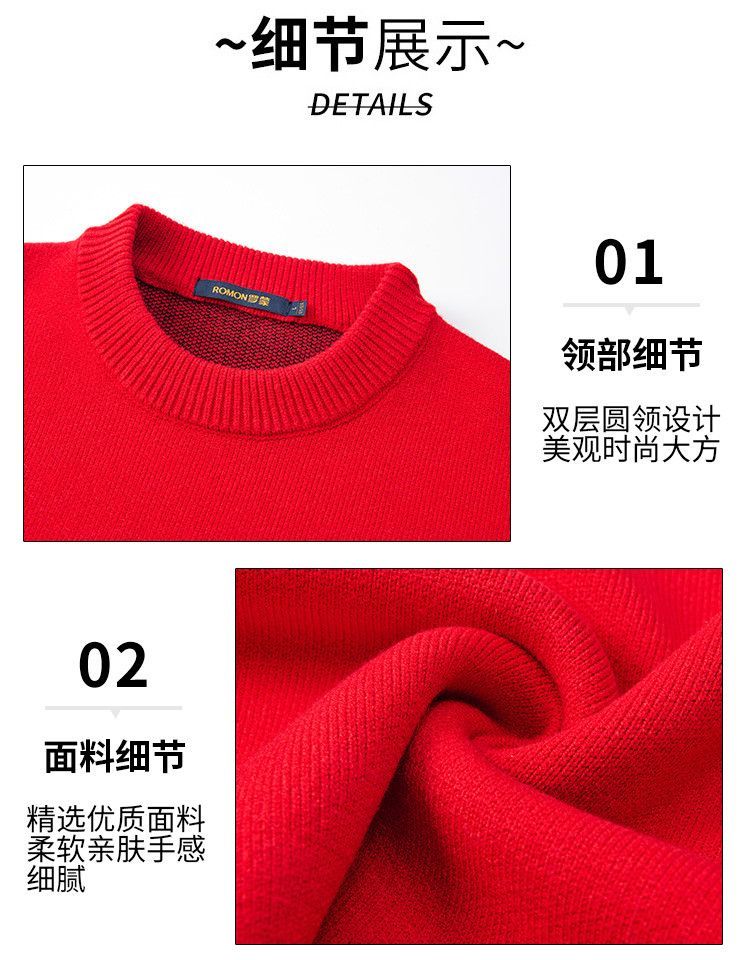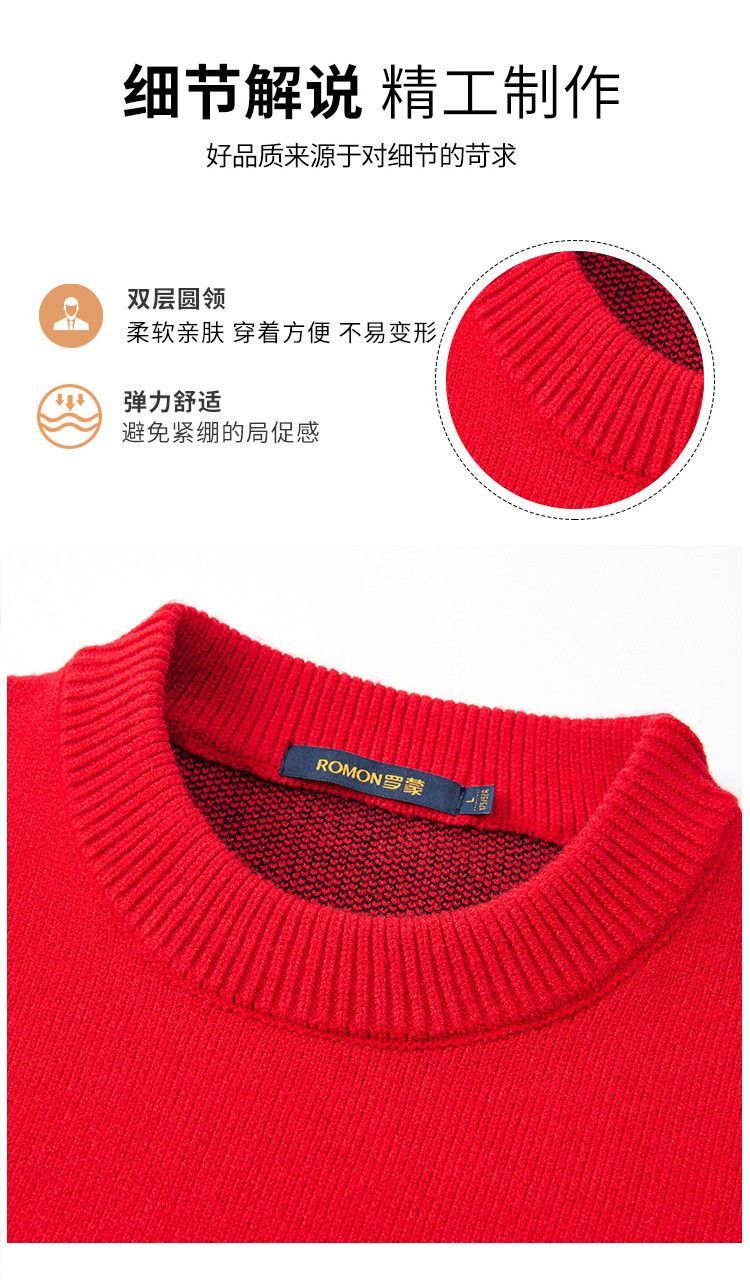 【新年款】罗蒙秋冬双面刺绣毛衣男加厚保暖男士毛衣时尚宽松男士针织衫男