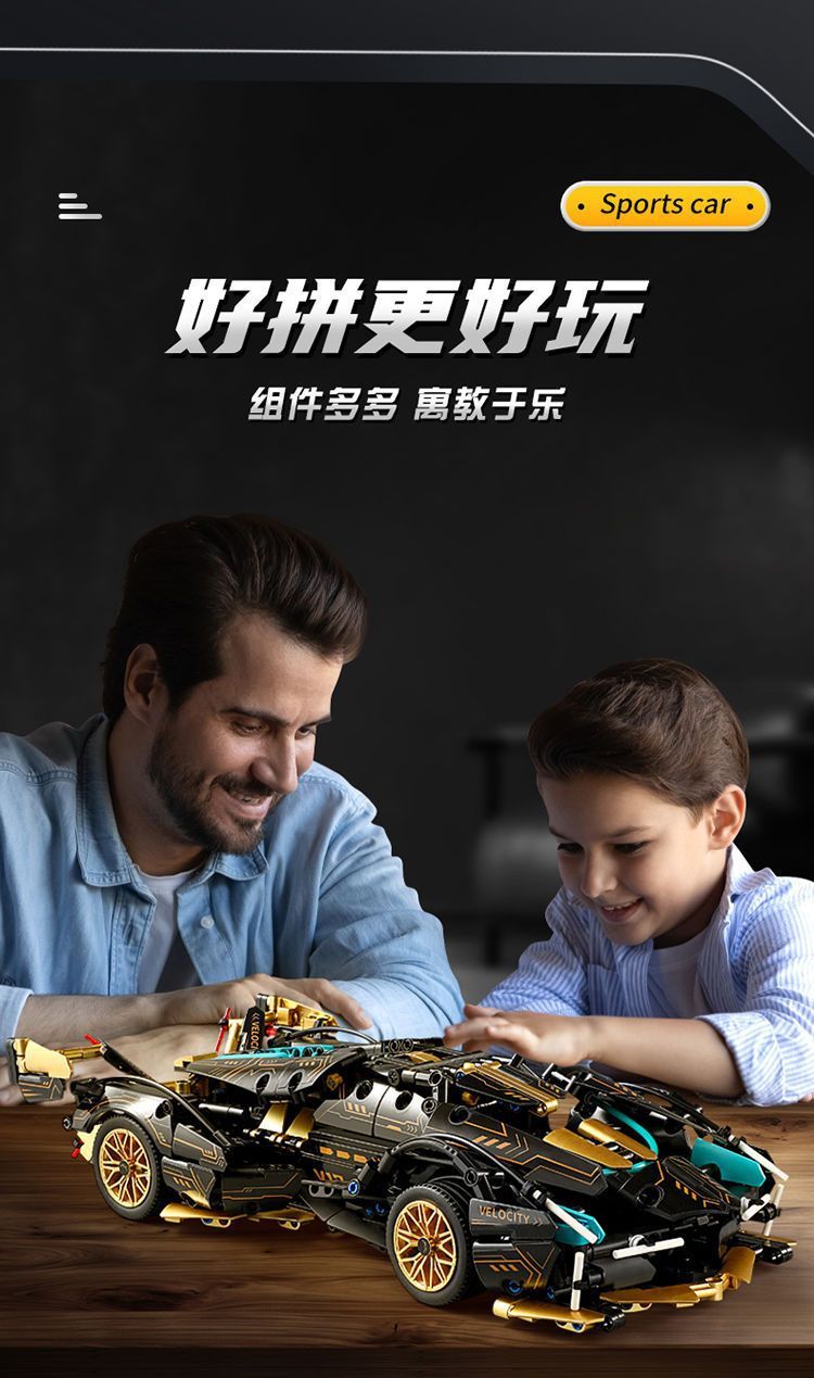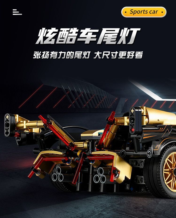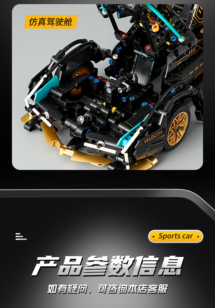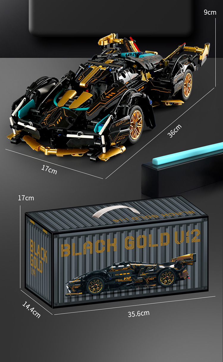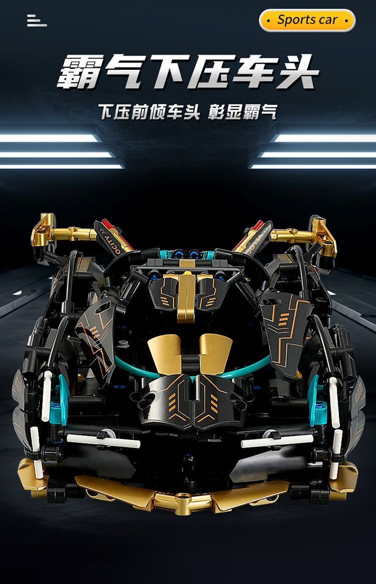 【炫酷造型,1:14积木跑车!】V12黑金兰博 黑武士积木 遥控赛博跑车 益智拼装模型 男生礼物-QQ