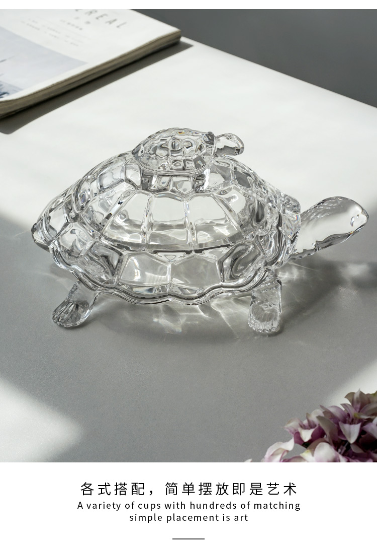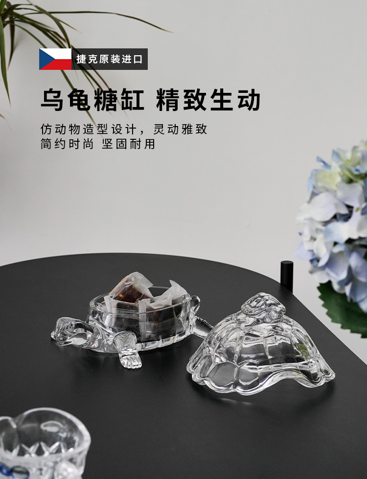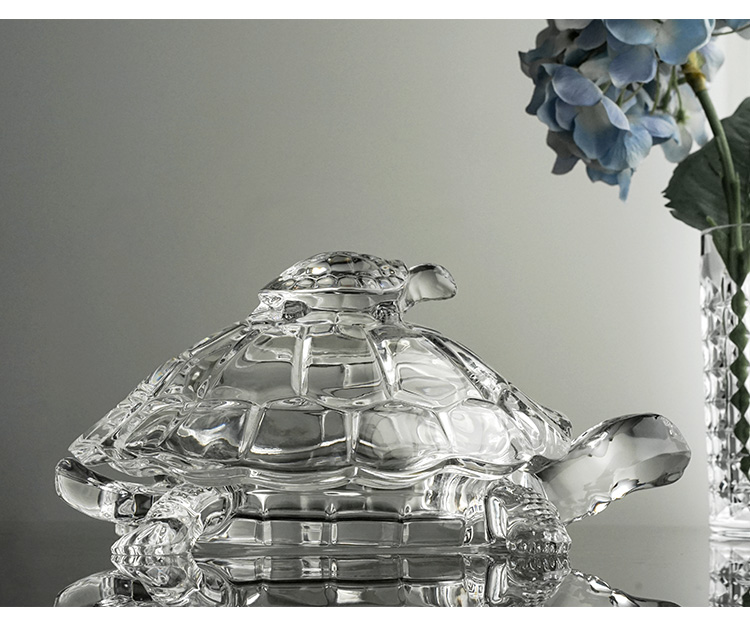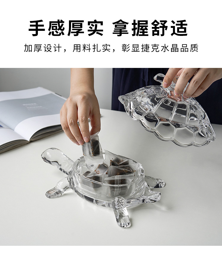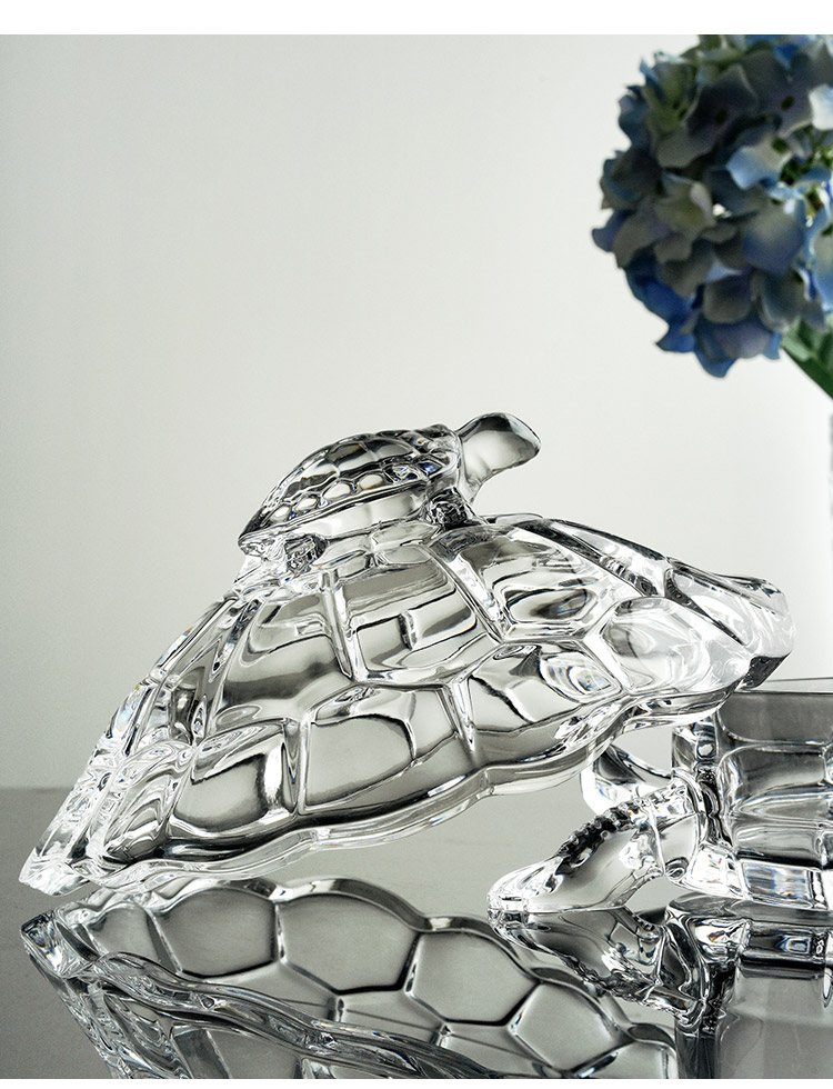 捷克进口BOHEMIA水晶玻璃 长寿龟水果盘带盖创意母子乌龟糖缸送礼