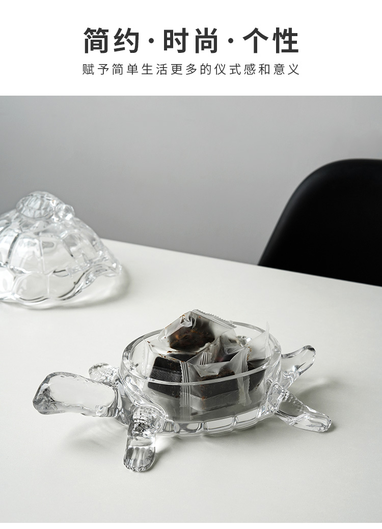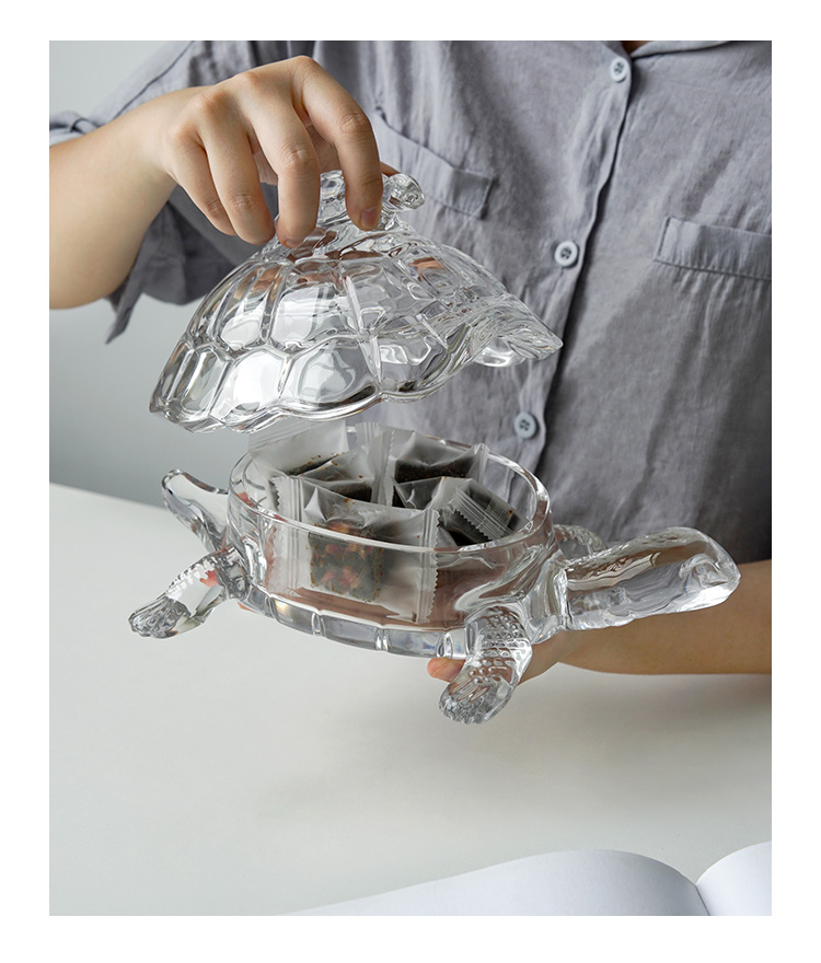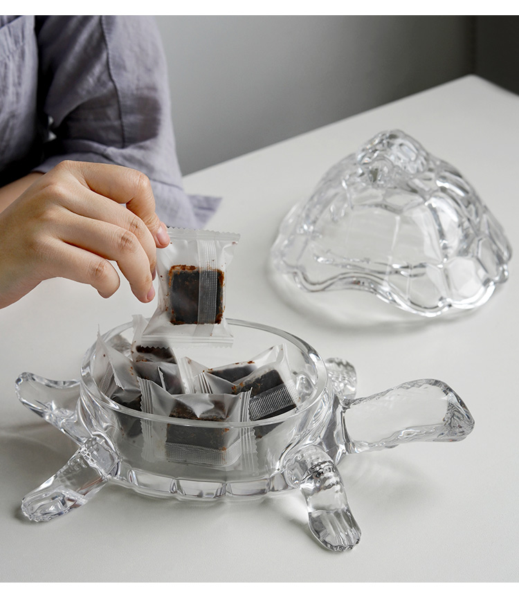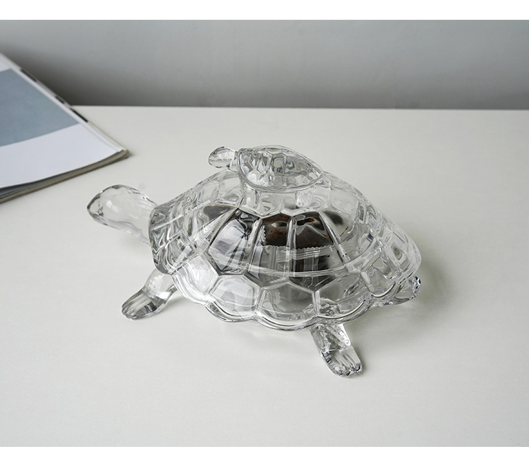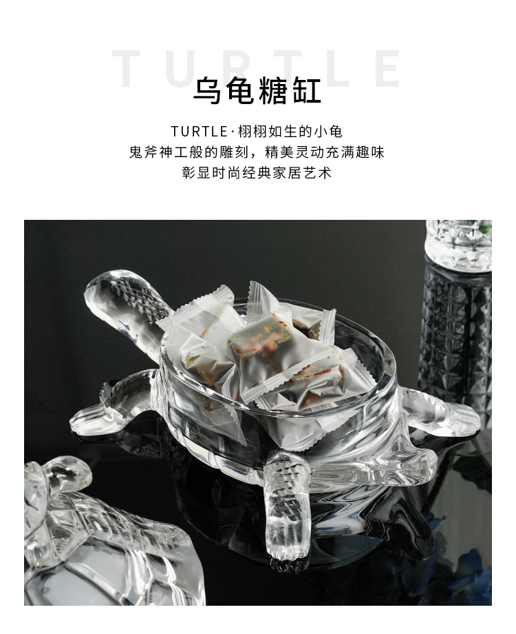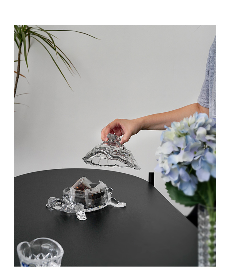 捷克进口BOHEMIA水晶玻璃 长寿龟水果盘带盖创意母子乌龟糖缸送礼