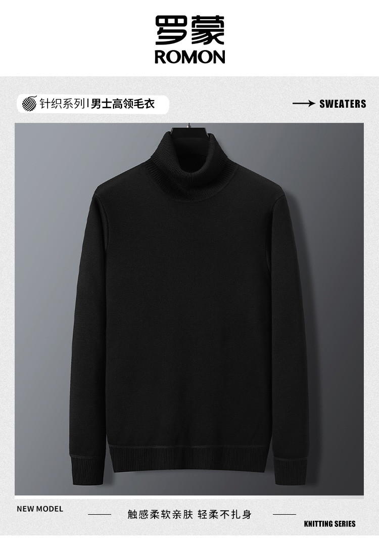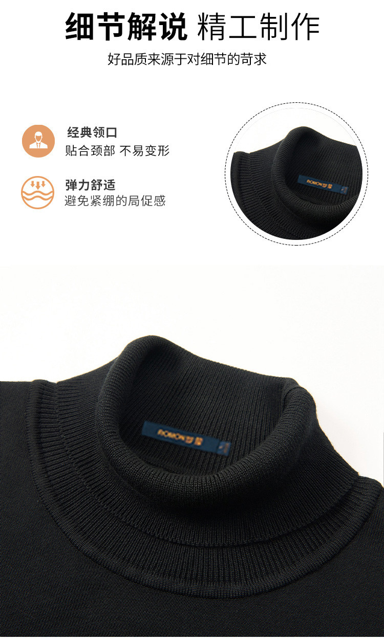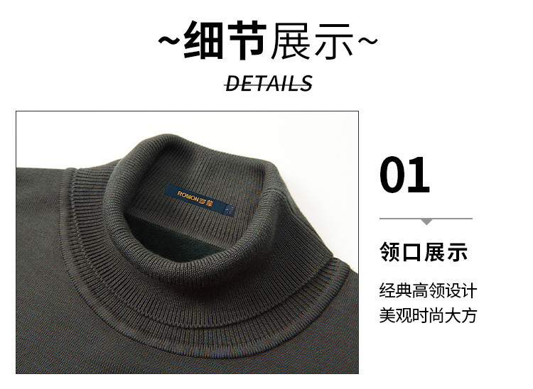 【加绒加厚】罗蒙男士冬季经典高领毛衣男百搭舒适休闲保暖针织衫男