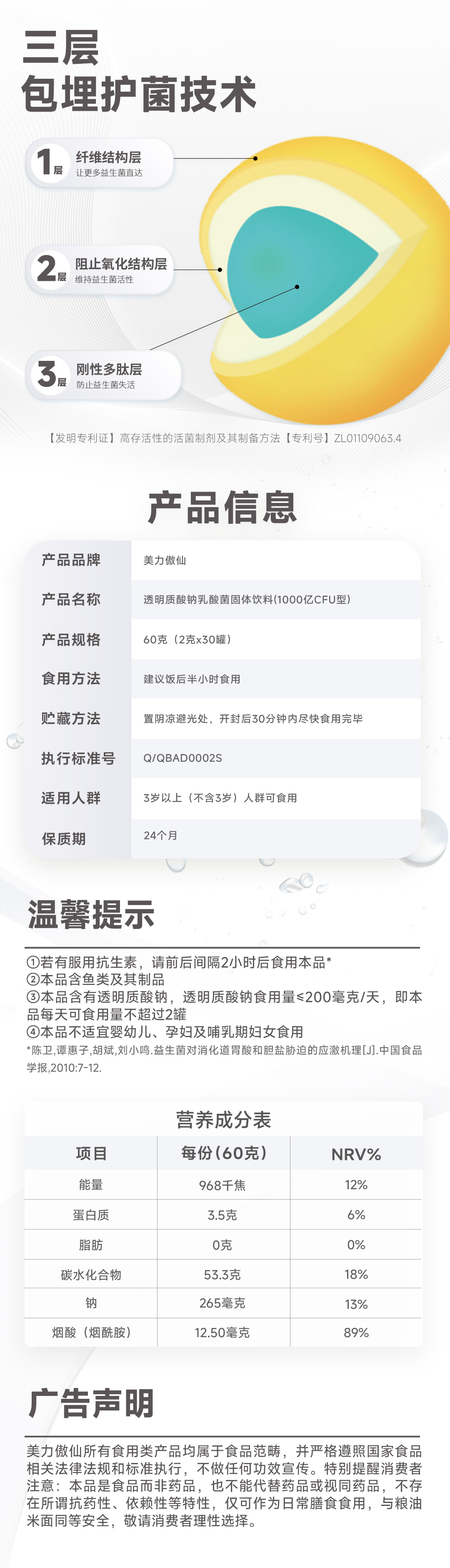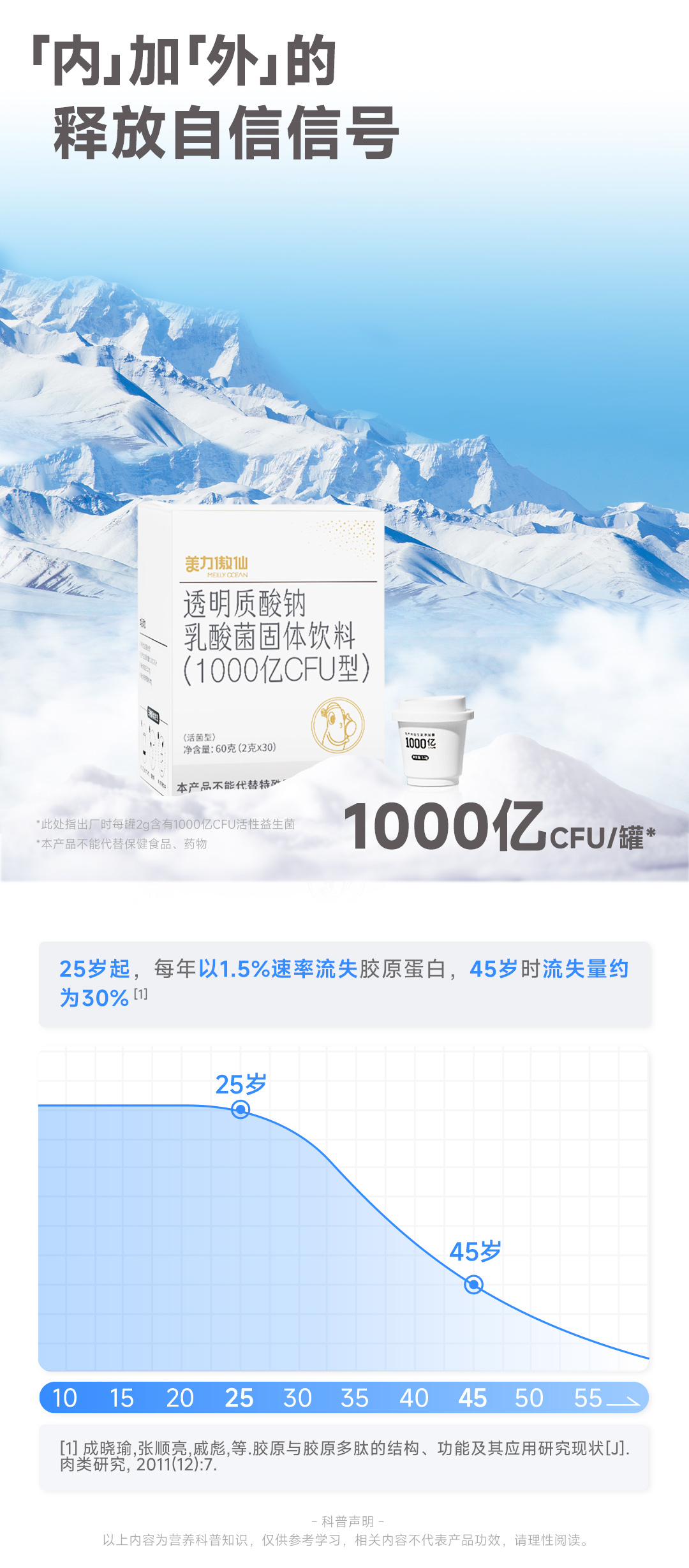 【美力傲仙】 美力傲仙透明质酸钠乳酸菌固体饮料