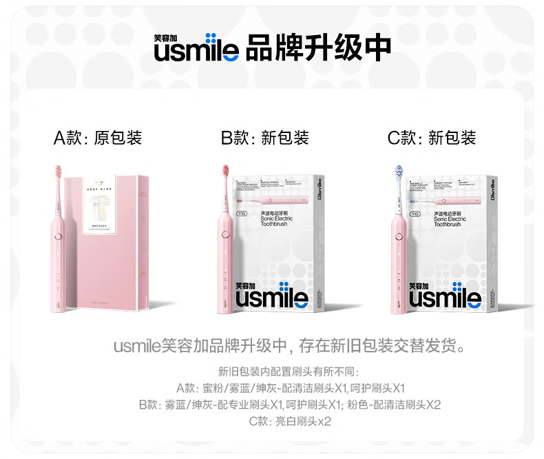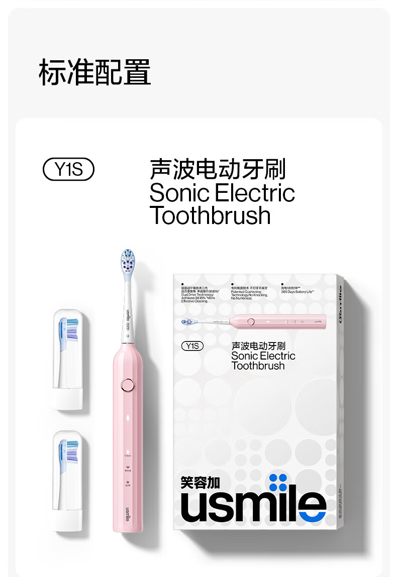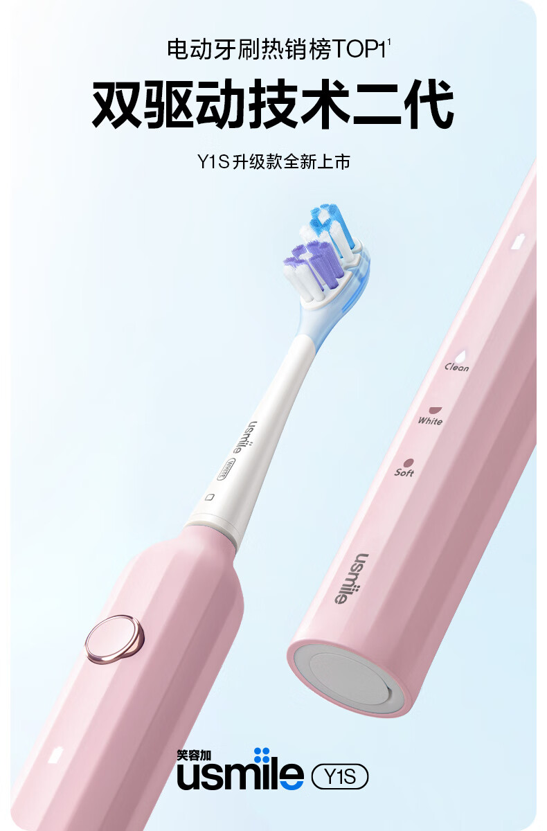 【自营】 usmile笑容加 电动牙刷 声波电动 双驱动技术 按键升级款 Y1S 3色可选