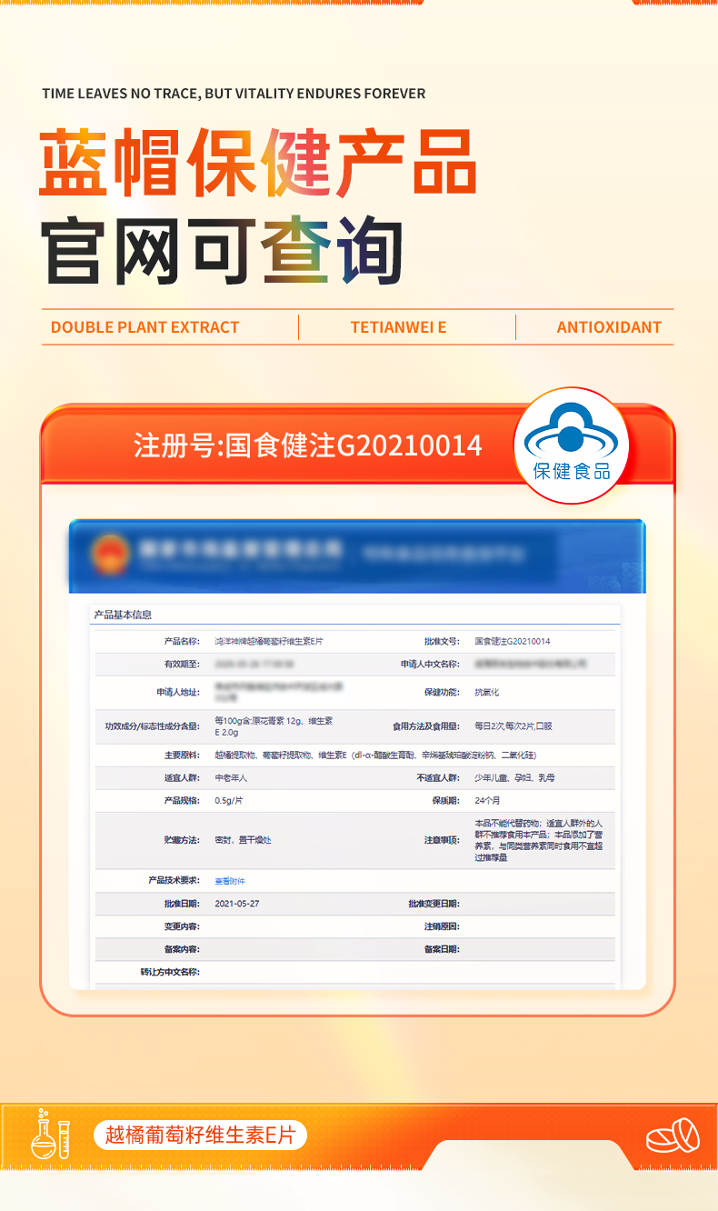 翠云堂越橘葡萄籽维生素E片 12片/盒