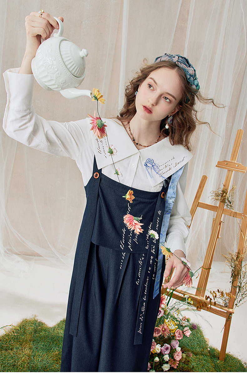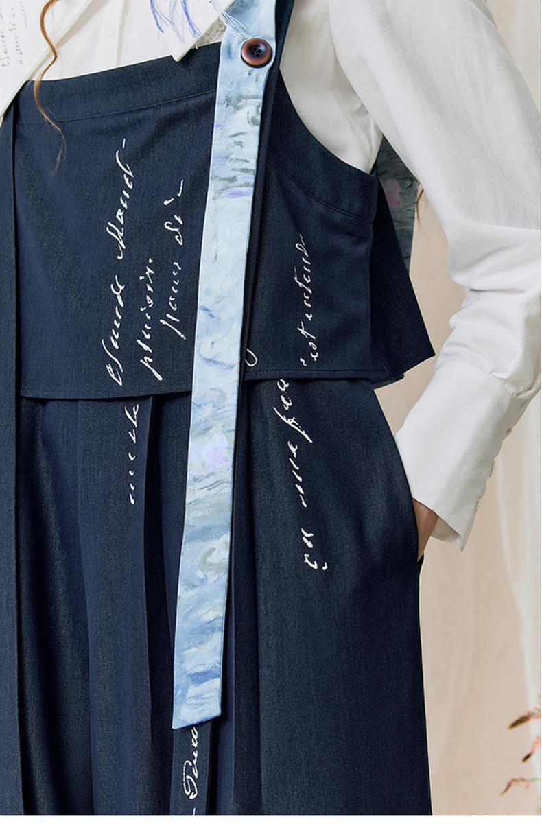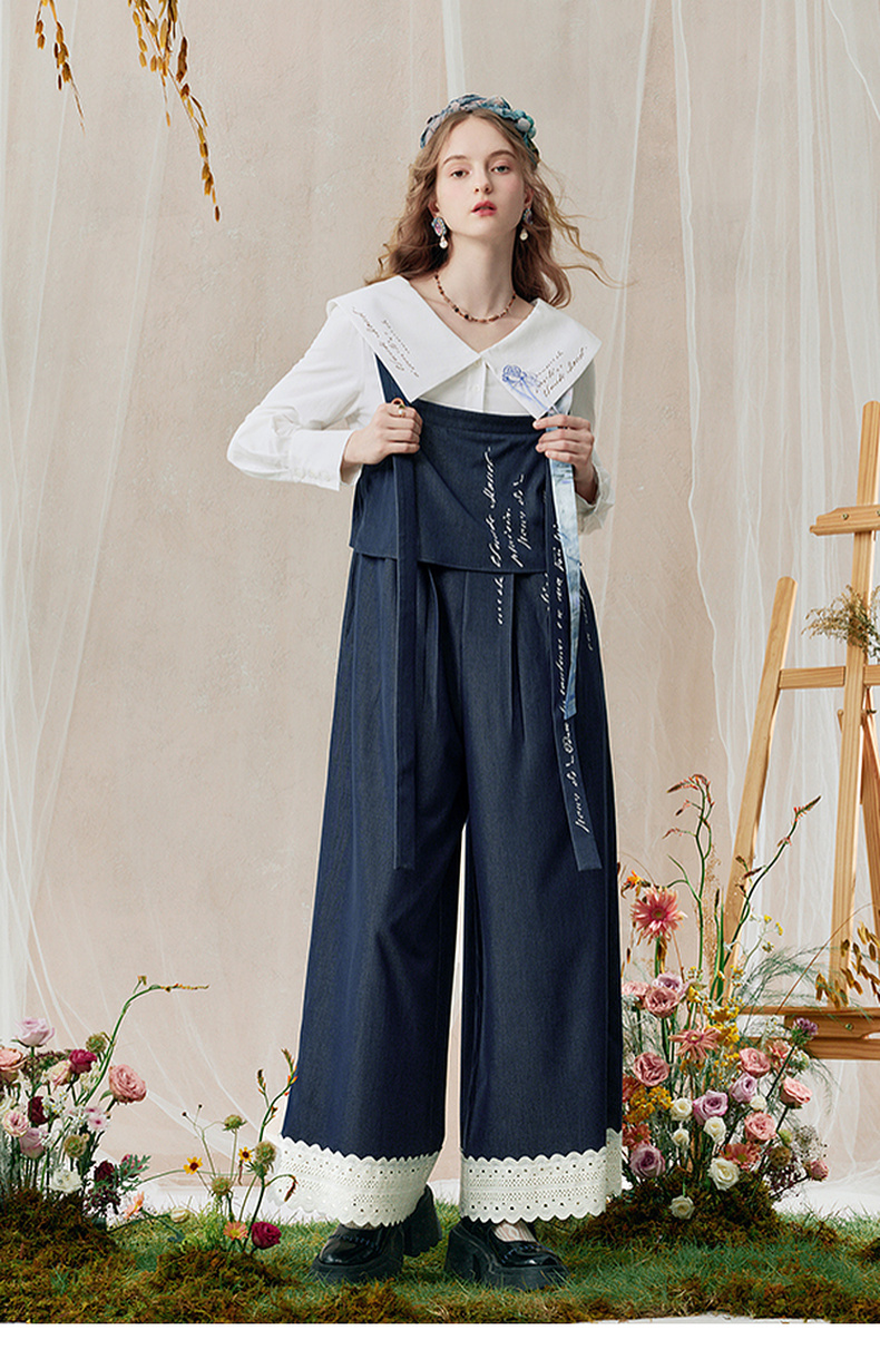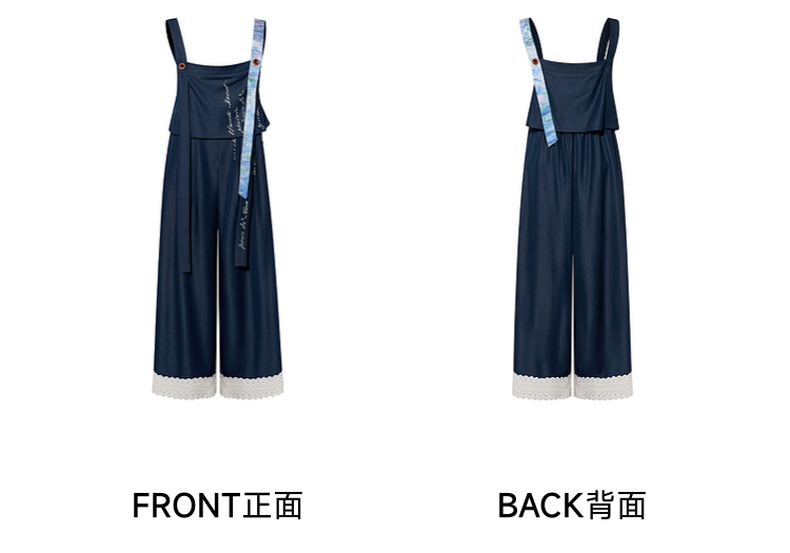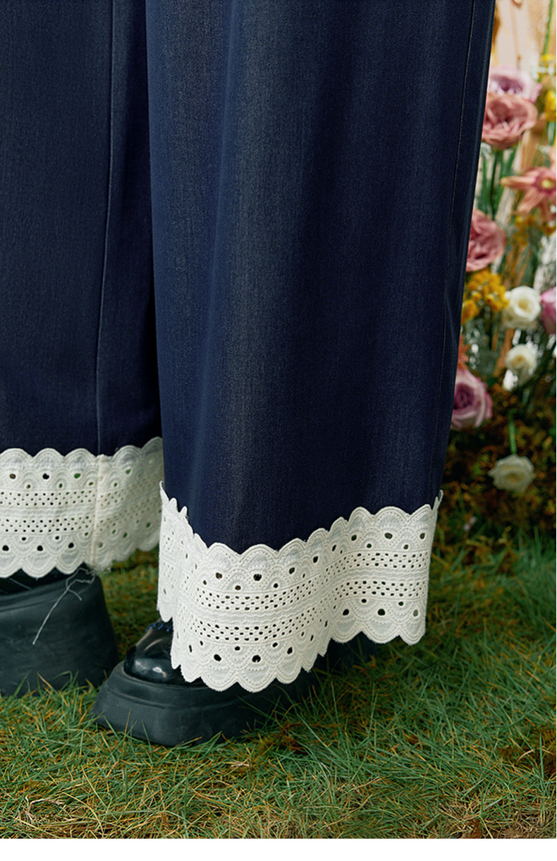 两三事 雪恋诗 2025秋季新款蕾丝拼接可拆织带印花连体裤女宽松