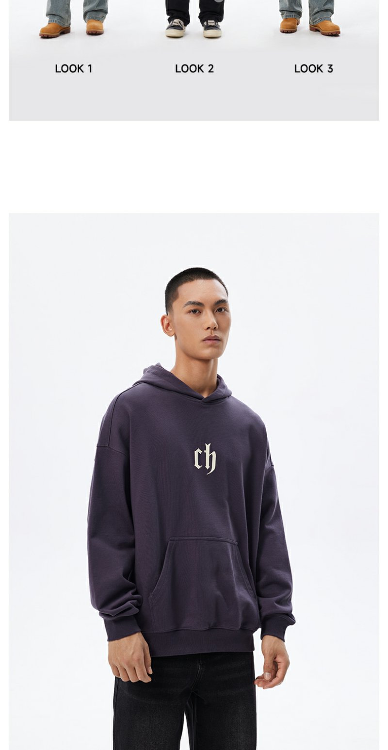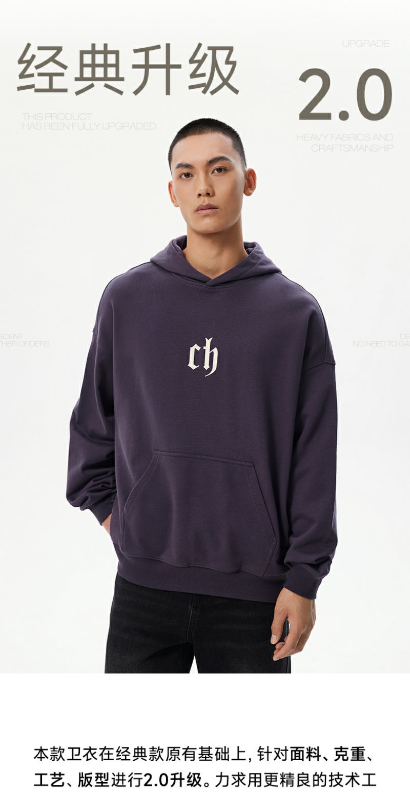 【商场同款】CHINISM赤尘 重磅紫色连帽卫衣男美式复古春季帽衫