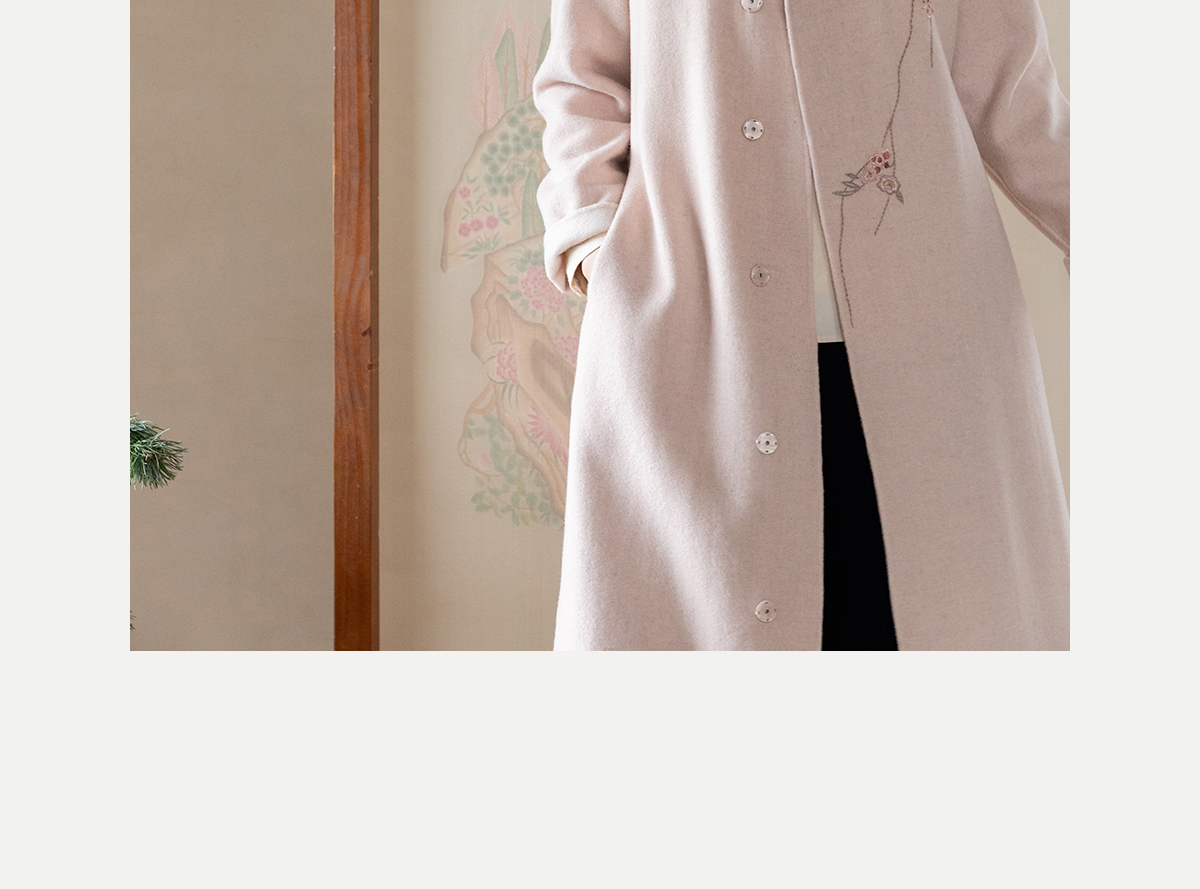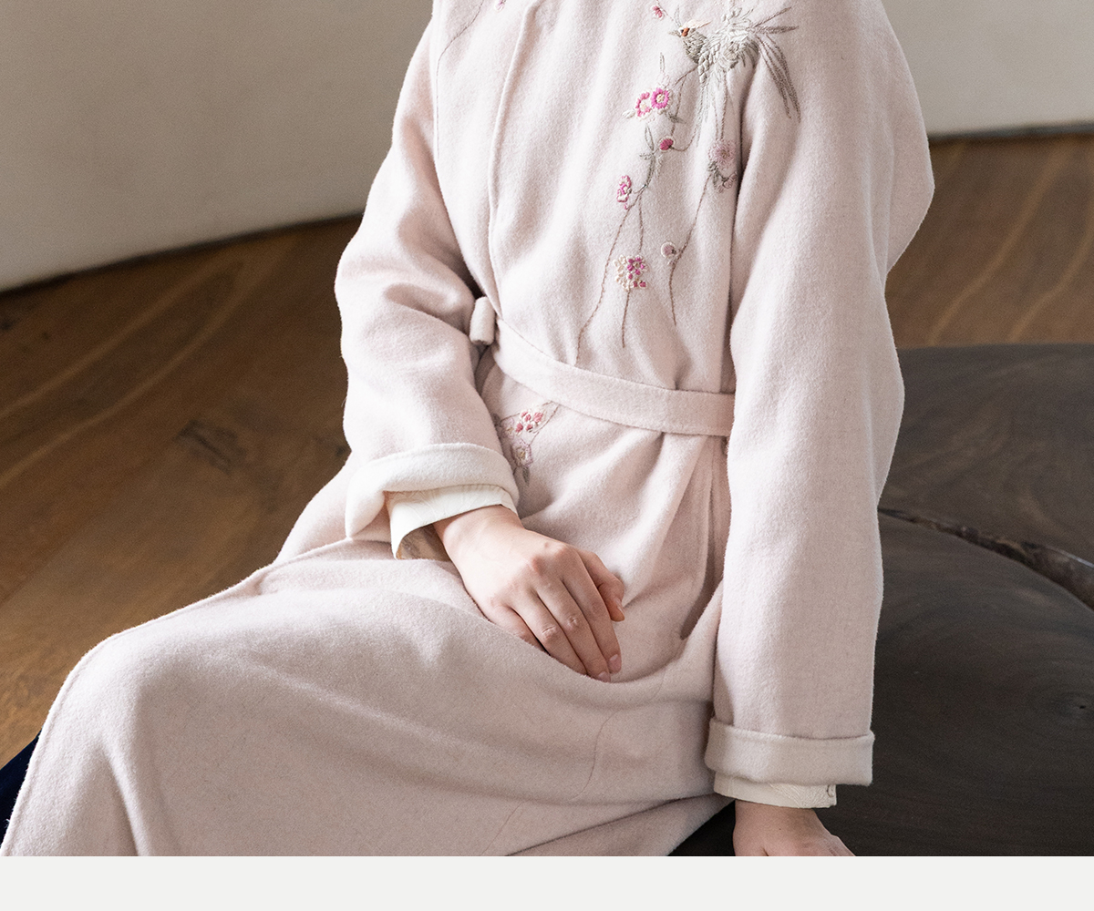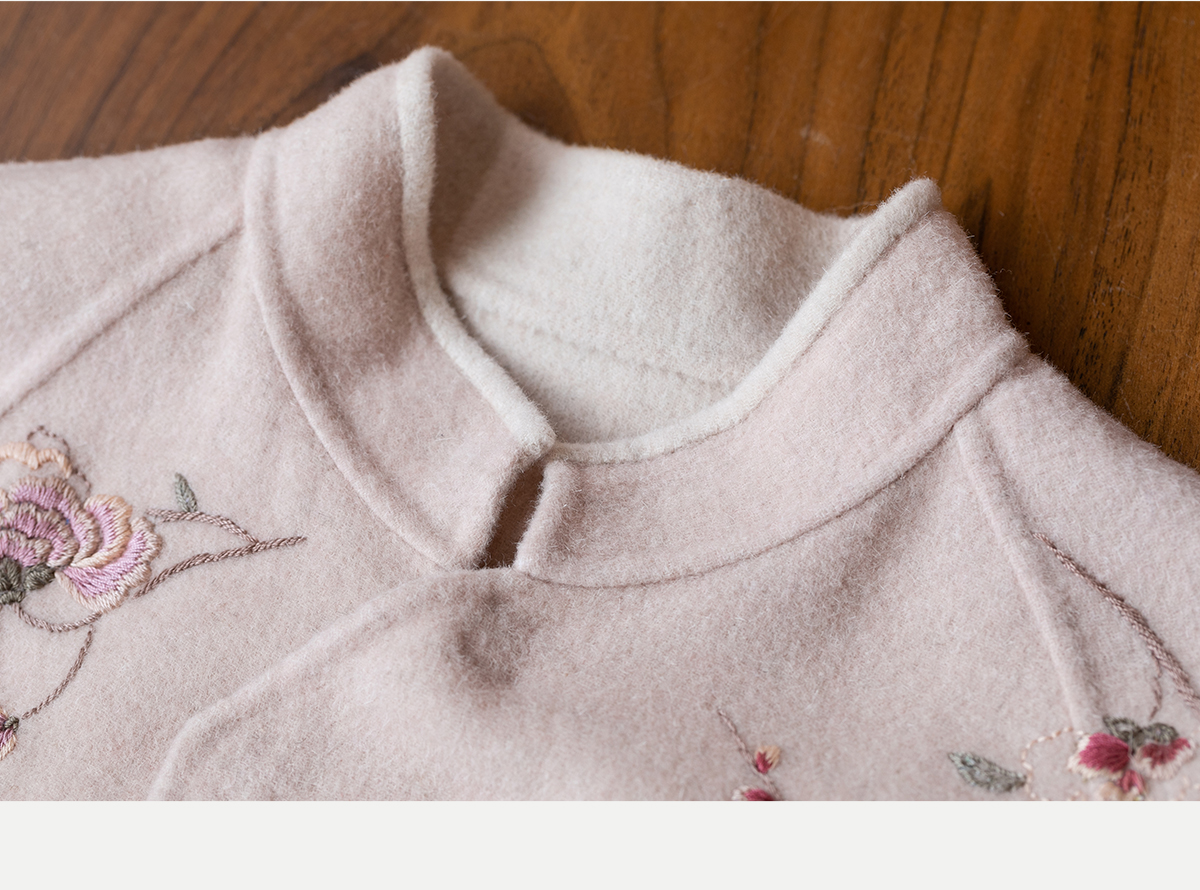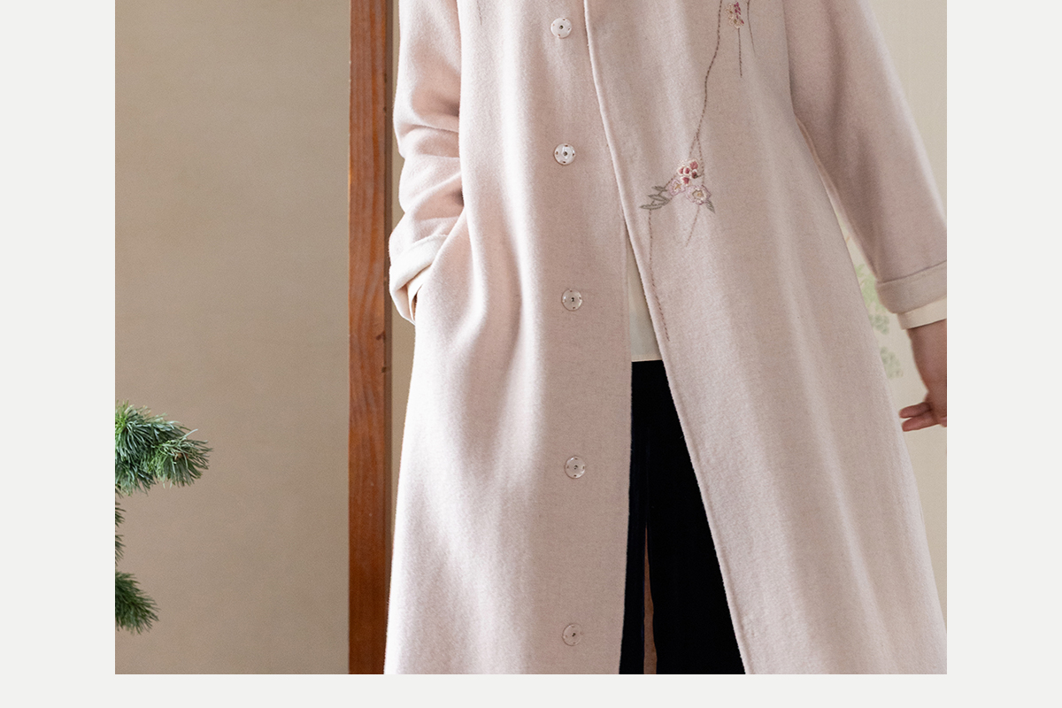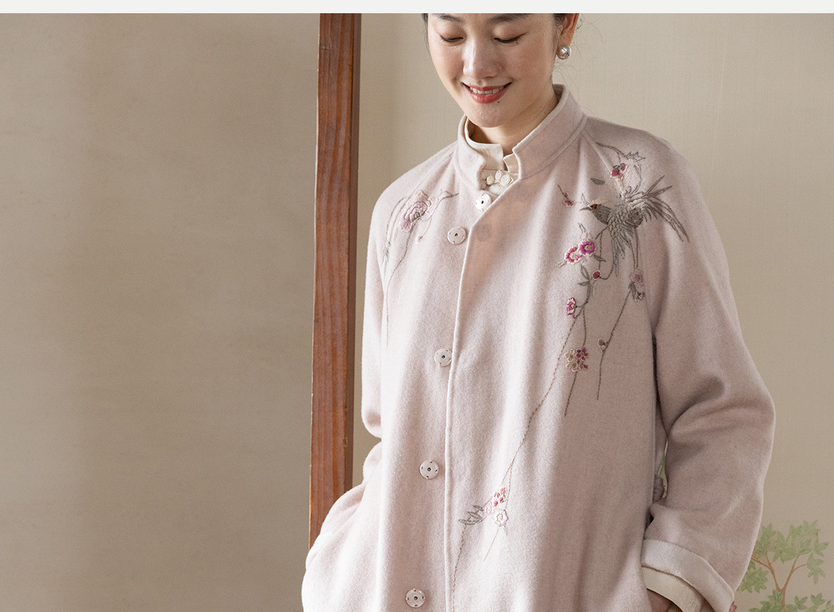 牧衣游原创 绵羊毛混纺手工刺绣毛呢长外套冬季宽松气质大衣 南妗