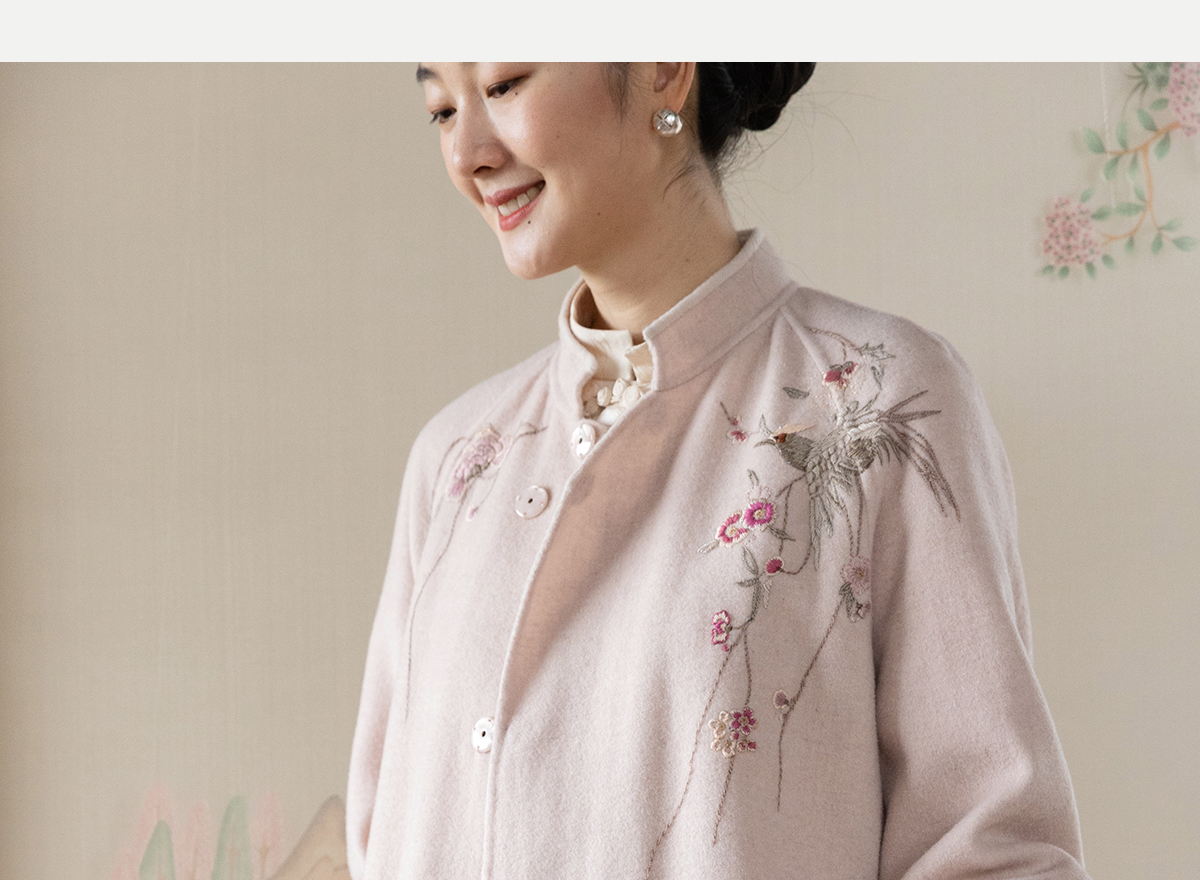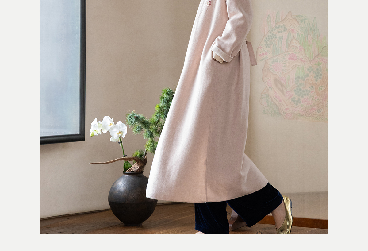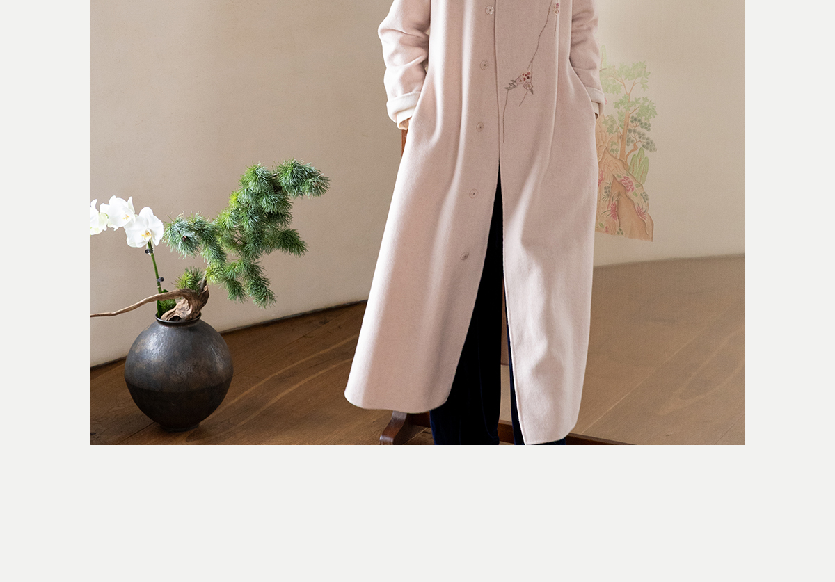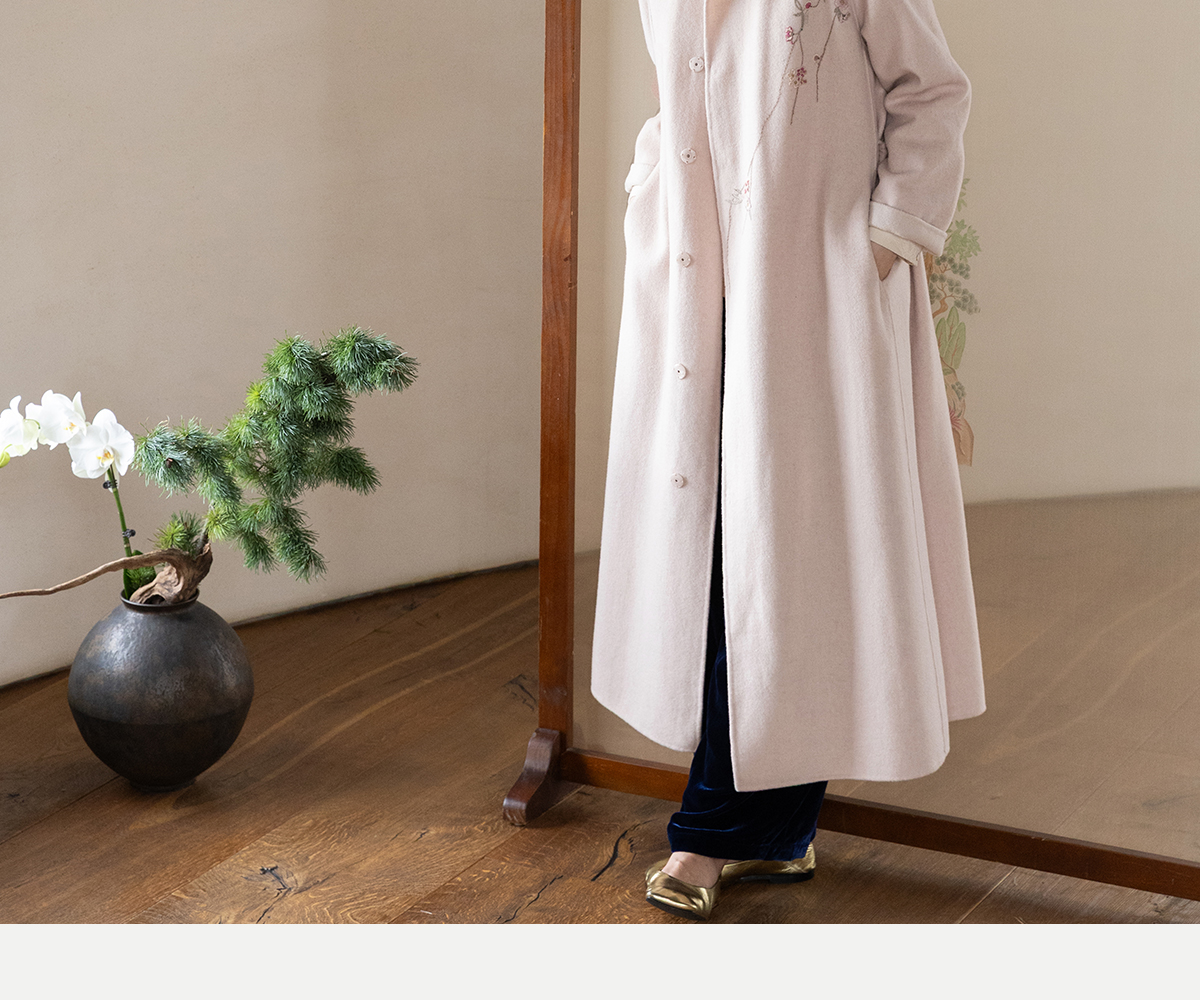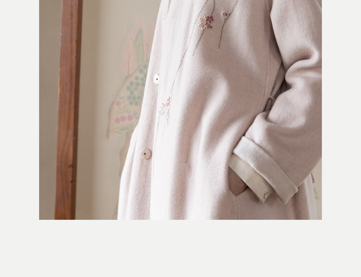 牧衣游原创 绵羊毛混纺手工刺绣毛呢长外套冬季宽松气质大衣 南妗