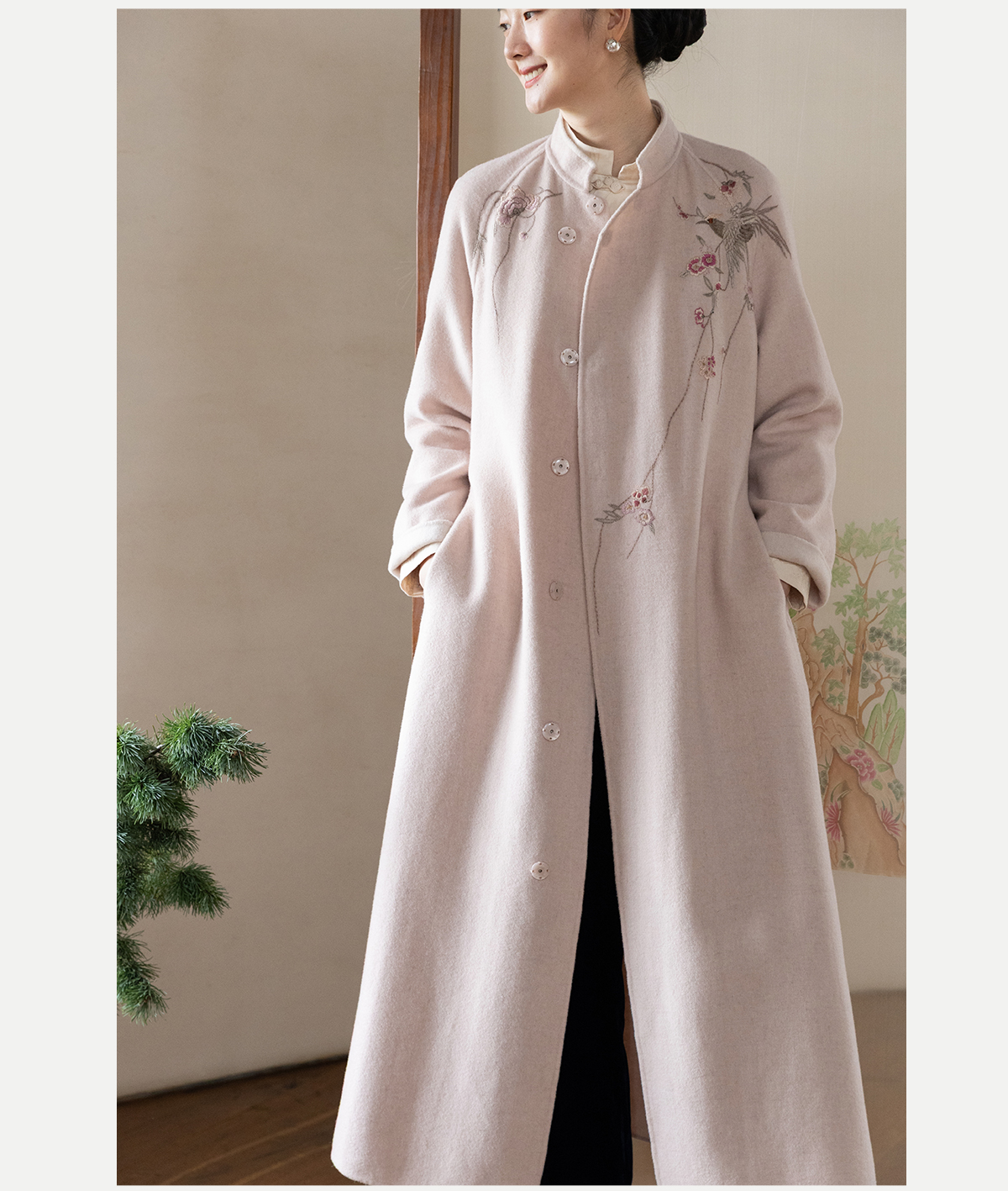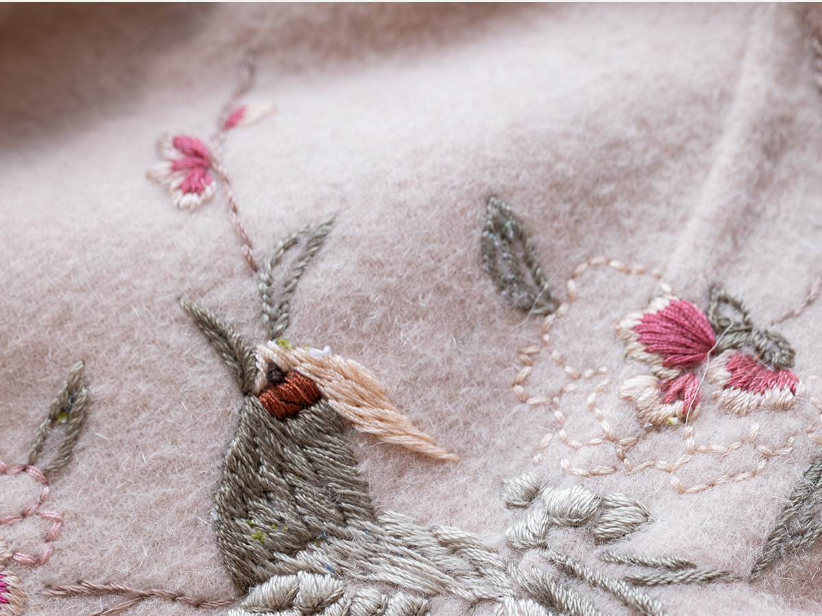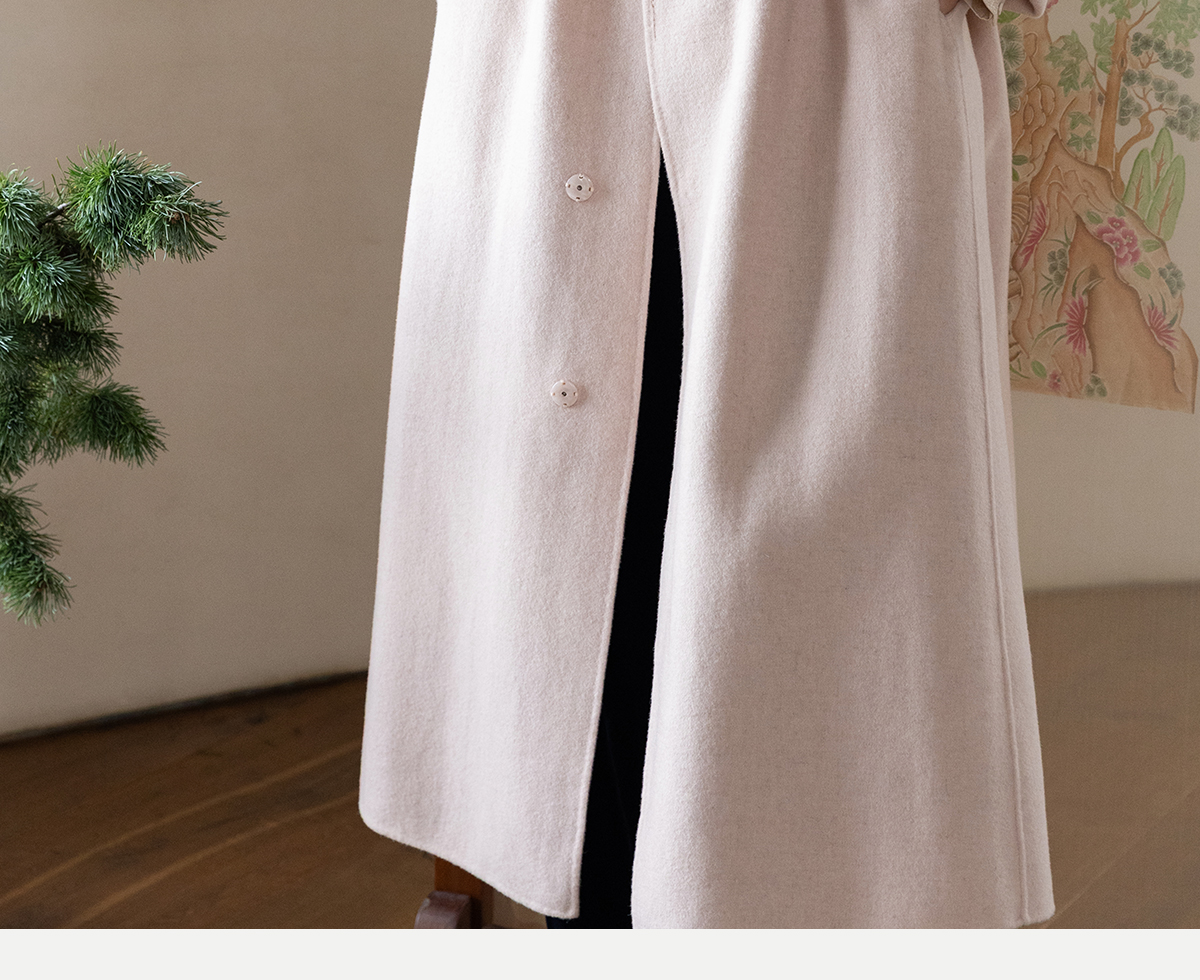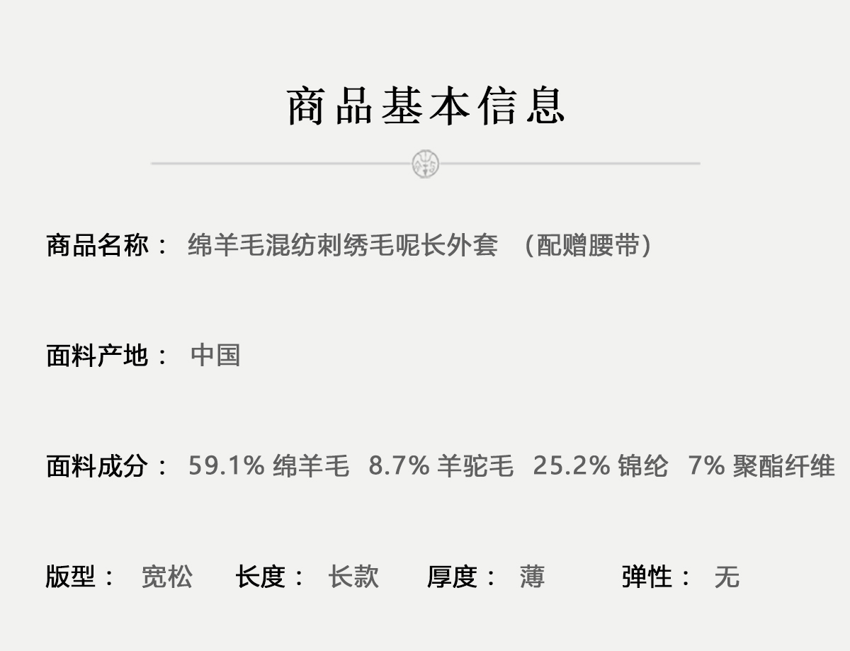 牧衣游原创 绵羊毛混纺手工刺绣毛呢长外套冬季宽松气质大衣 南妗