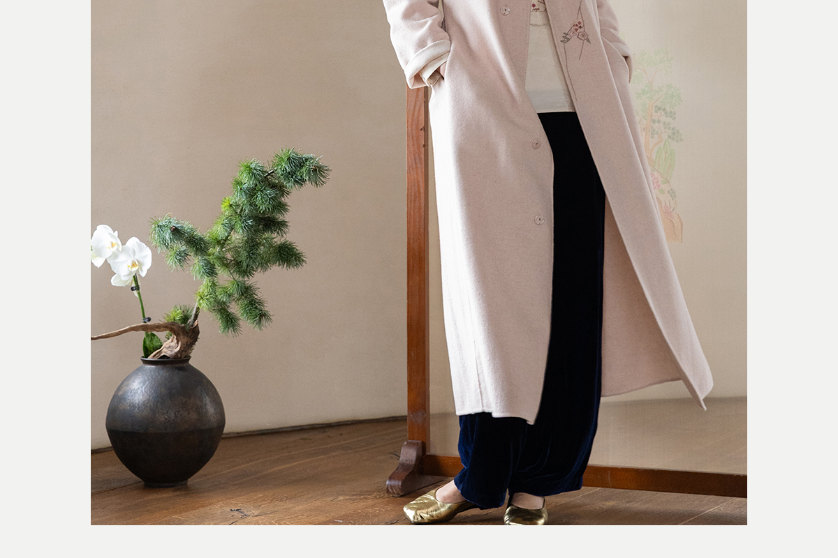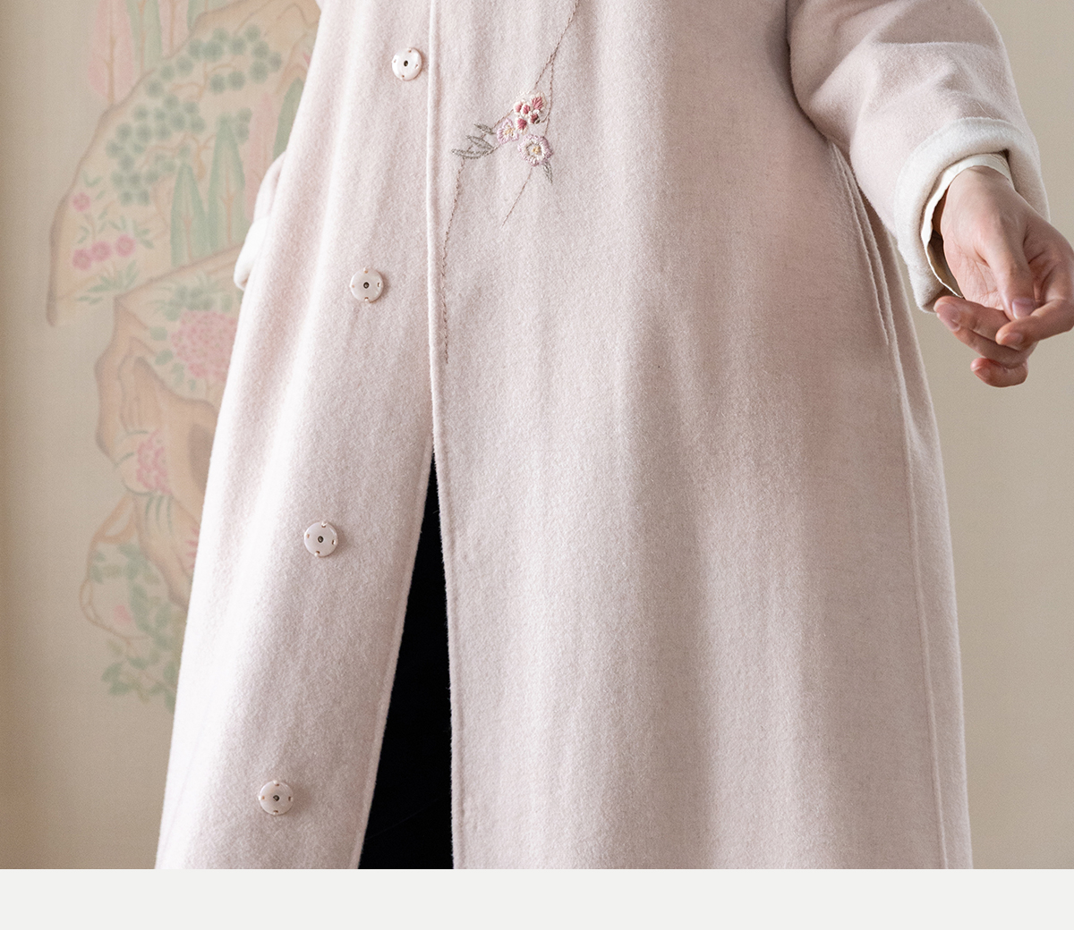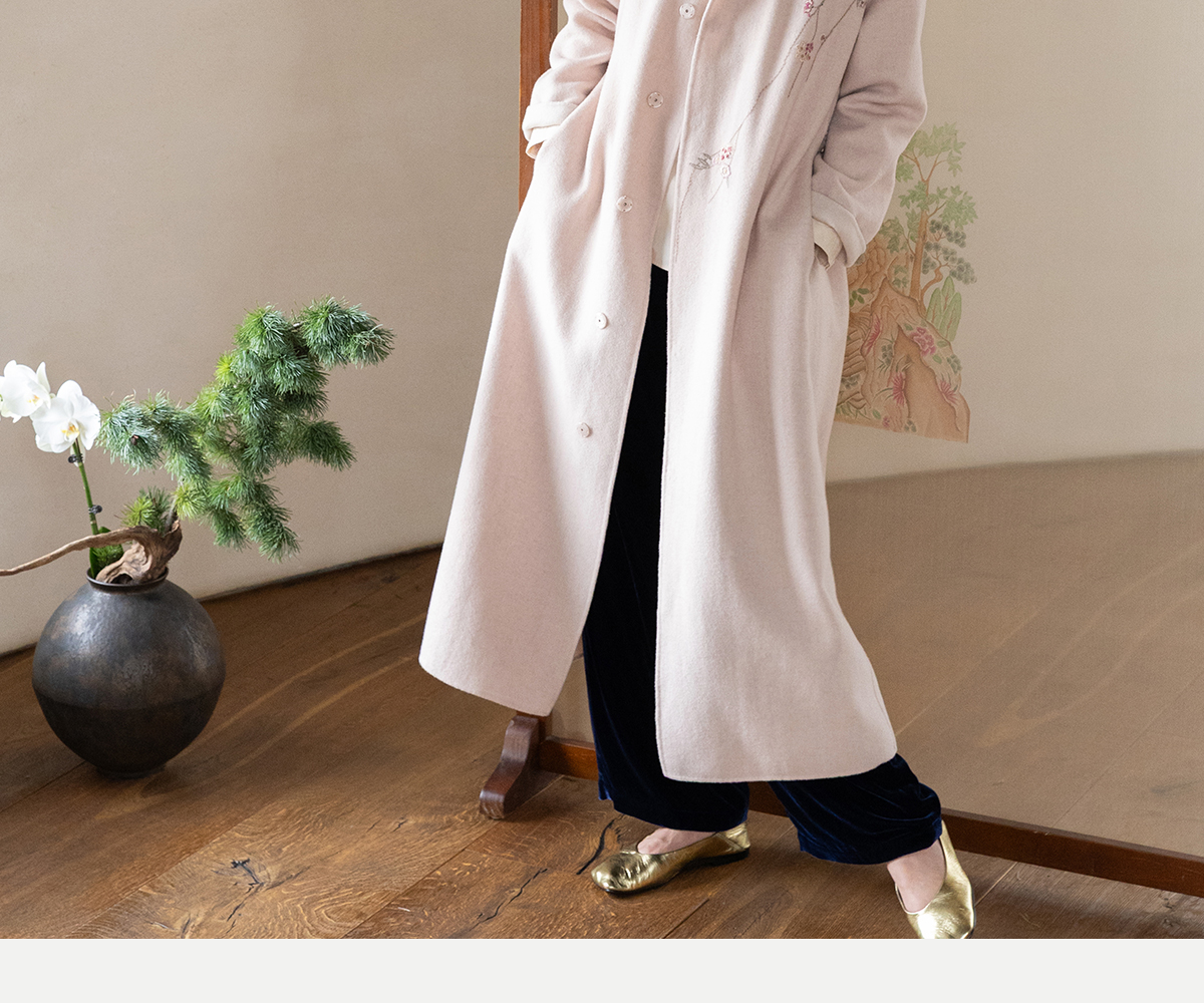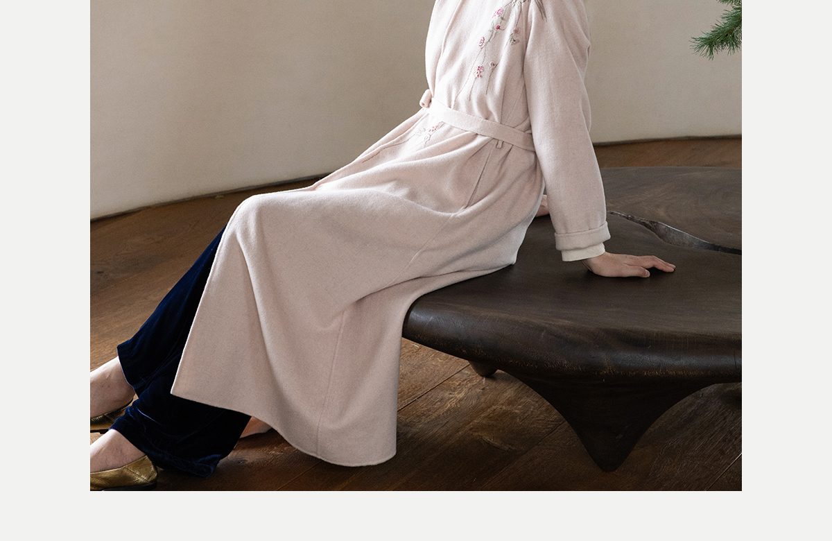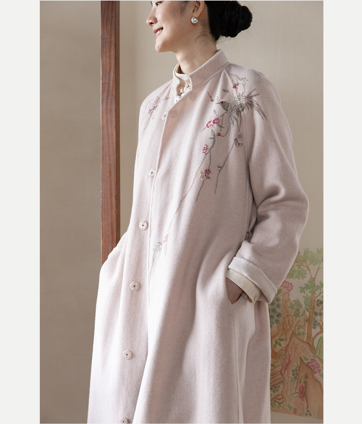 牧衣游原创 绵羊毛混纺手工刺绣毛呢长外套冬季宽松气质大衣 南妗
