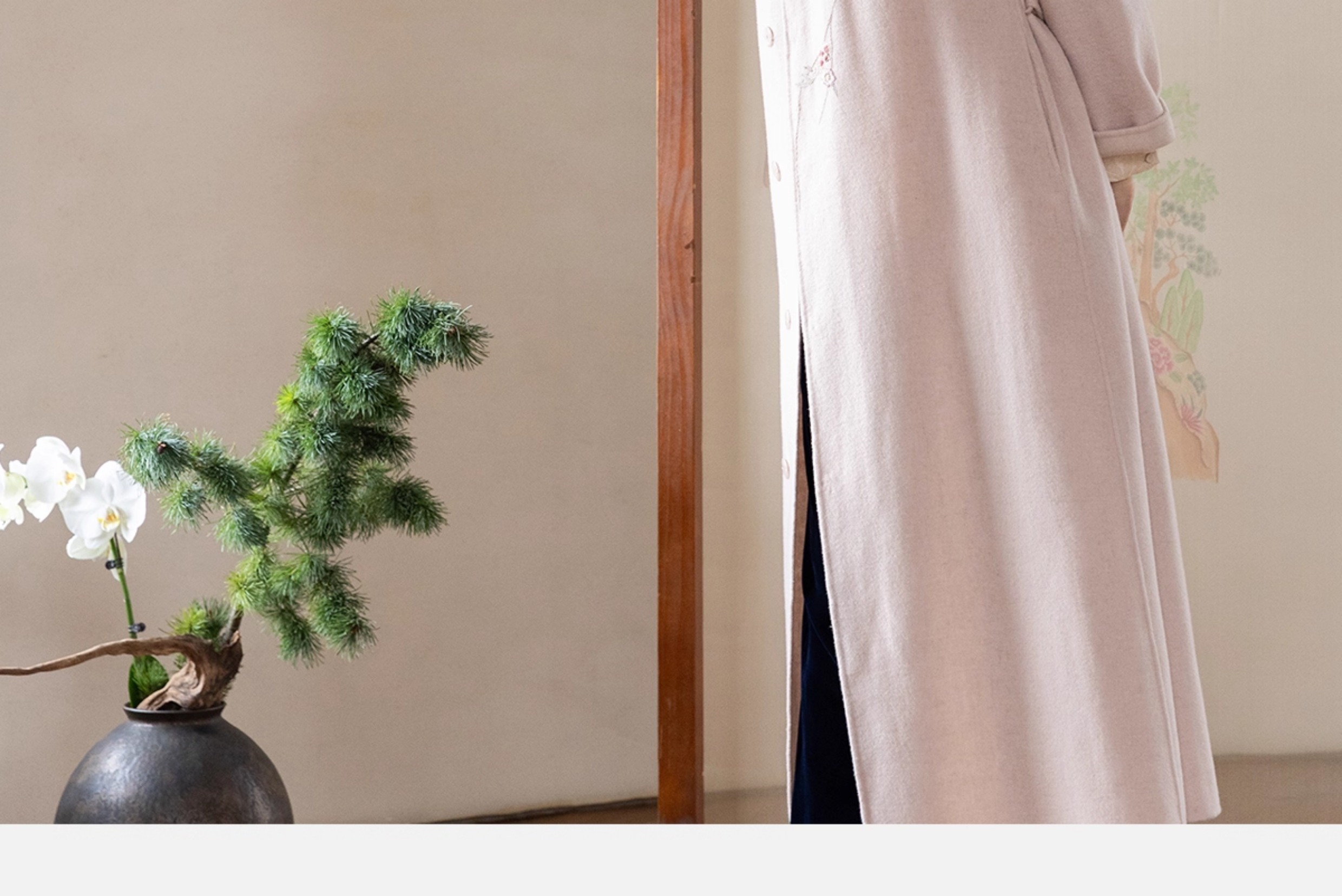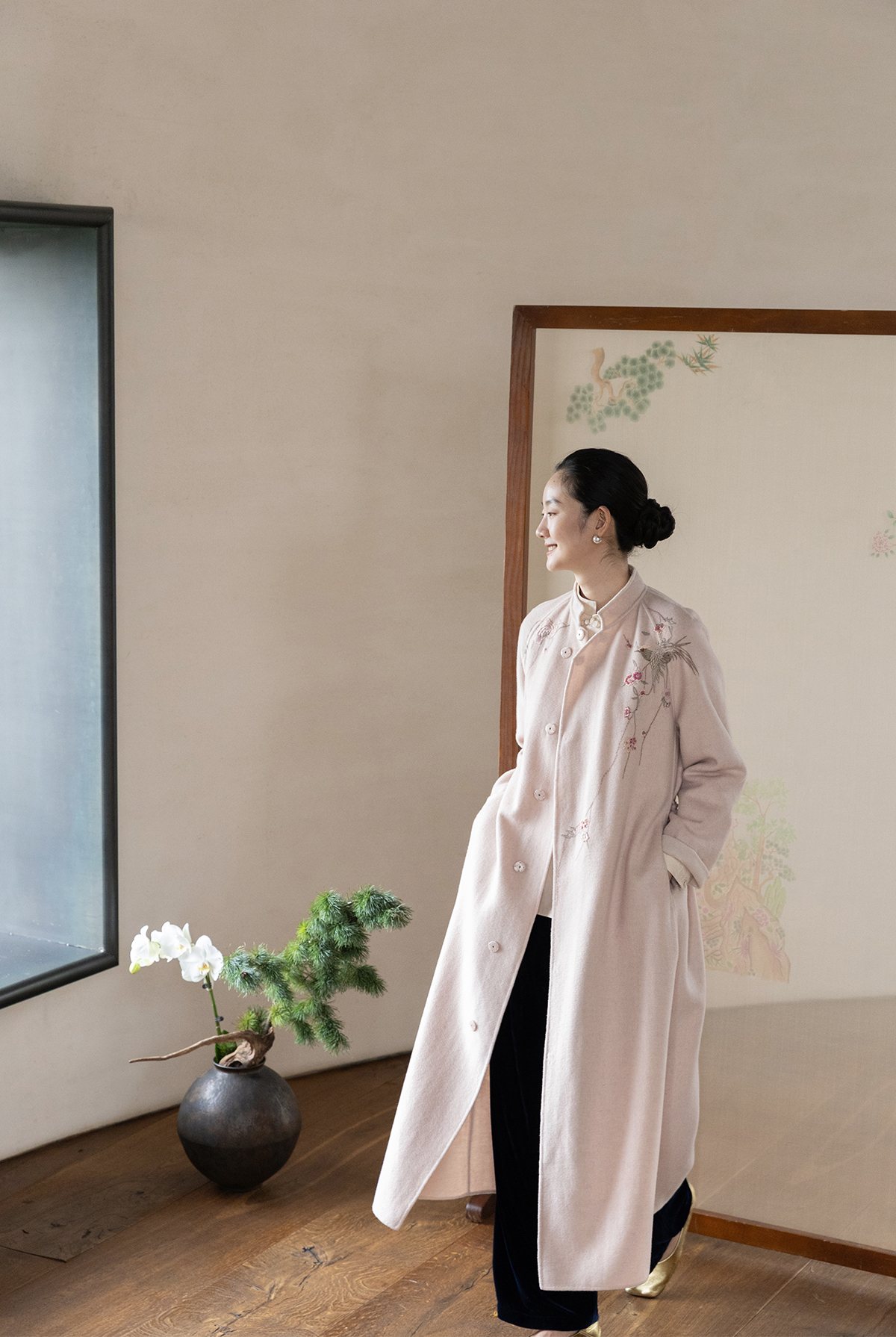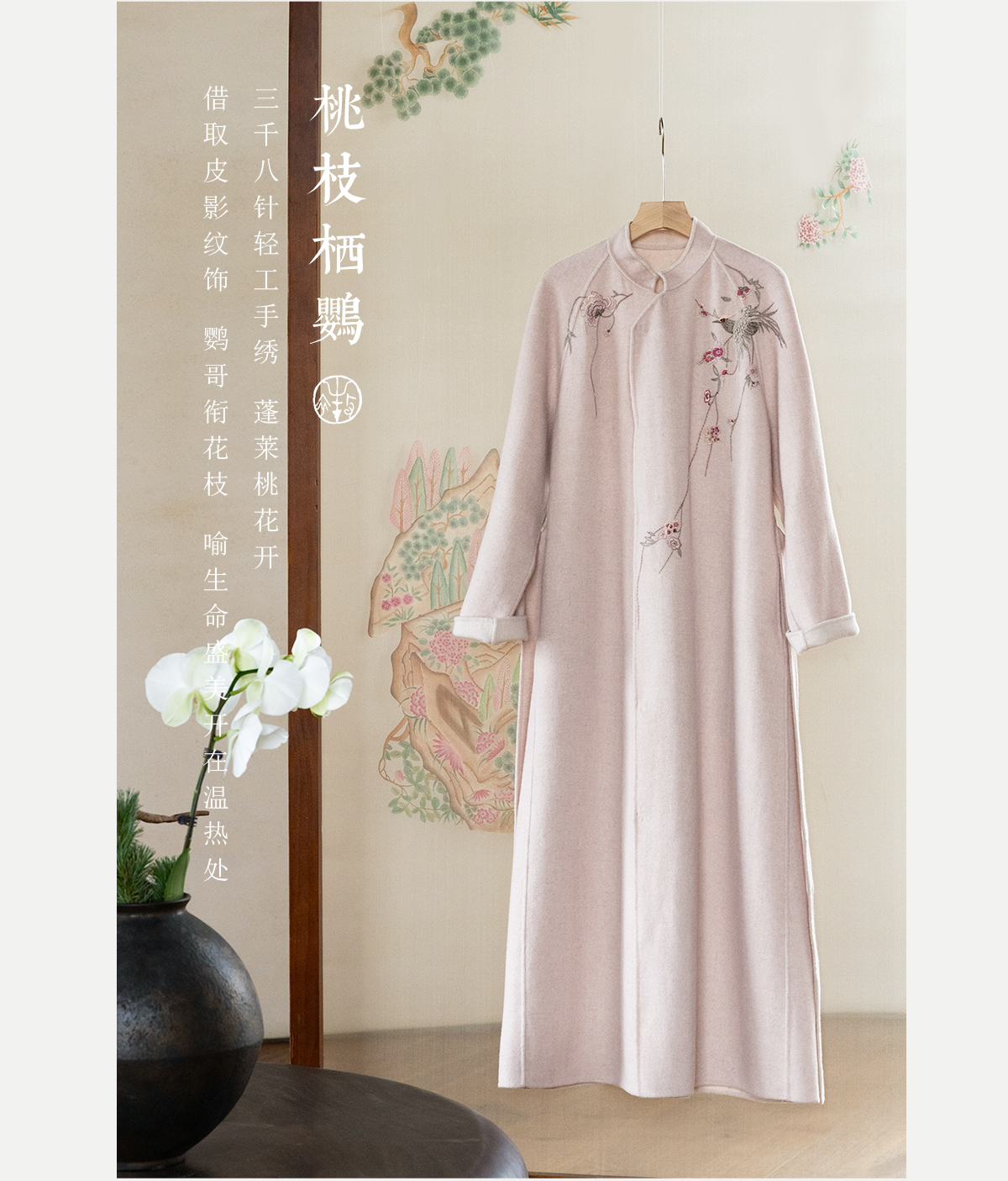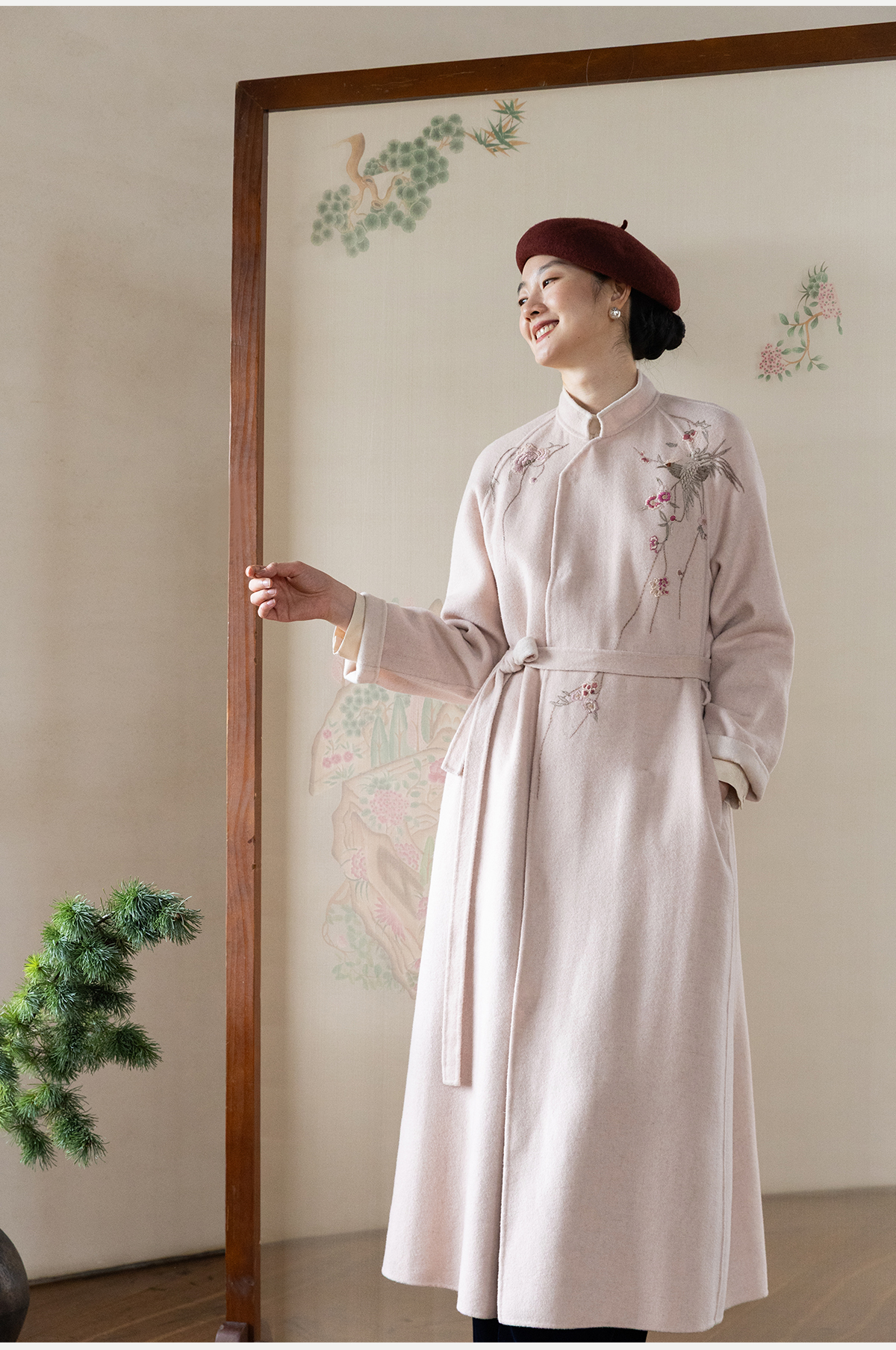 牧衣游原创 绵羊毛混纺手工刺绣毛呢长外套冬季宽松气质大衣 南妗