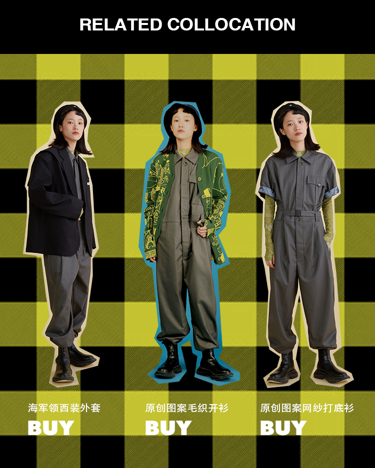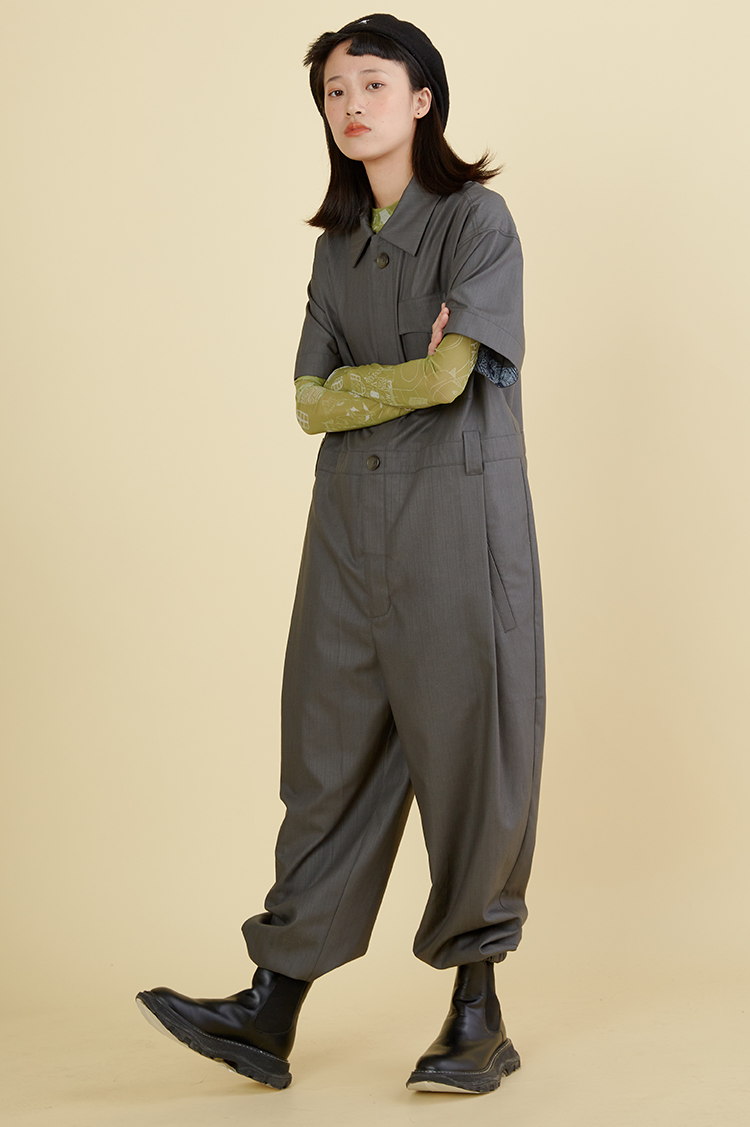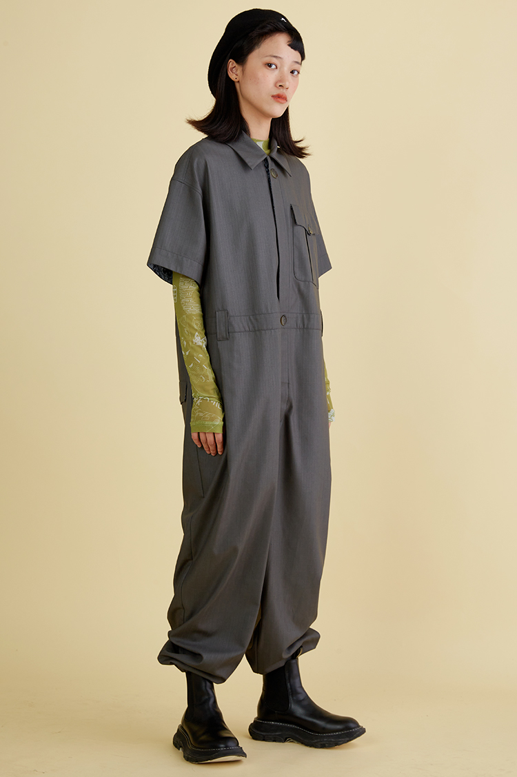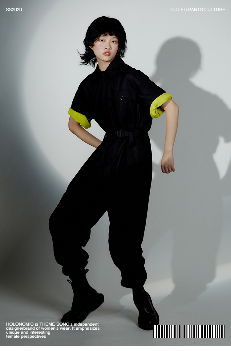 HOLONOMIC 原创设计工装腰果花拼贴宽松垂感束脚连体裤