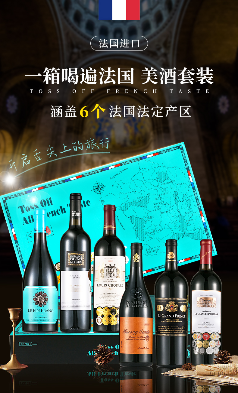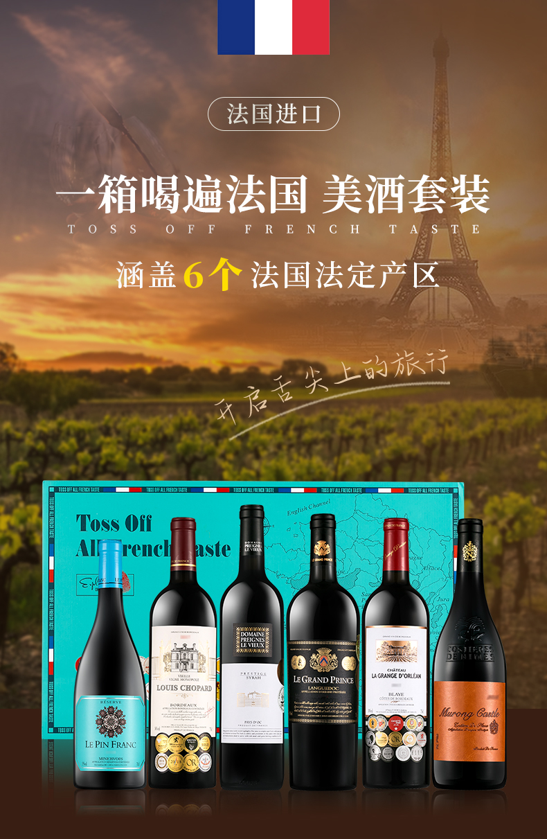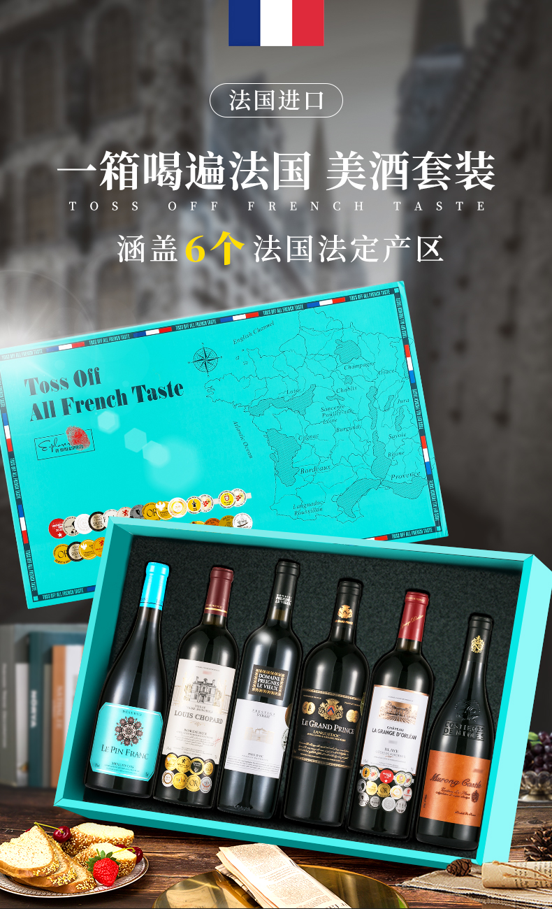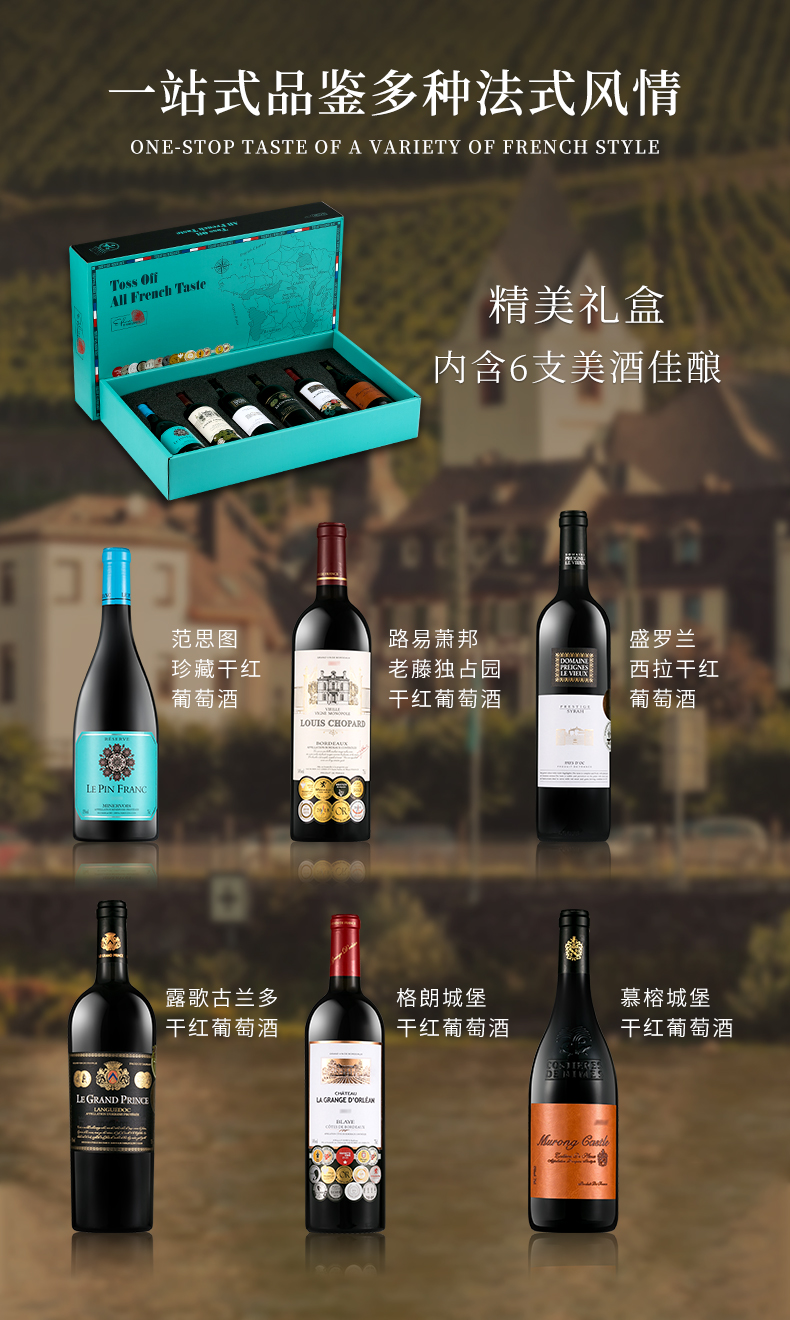 一站式品鉴多种法式风情 | 一箱喝遍法国红酒6瓶礼盒装[福利品]