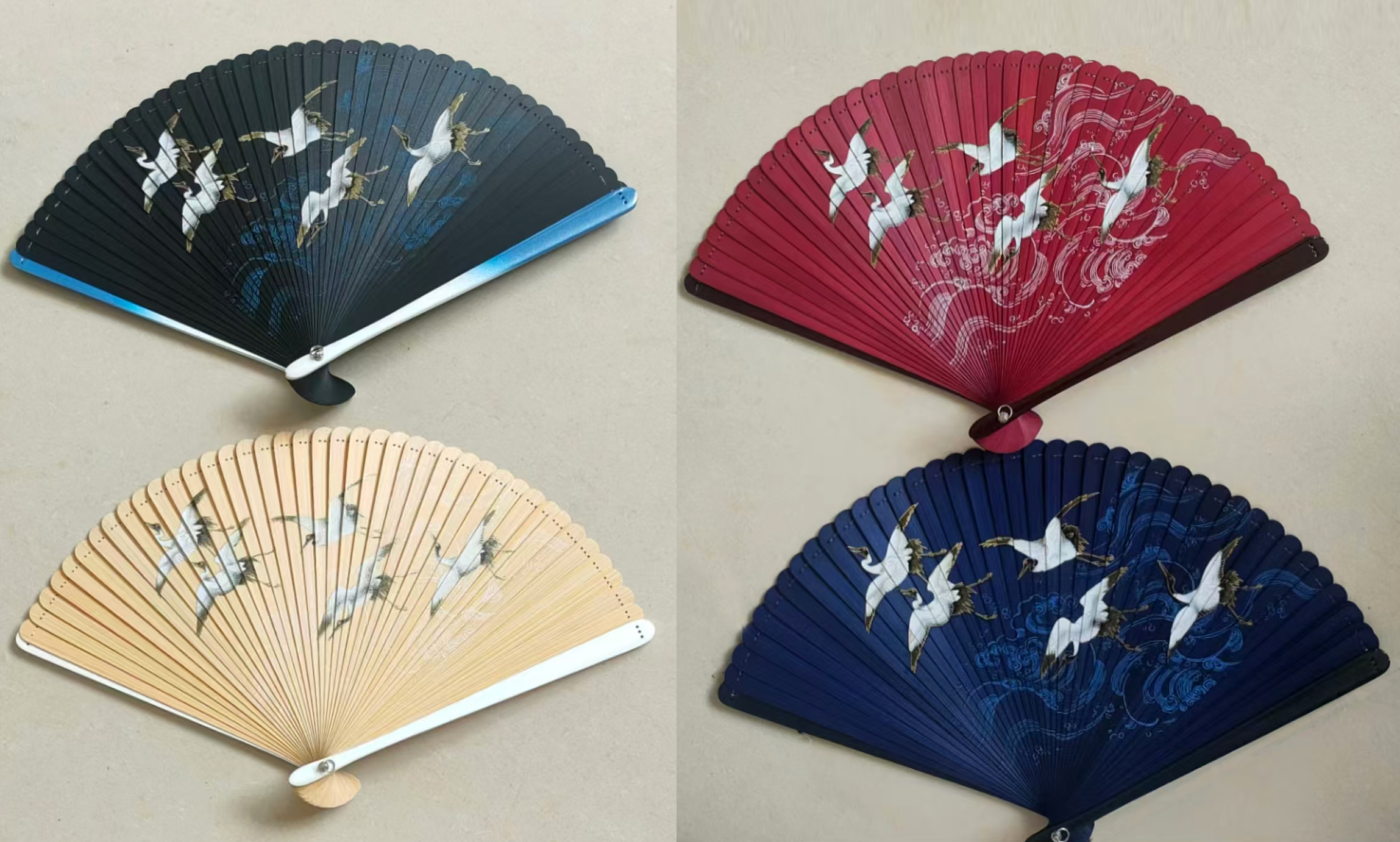 竹扇仙鹤/小牡丹°(图案颜色随机)