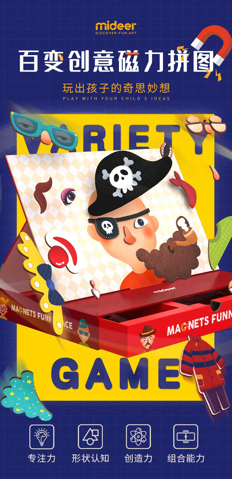 T 弥鹿mideer 磁力贴游戏套装-有趣脸谱