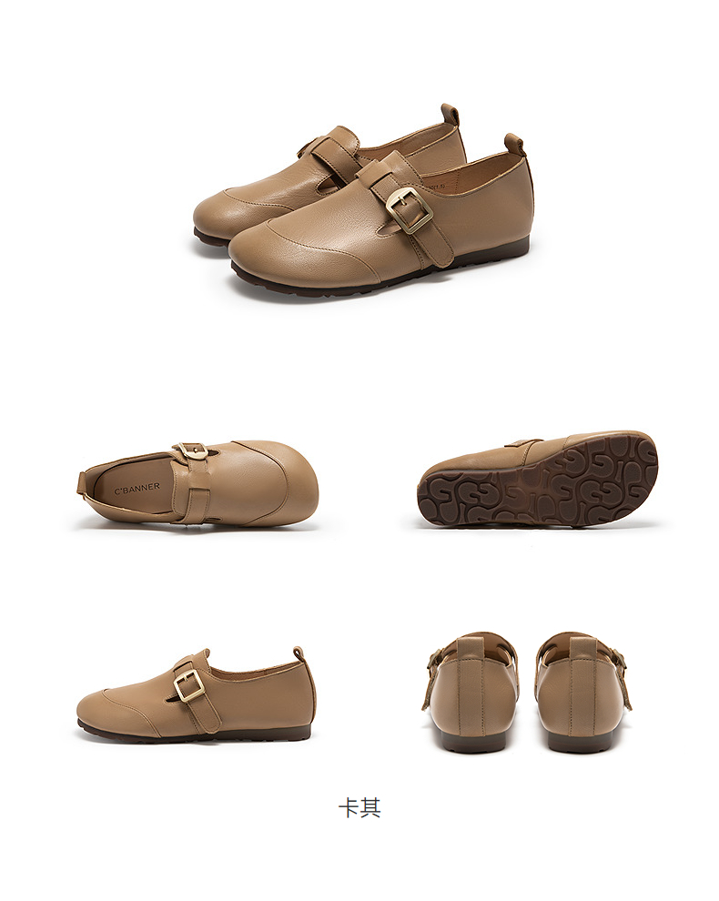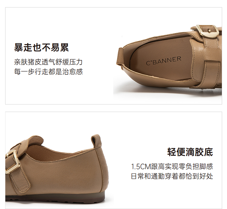 千百度厚底圆头玛丽珍鞋女羊皮小皮鞋乐福鞋浅口单鞋A25468962