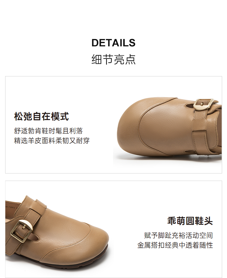 千百度粗跟褶皱真皮包头拖女外穿舒适一脚蹬凉拖鞋A25251719