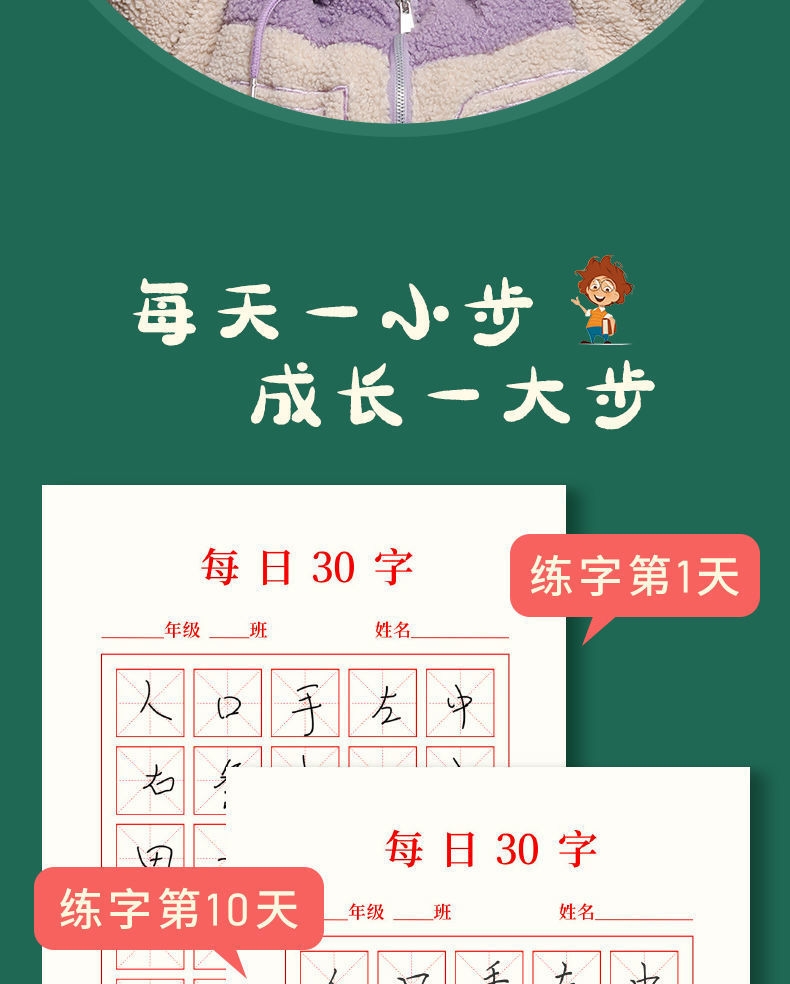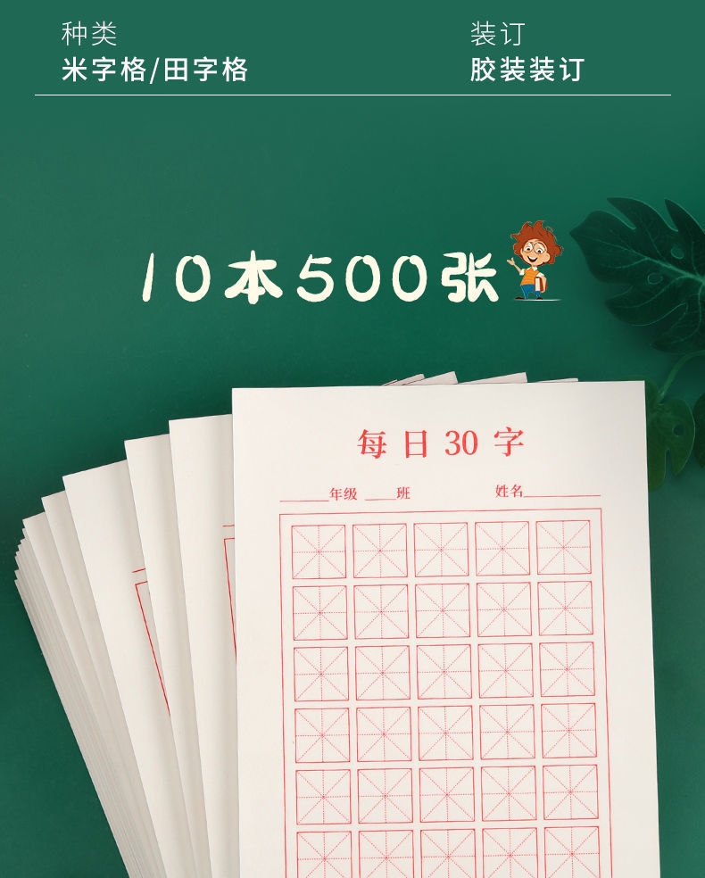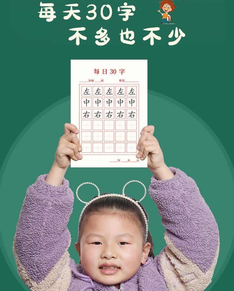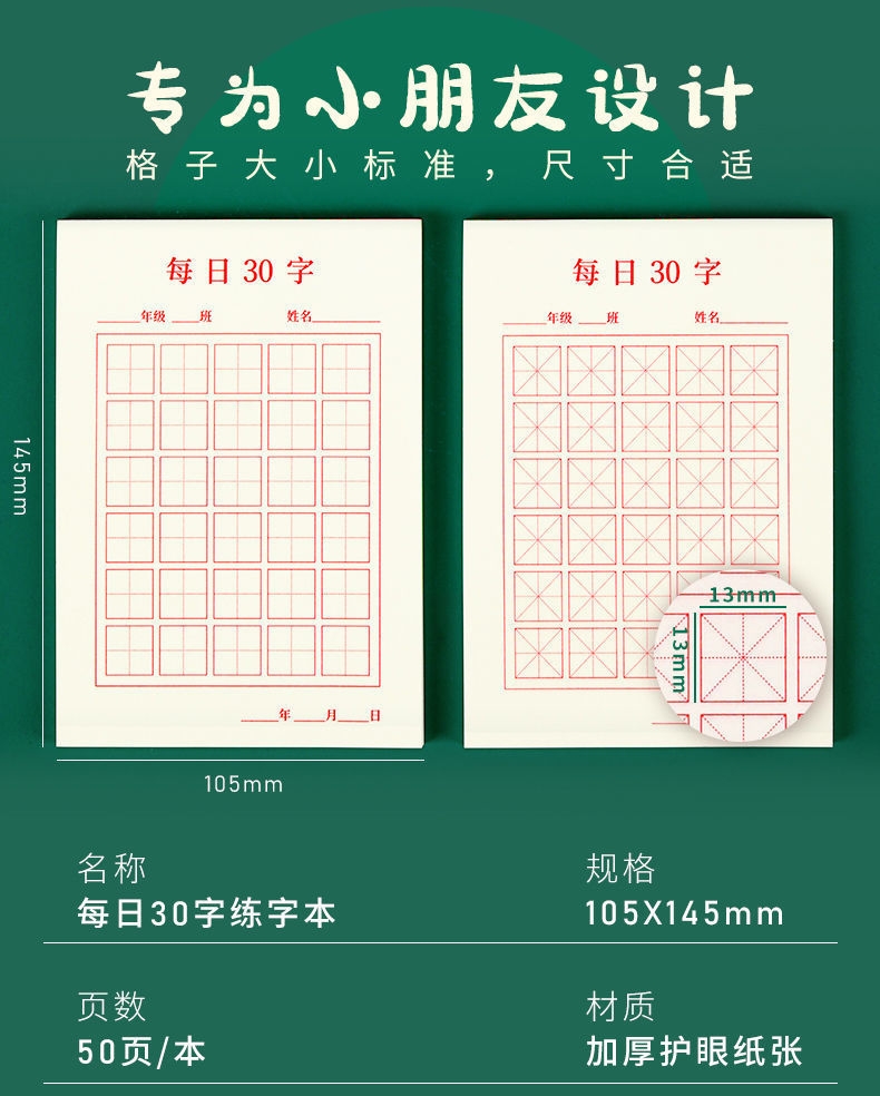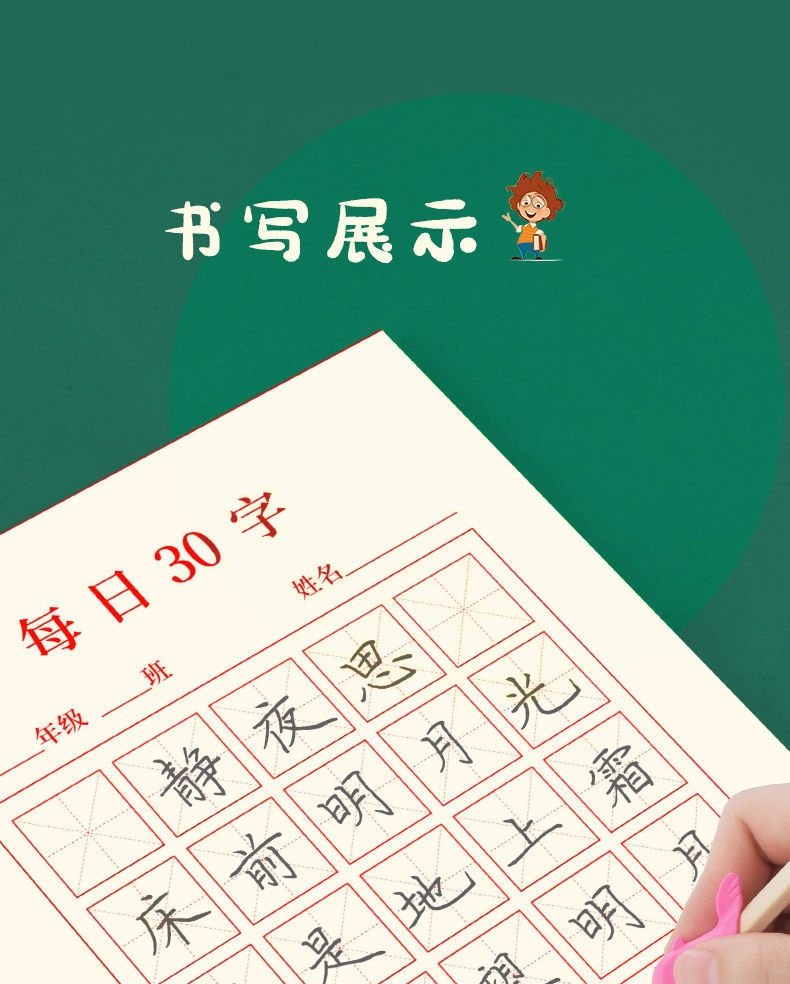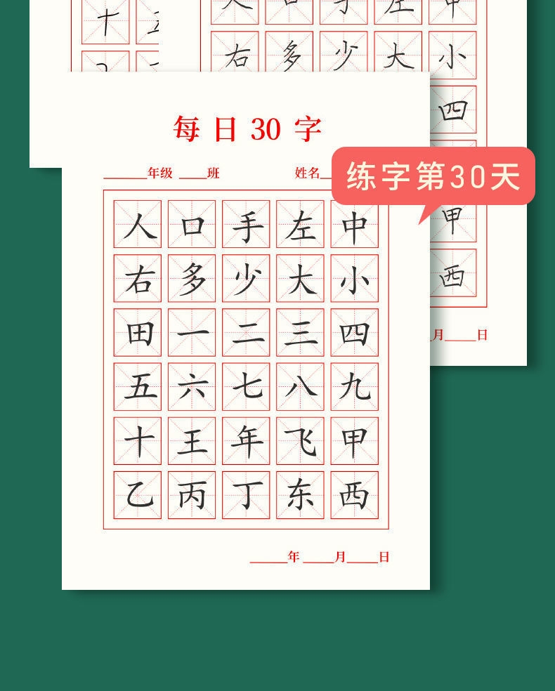 【书行】每日30字专为孩子设计小学生练习用书法纸每日一练田字格米字格练字本小学生儿童常用书法纸