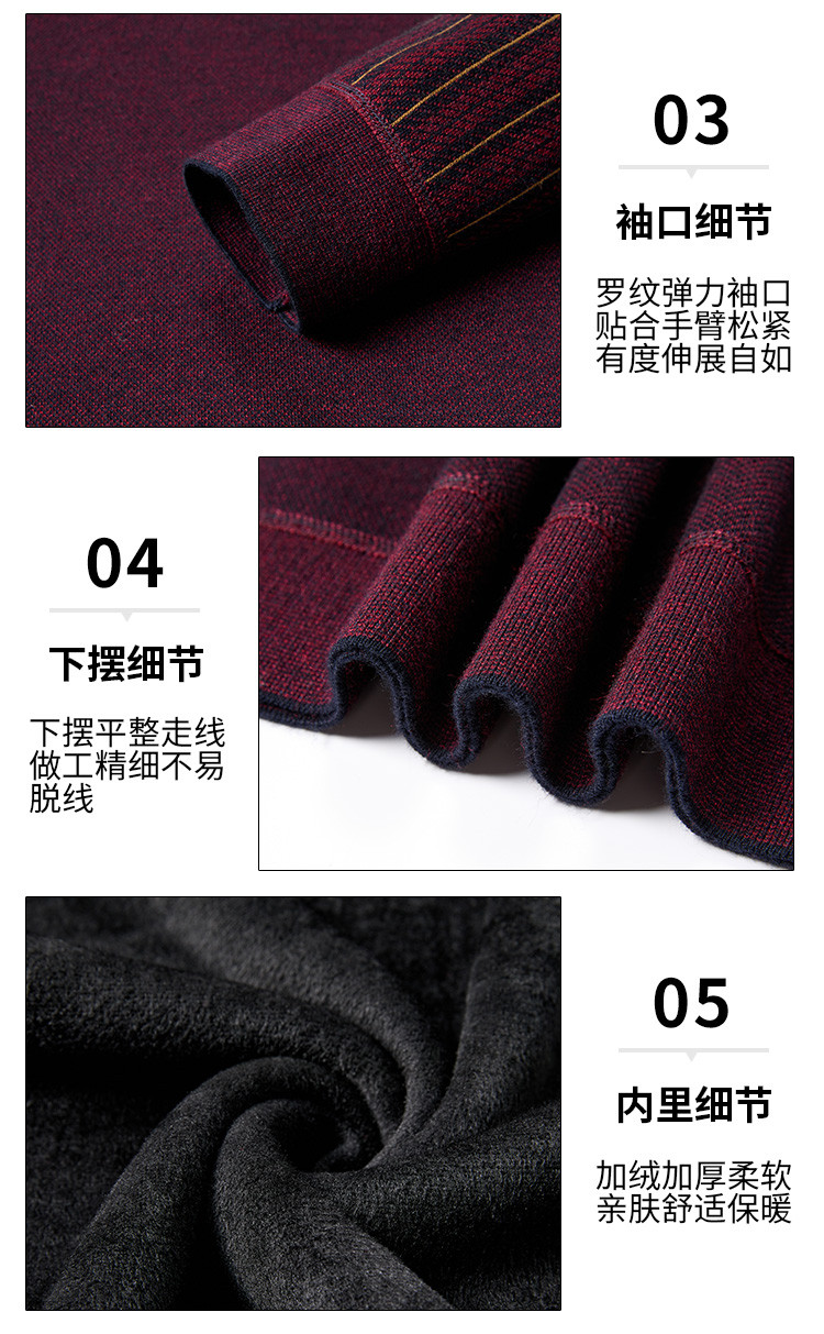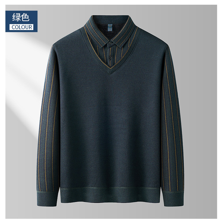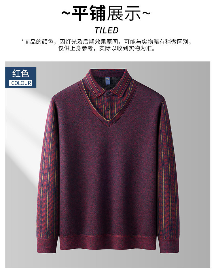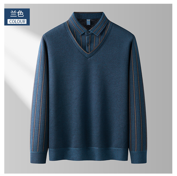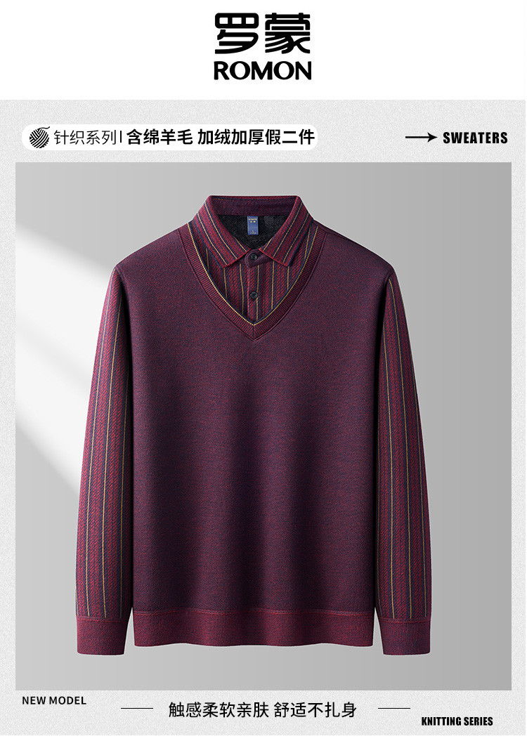 【加绒加厚】罗蒙含羊毛假两件衬衫领男士针织衫保暖毛衣假两件毛衫男