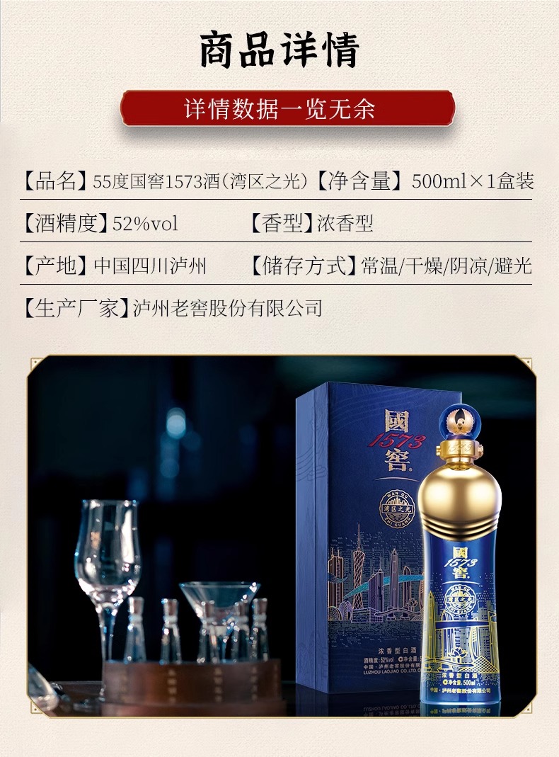 【酒厂直营】52度国窖1573·湾区之光500ml 泸州老窖官方旗舰店