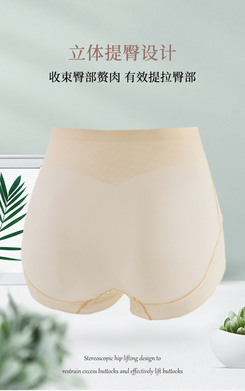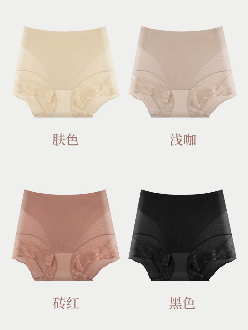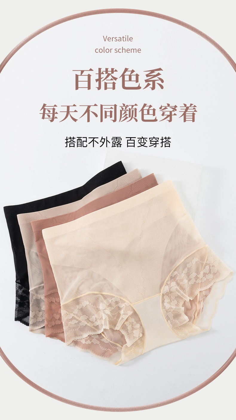 网纱无痕塑型裤 美宅内裤女士冰丝无痕大码高腰收腹蕾丝边三角裤薄款透气底裤