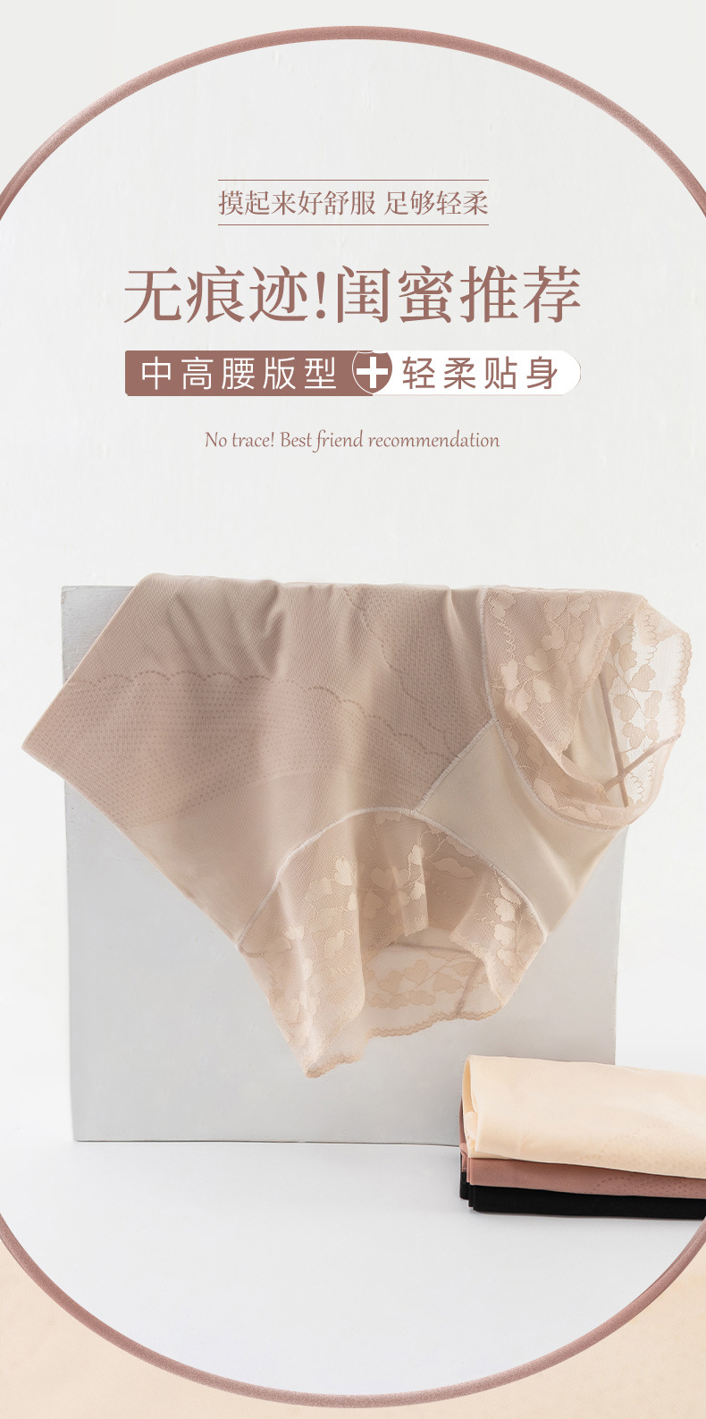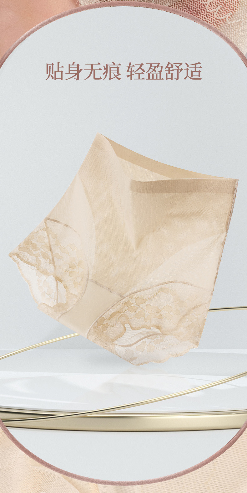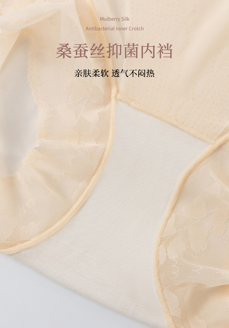 网纱无痕塑型裤 美宅内裤女士冰丝无痕大码高腰收腹蕾丝边三角裤薄款透气底裤