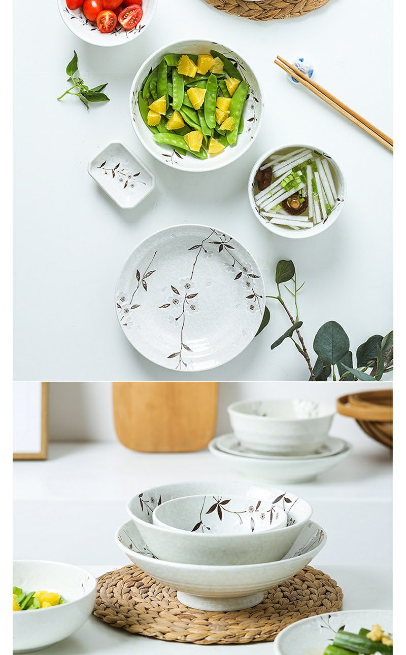 日本进口美浓烧白色樱花陶瓷多用碗/盘日式餐具