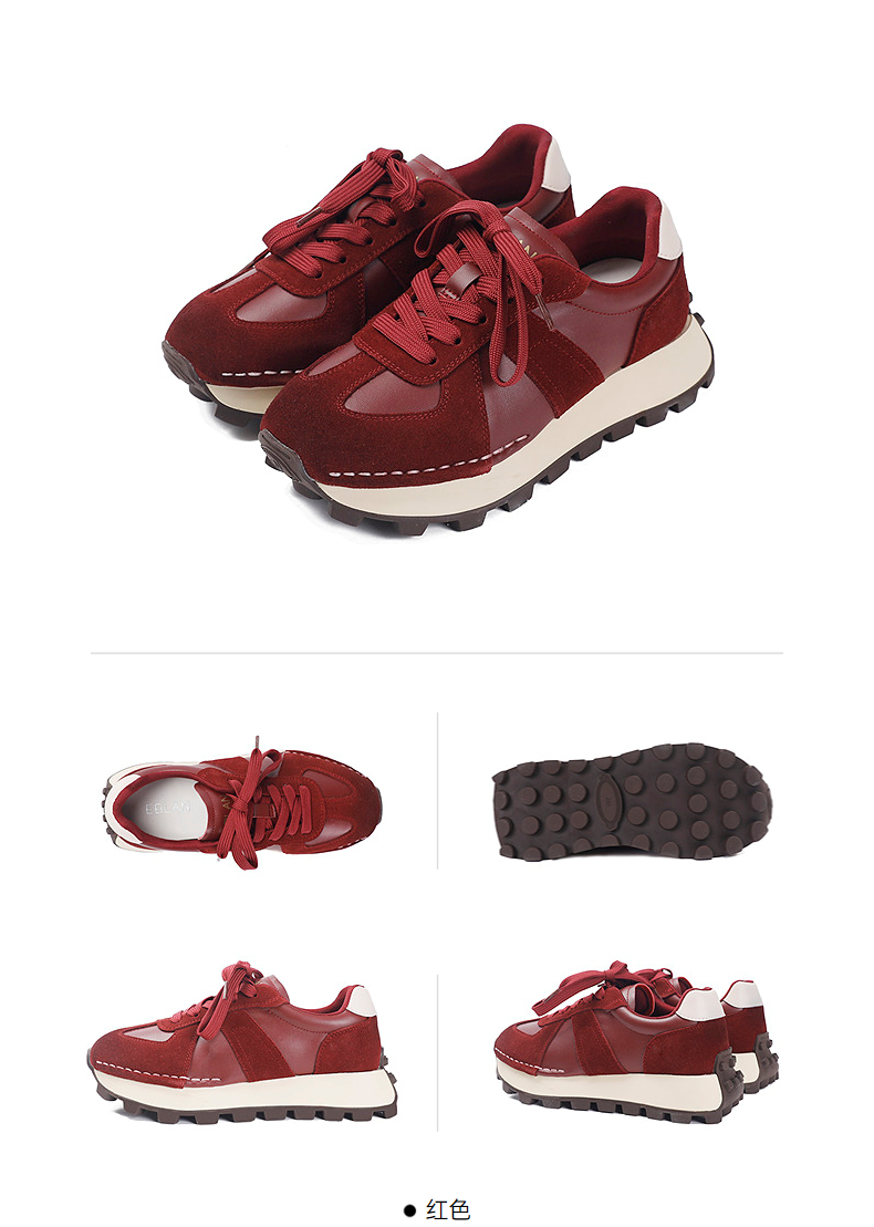 千百度薄底轻便时尚休闲鞋女绒面德训鞋跑步运动鞋A25454203