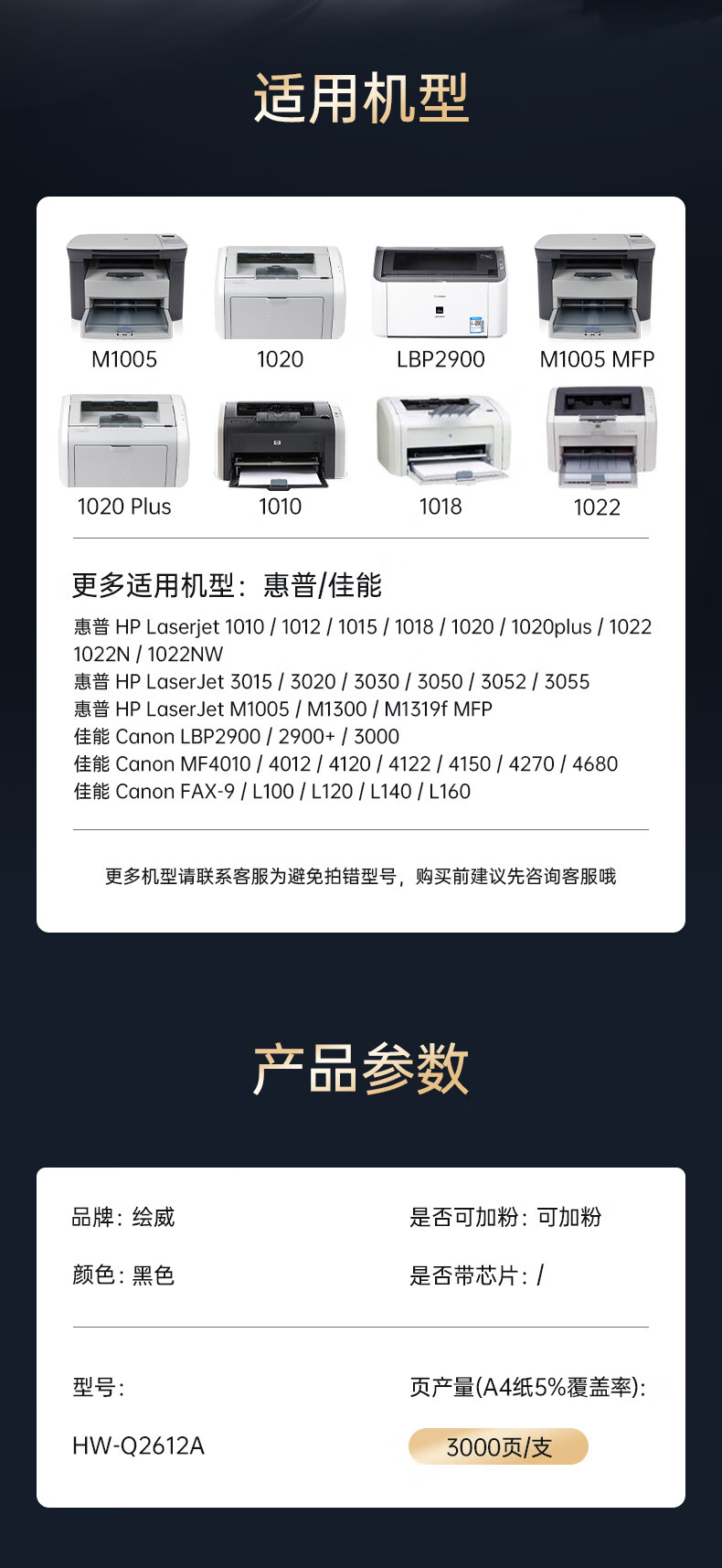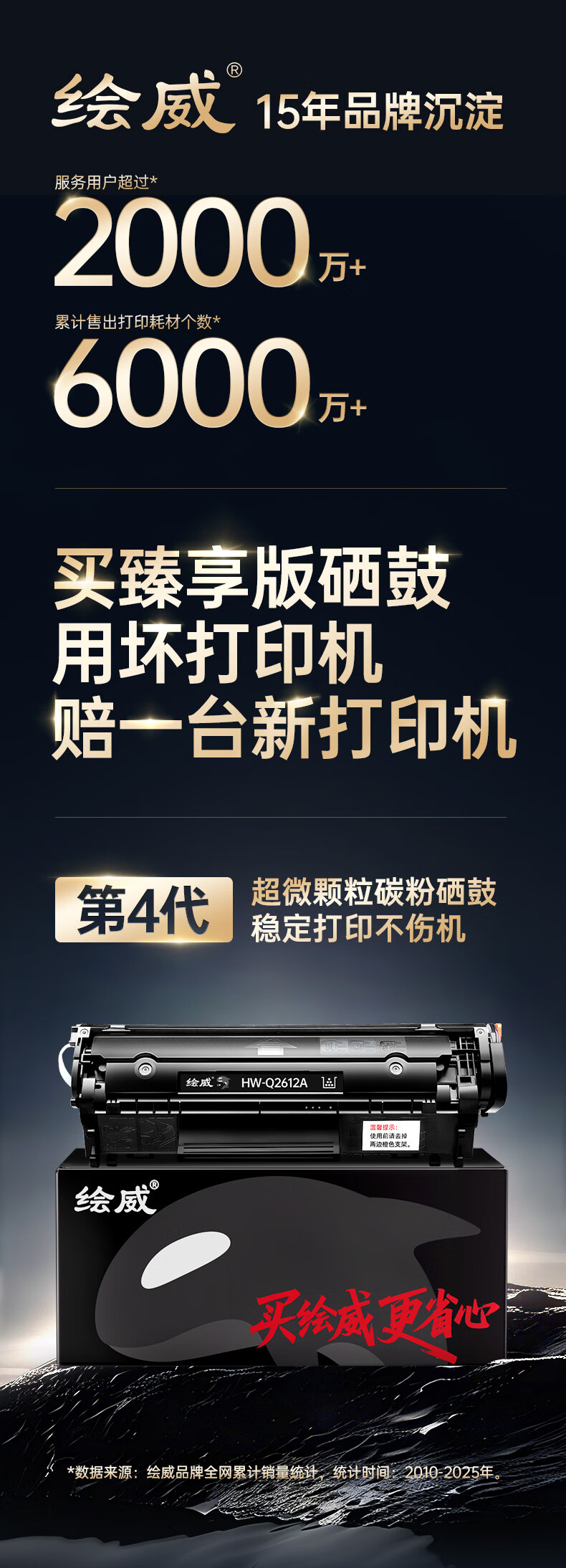 绘威臻享版适用惠普m1005 2612硒鼓102012a 1010 1012 1015 1018 1020plus硒鼓佳能lbp2900打印机硒鼓墨盒