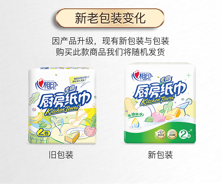 【自营】 心相印 75节印花厨房纸巾 吸油锁水 可以接触食物 2卷/8卷