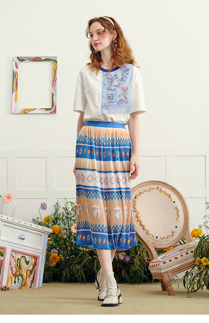 T恤 两三事迷蝶把戏 夏季新款时尚印花蝴蝶结拼接纯棉短袖t恤女