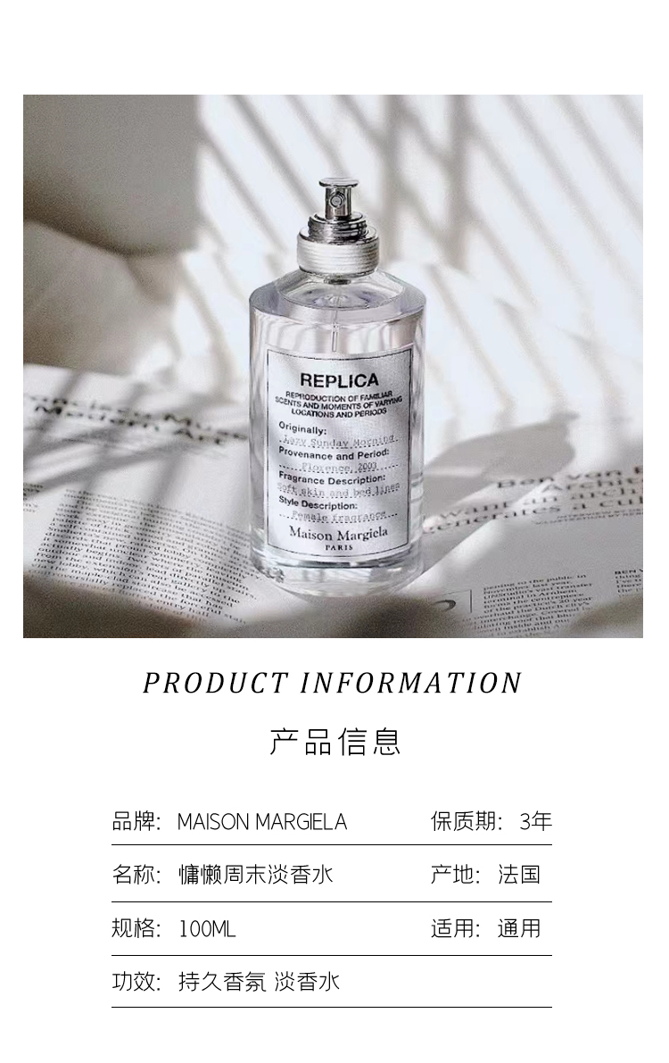 【保税仓】MaisonMargiela 梅森马吉拉 Lazy Sunday 慵懒周末早晨香水 100ml 木质花香调淡香氛(有效期至27年7月)