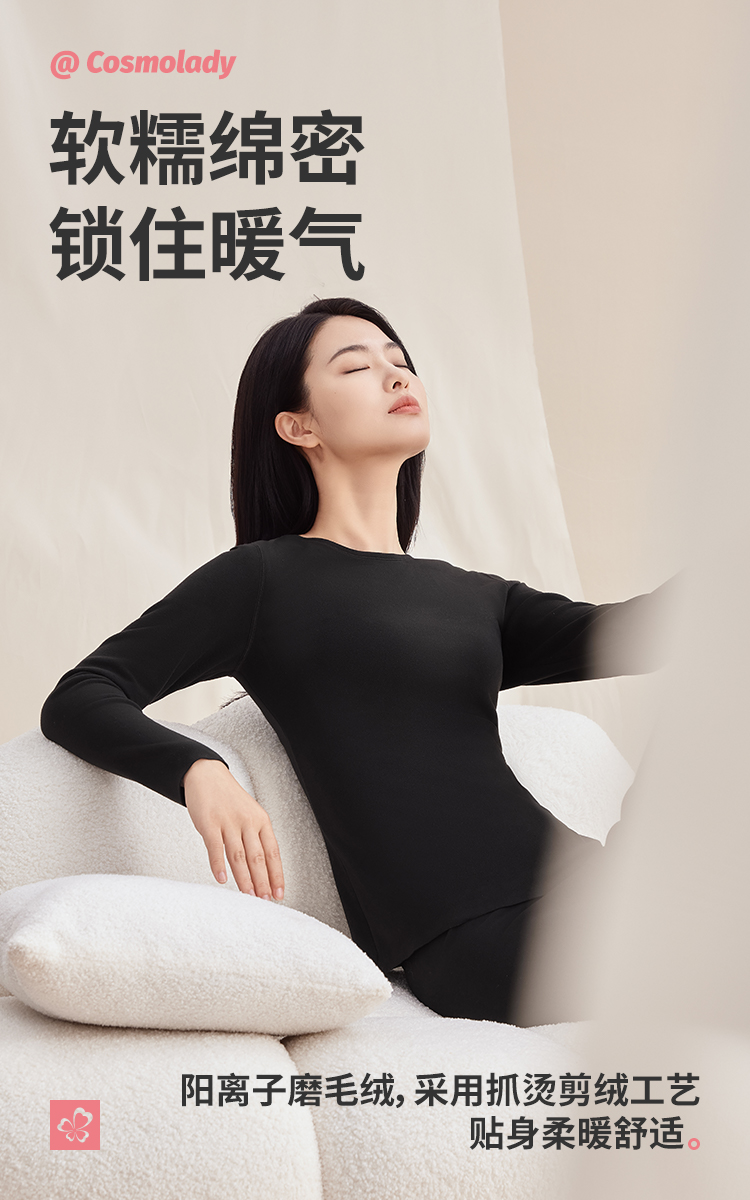 都市丽人女士套装保暖衣圆领阳离子磨毛绒保暖衣2WT1A6