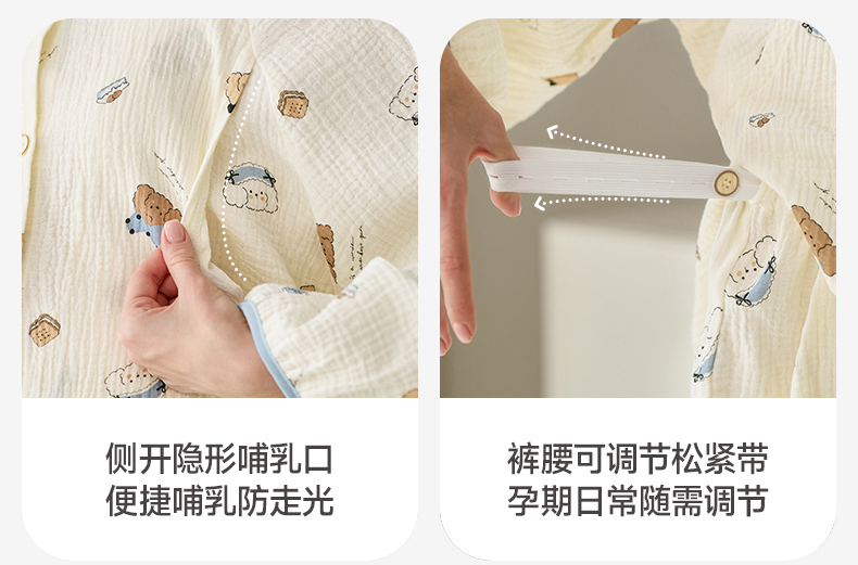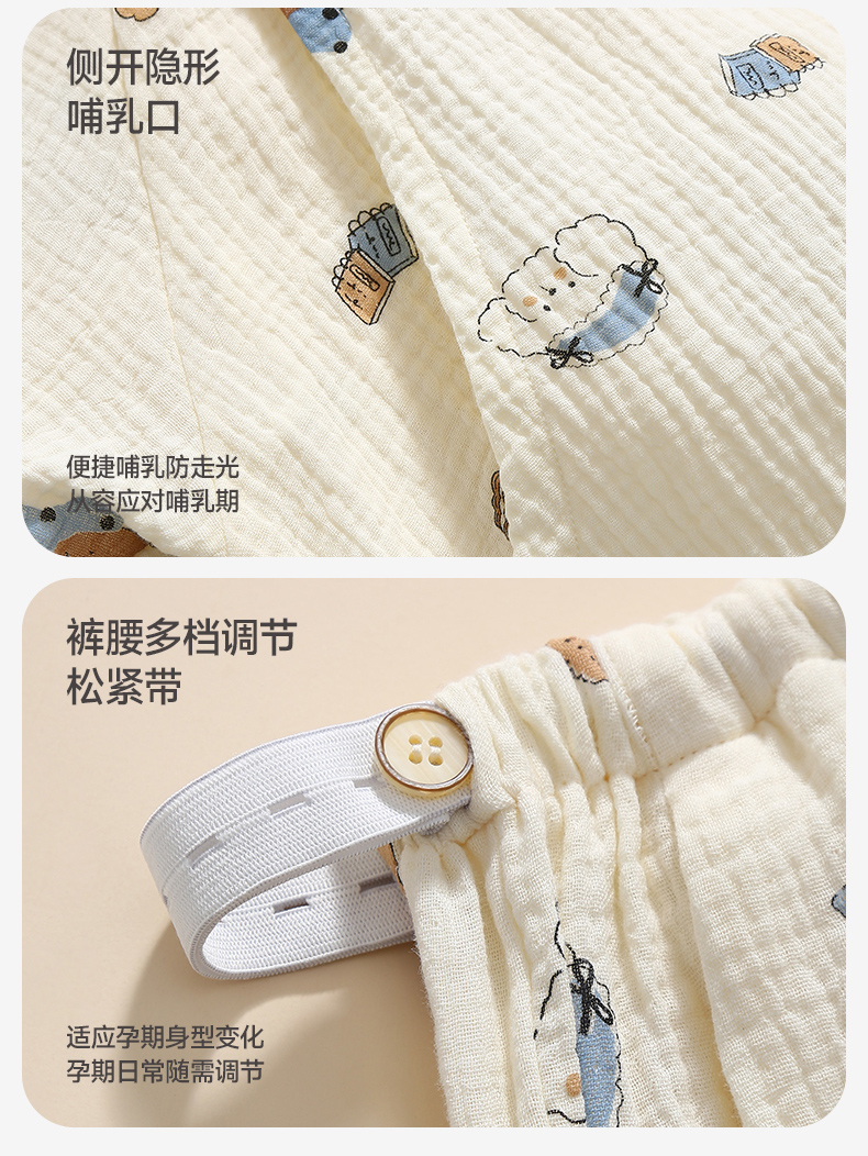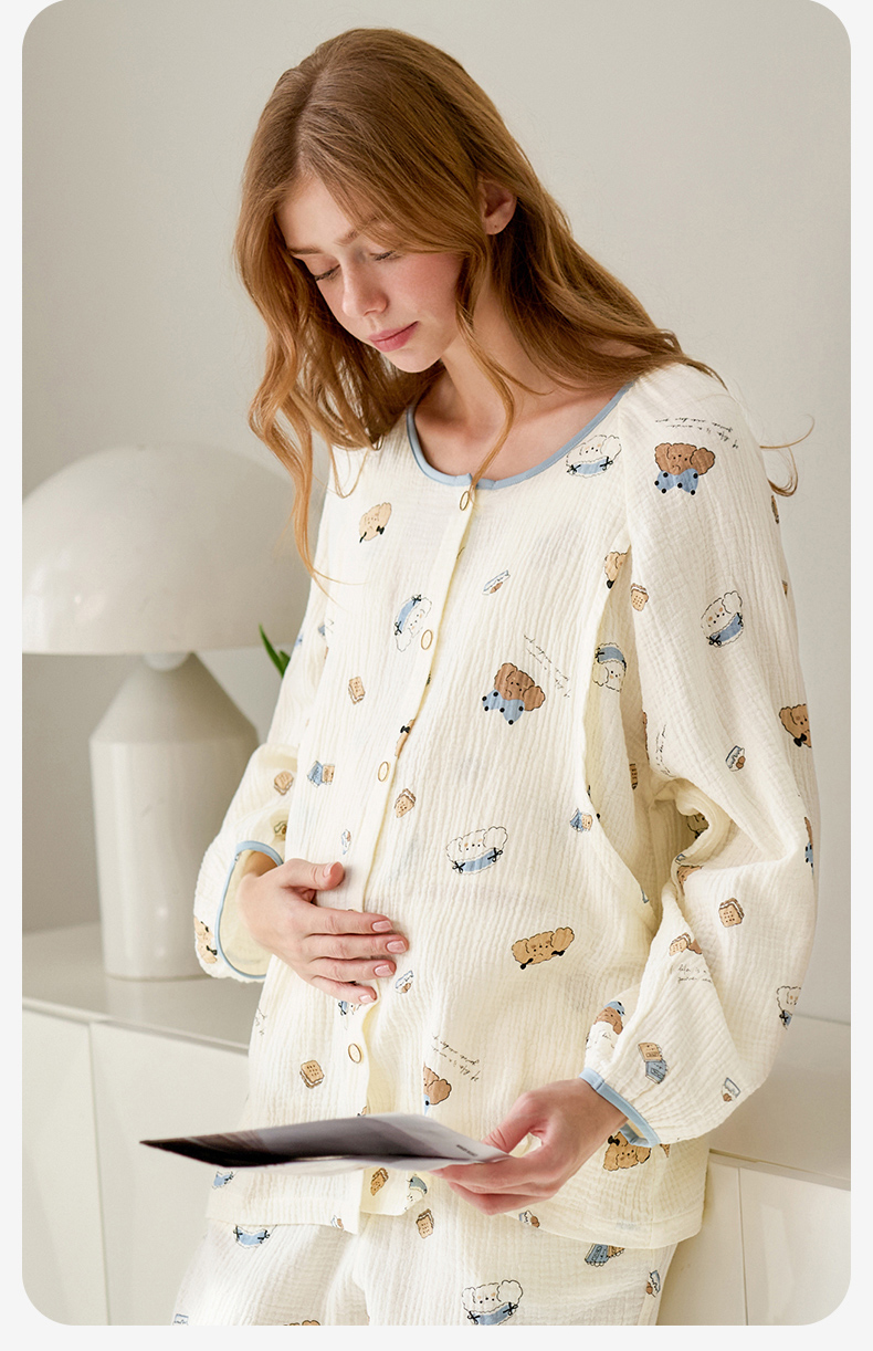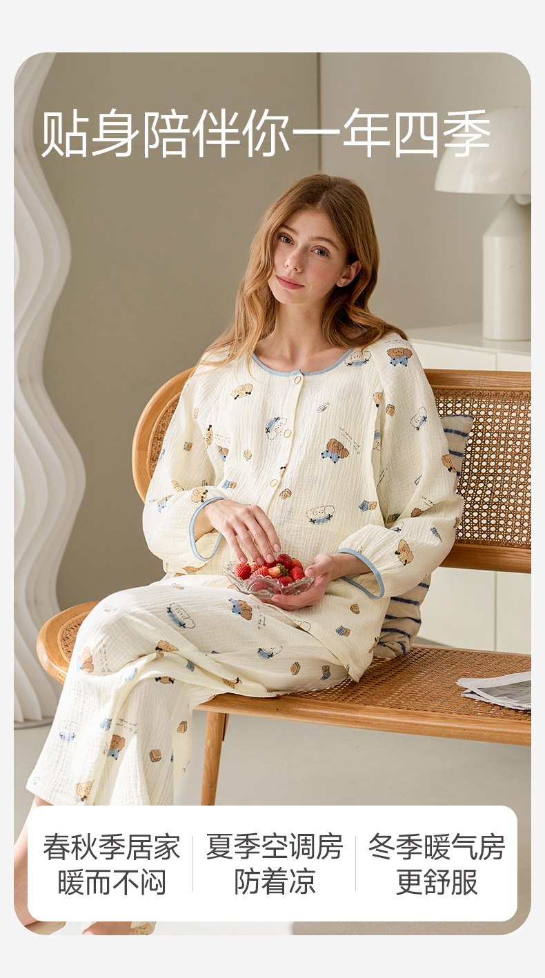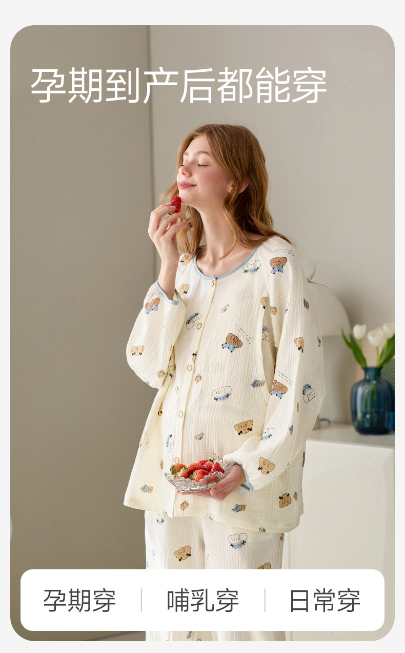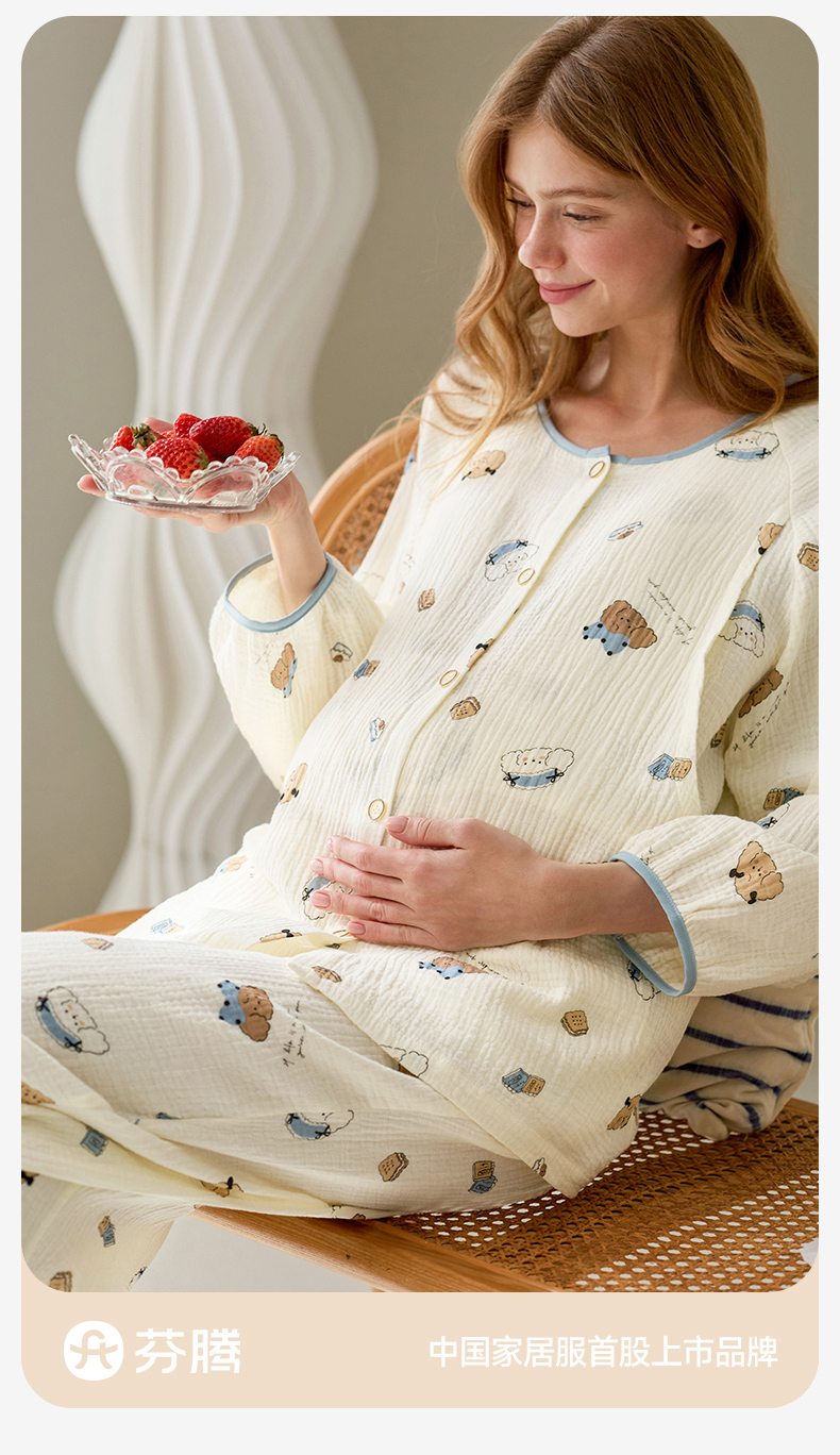 芬腾月子服纯棉长袖睡衣女春秋季套装孕妇产妇产后哺乳抗菌家居服