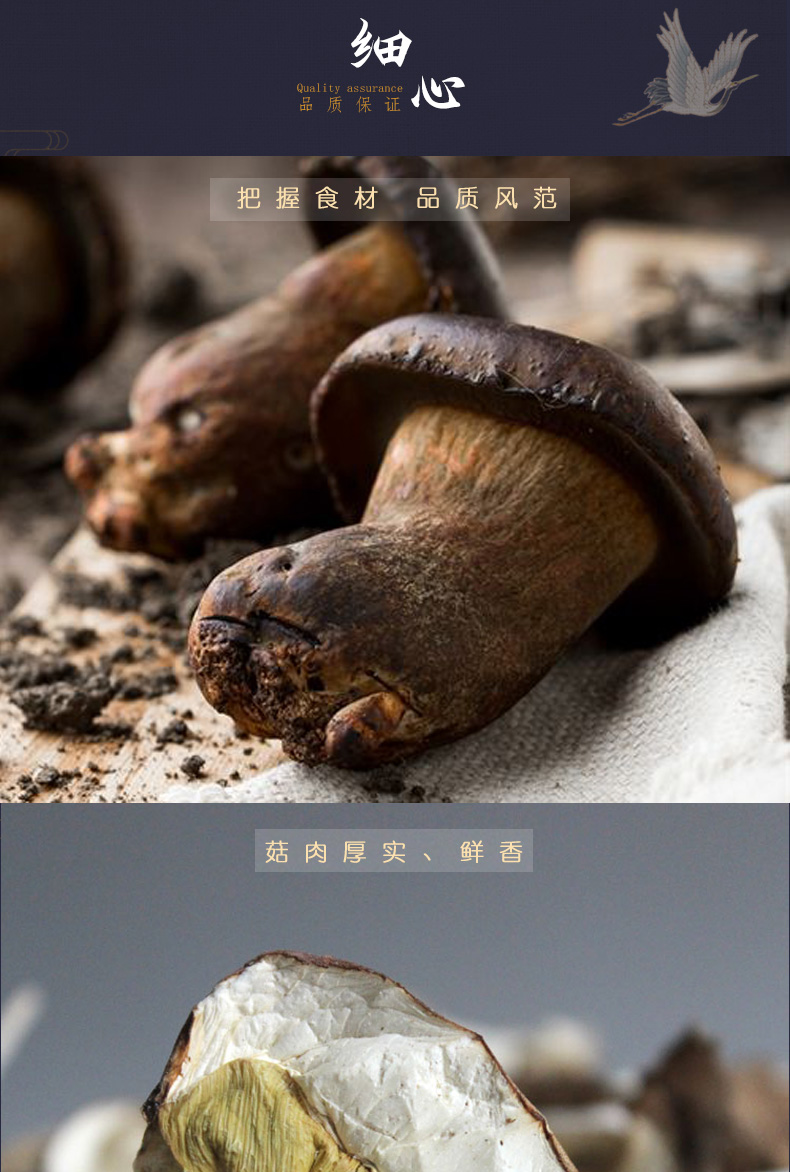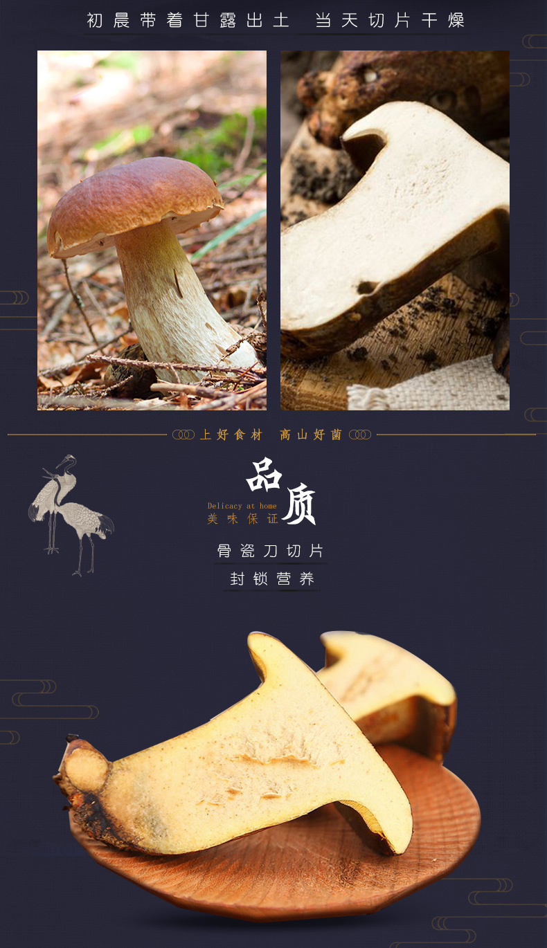 牛肝菌生长于云南森林间,降雨量适宜,土壤含大量矿物质,菌肉肥厚,爽滑清脆,有助于增强机体免疫力、补血益气