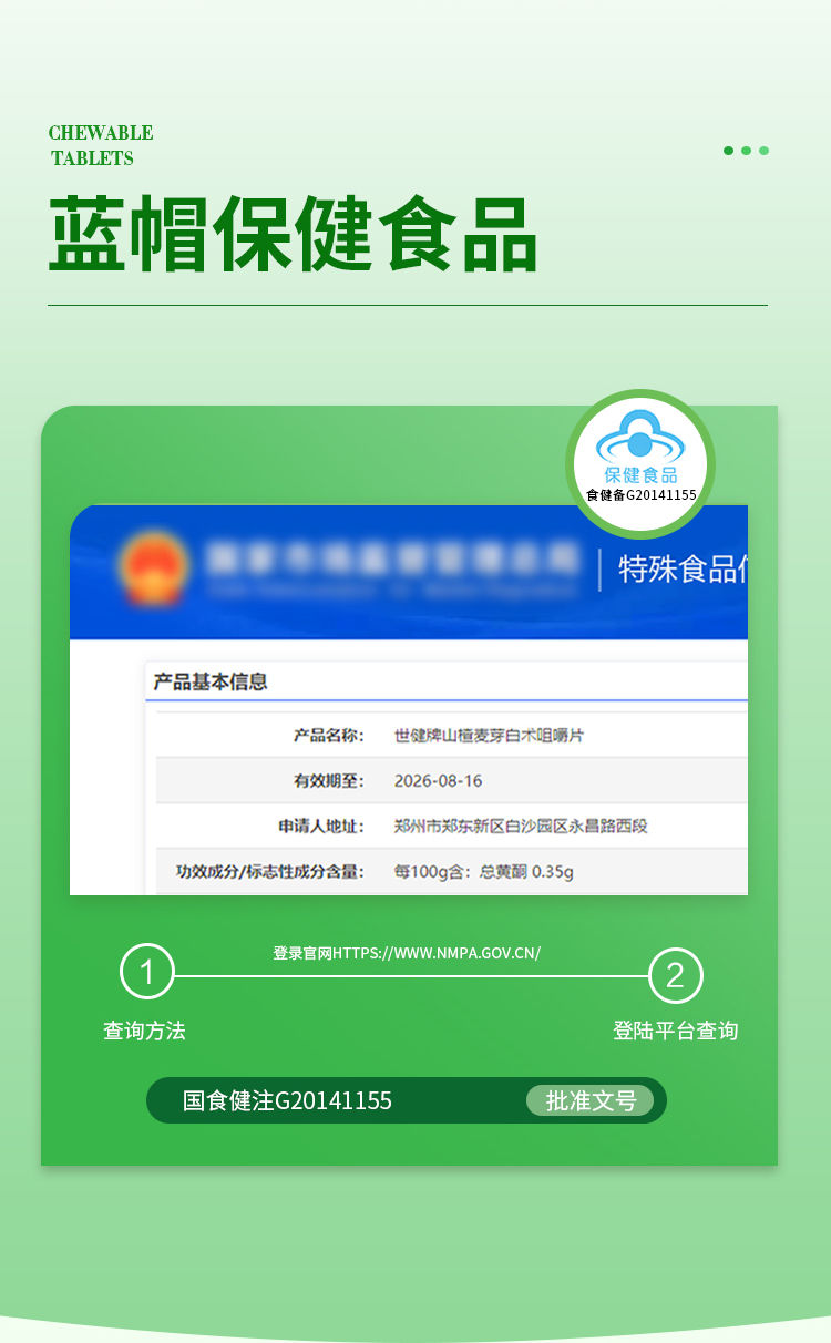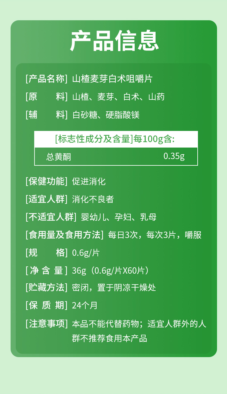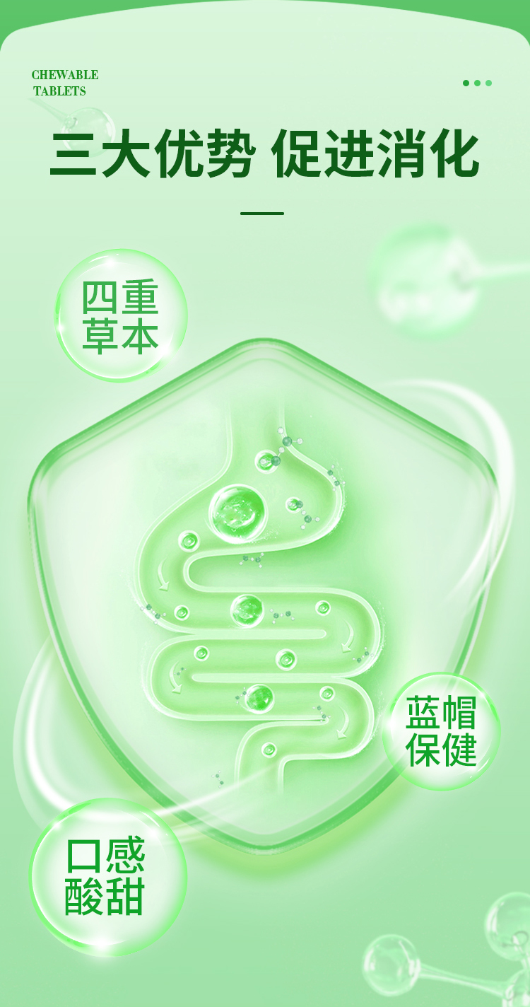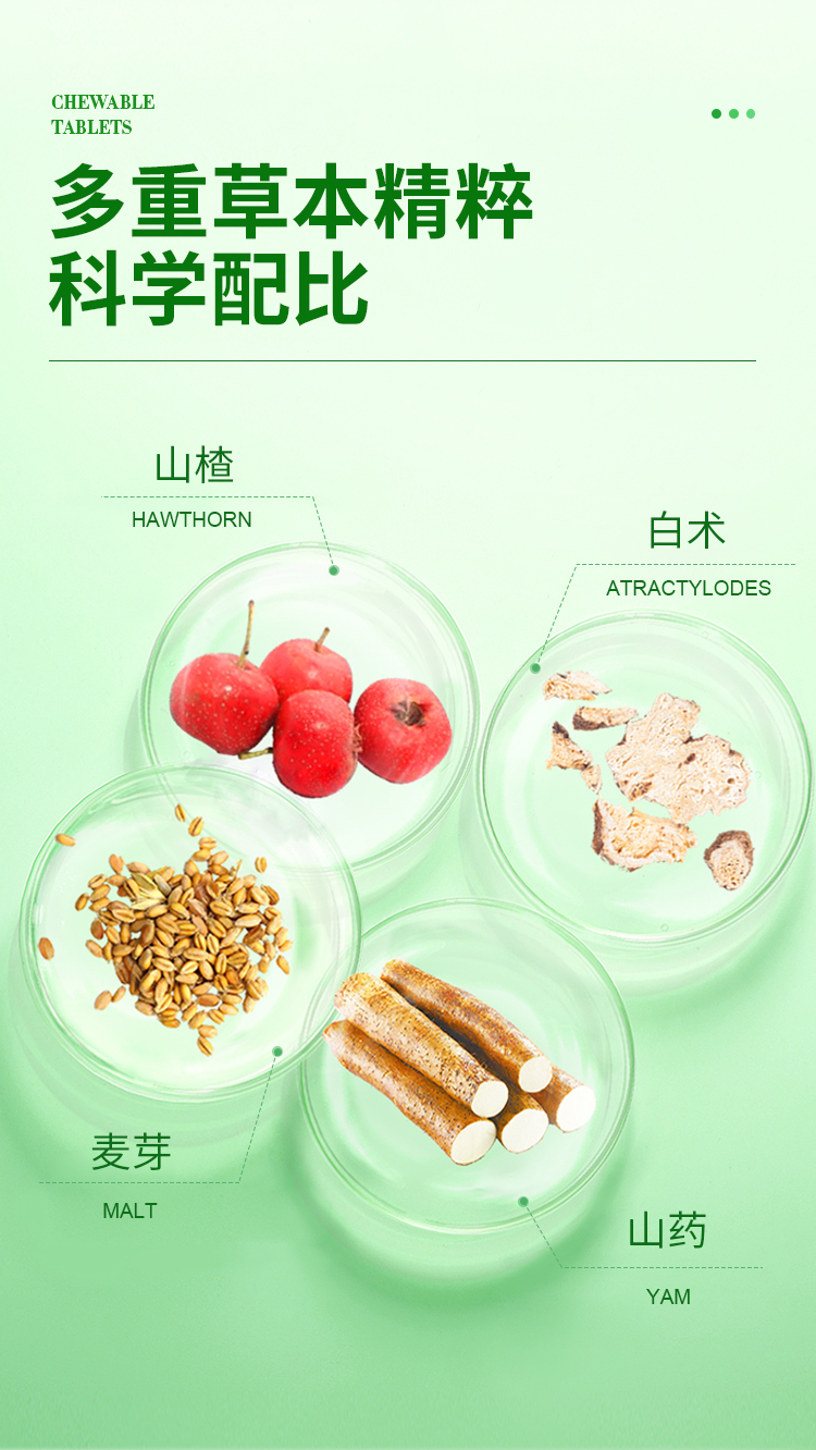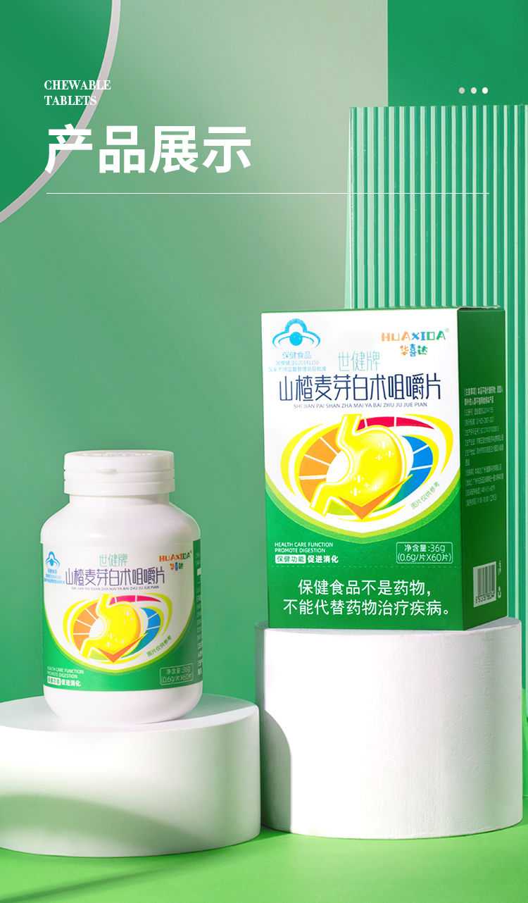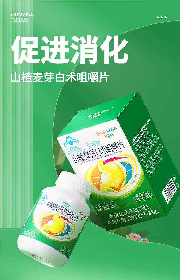 华喜达世健牌山楂麦芽白术咀嚼片舒缓肚子胀不消化过度饮食欲不振