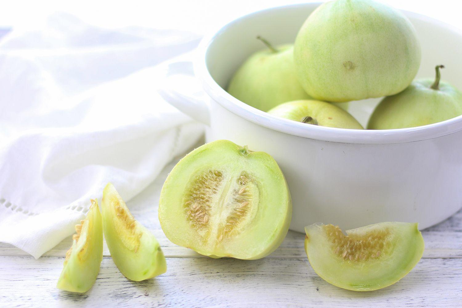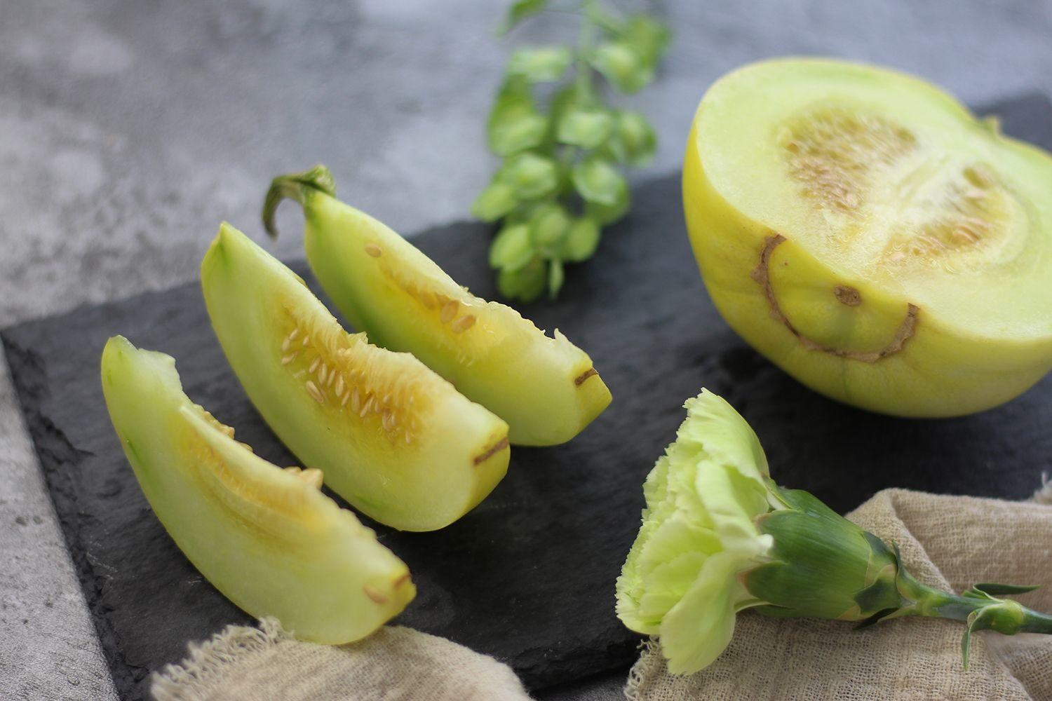 切开后饱满的甜瓜籽与瓜肉清晰可辨